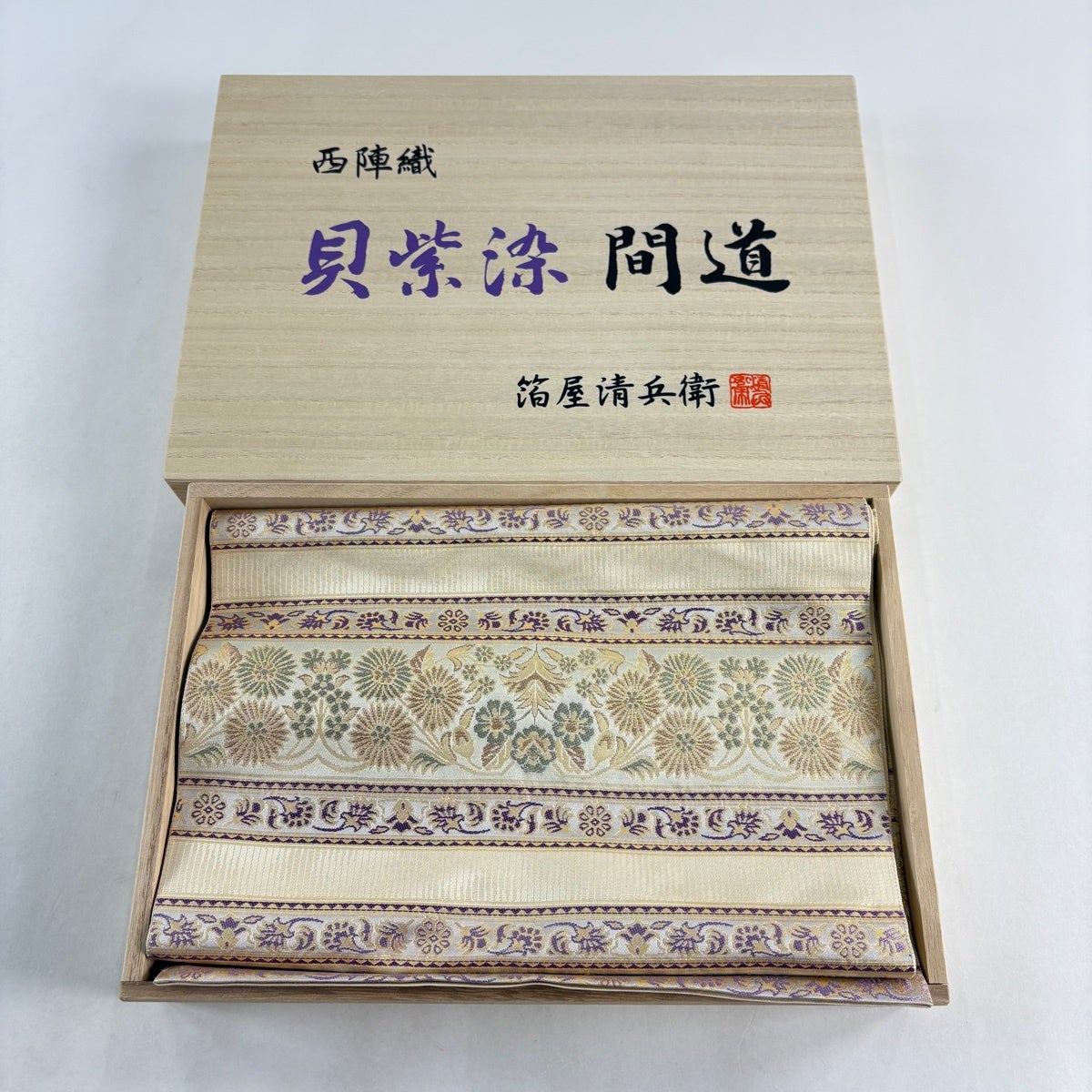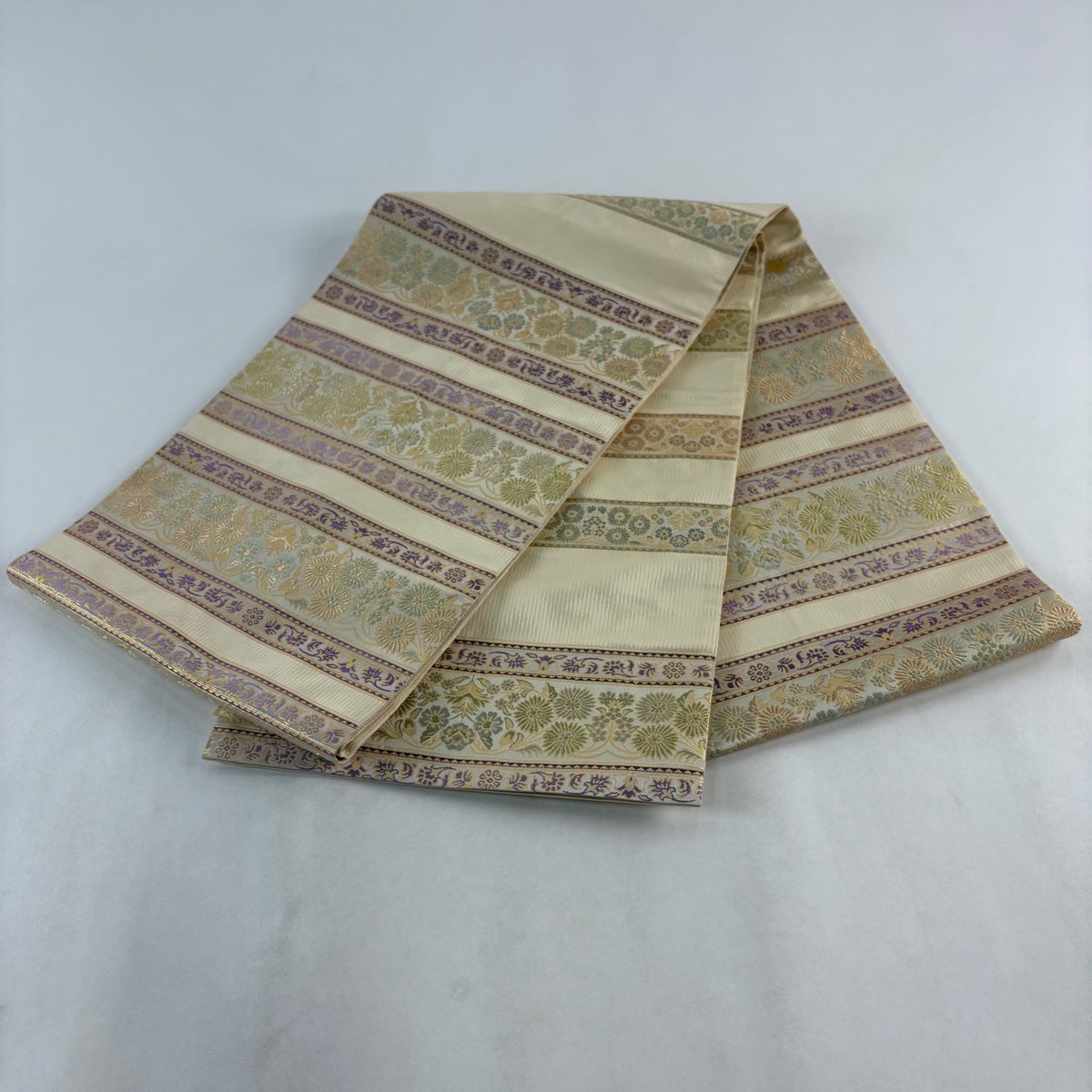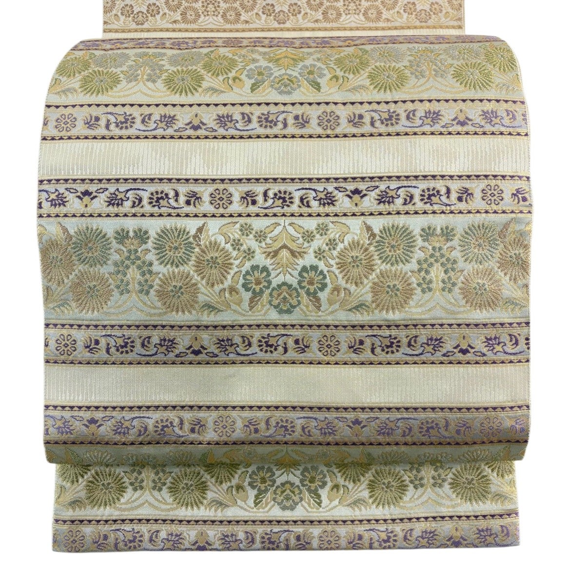 【美品】 袋名古屋帯 秀品 雪輪 縞 箔 クリーム 正絹