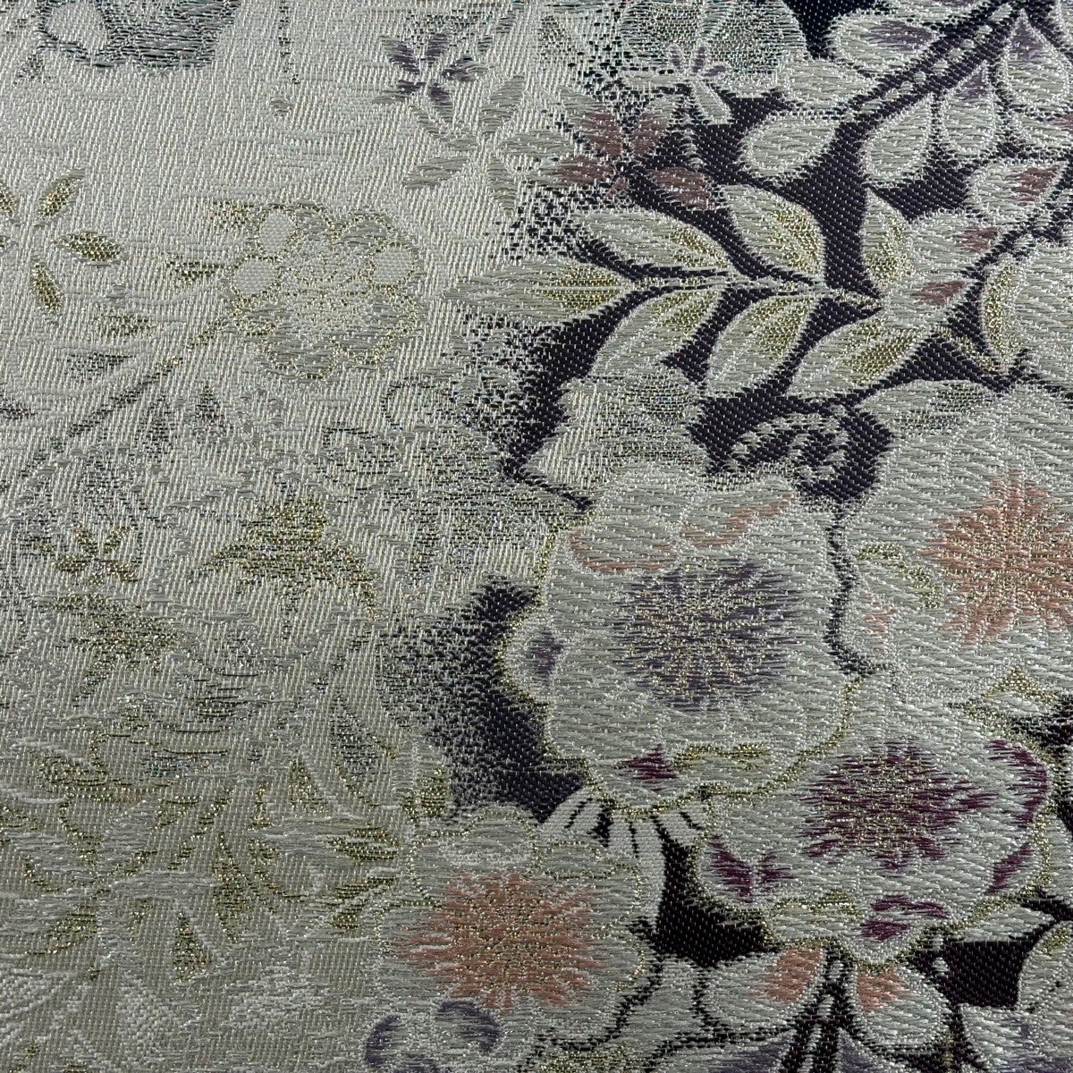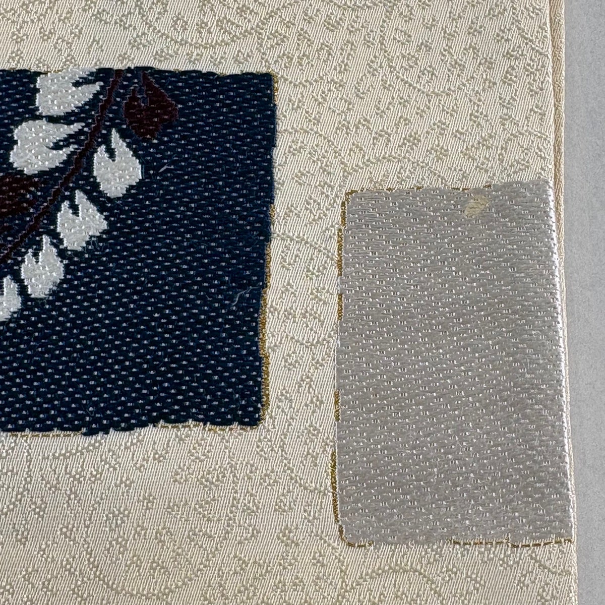【美品】 袋帯 秀品 向かい鳥 草花 螺鈿箔 金彩 ベージュ お太鼓柄 正絹