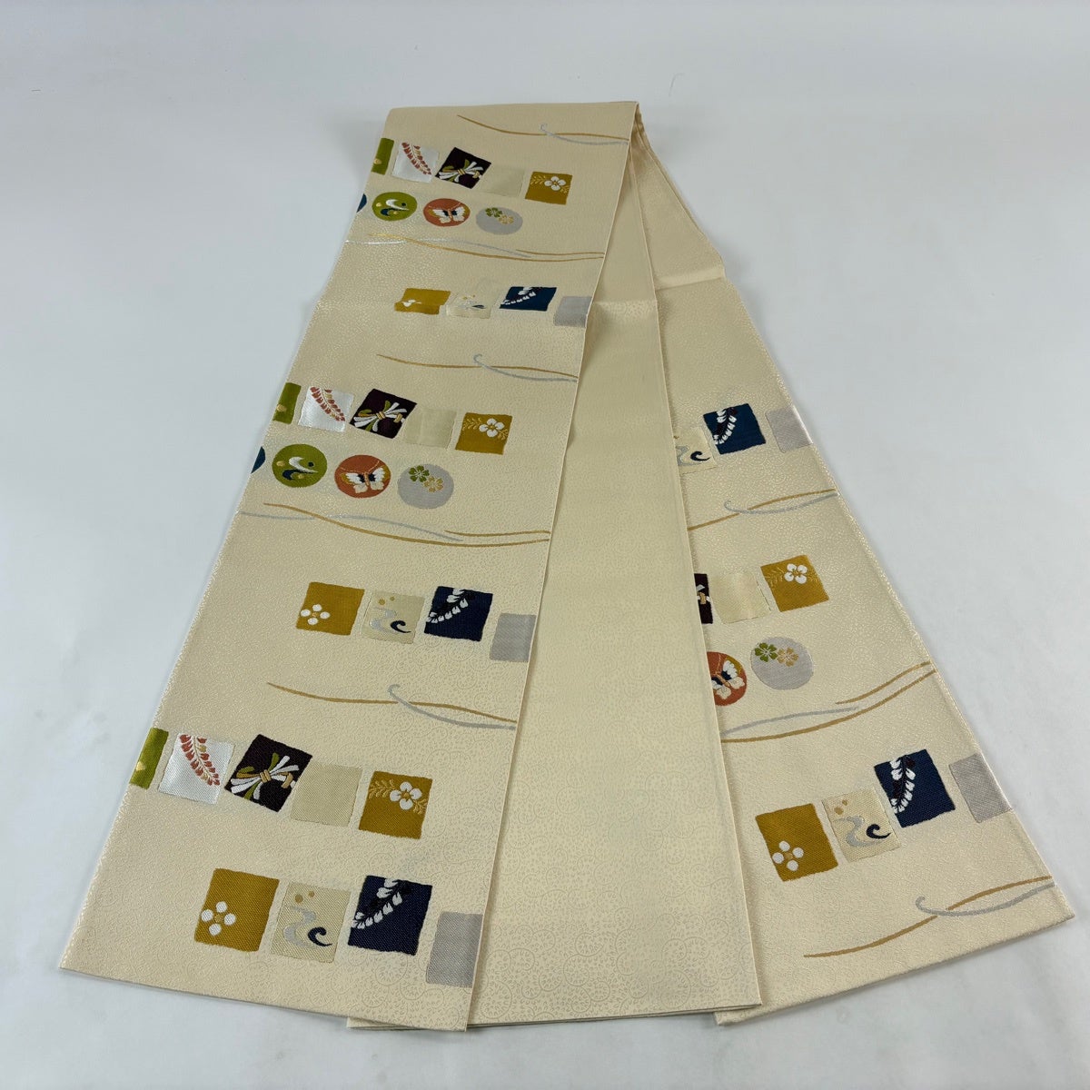 【美品】 名古屋帯 秀品 うさぎ ミツ扇 金銀糸 クリーム 正絹