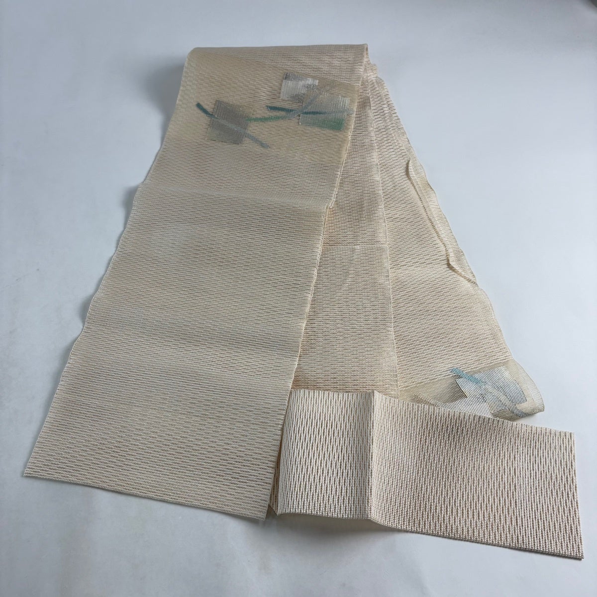 【美品】 名古屋帯 秀品 夏帯 トンボ 霞 金糸 ベージュ 正絹