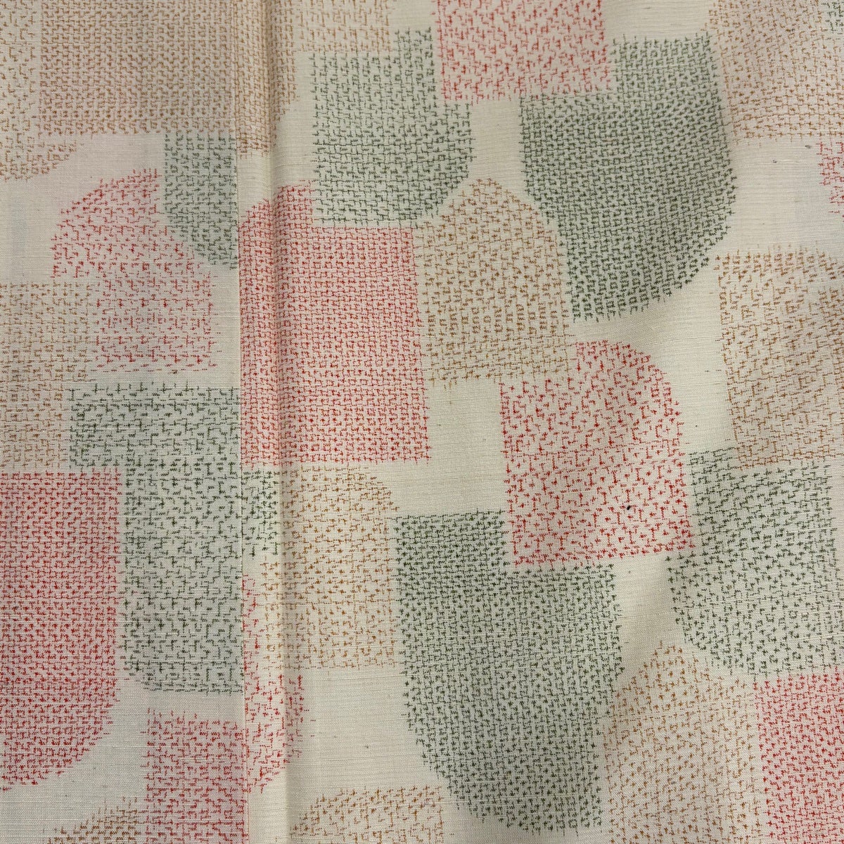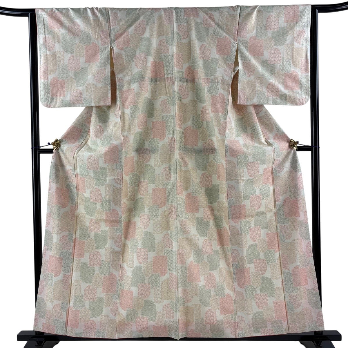 紬 身丈161cm 裄丈64.5cm M 袷 幾何学模様 ベージュ 正絹 秀品