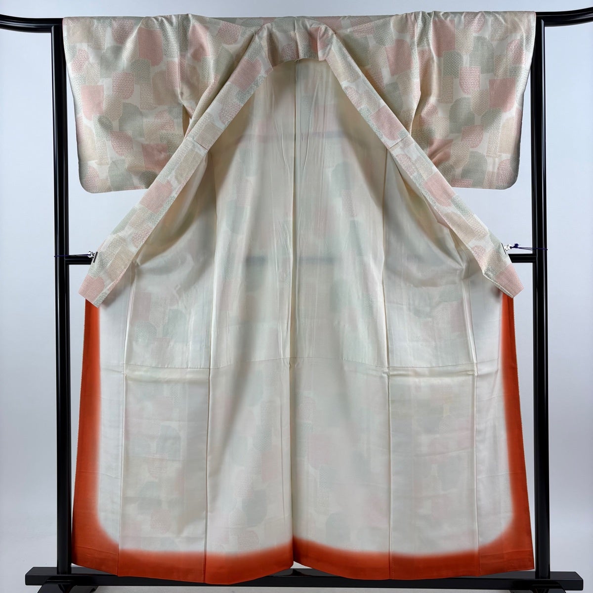 付下げ 身丈161cm 裄丈65cm M 袷 波頭 金糸 刺繍 クリーム 正絹 秀品
