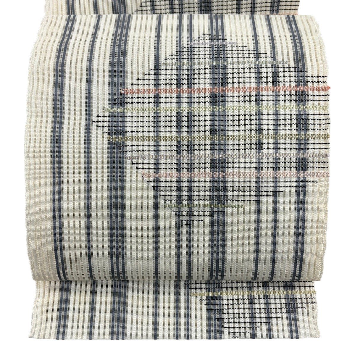 名古屋帯 秀品 夏帯 夏紬 春夏秋冬 幾何学模様 ベージュ 正絹