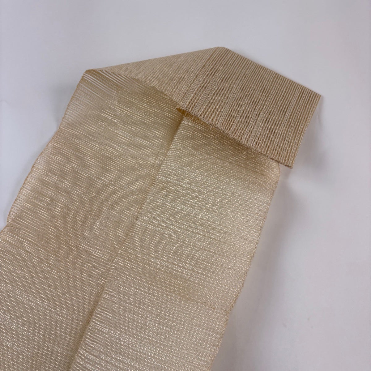【美品】半幅帯 秀品 縞 幾何学 ベージュ 正絹