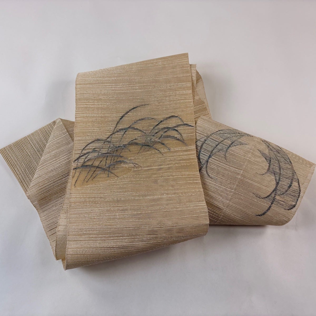 【美品】 袋帯 秀品 夏帯 流水 銀糸 クリーム 六通 正絹