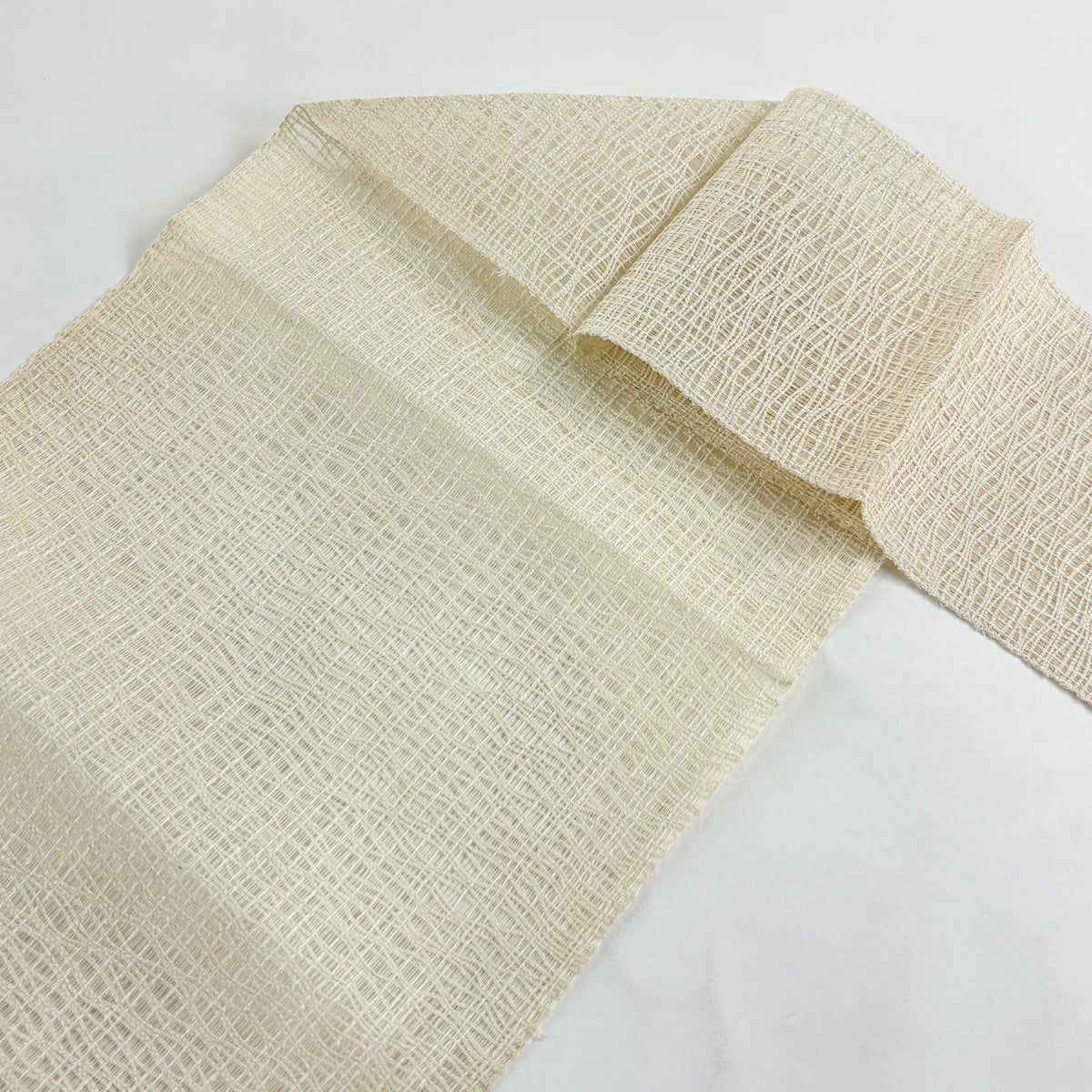 【美品】半幅帯 優品 七宝 ベージュ 化繊