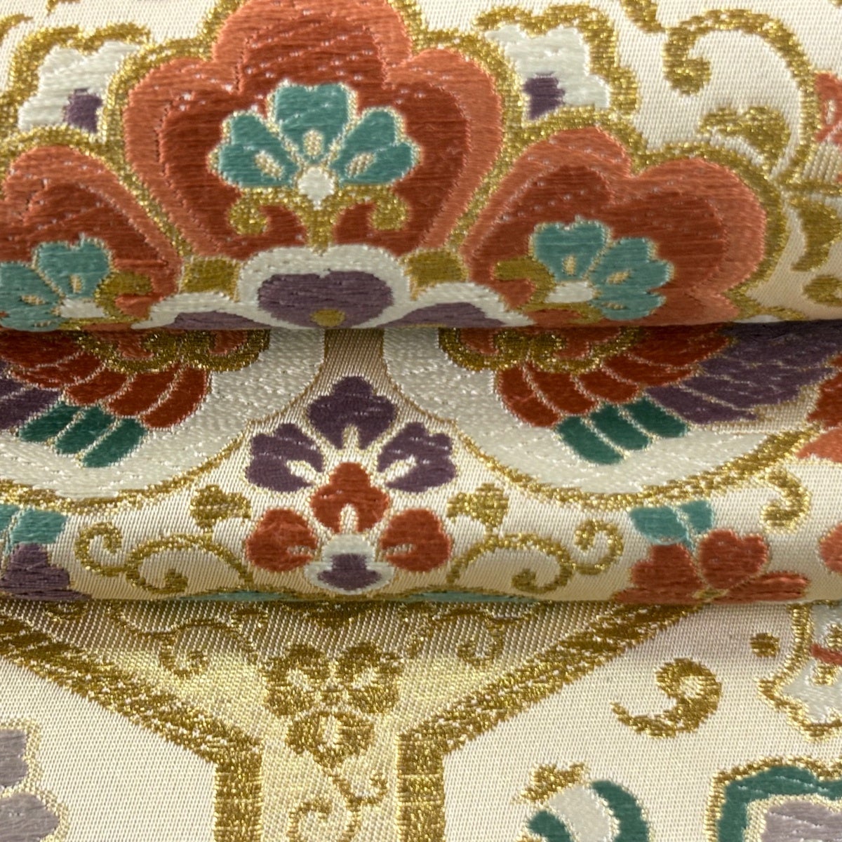 袋帯 秀品 菊 波頭 金糸 唐織 ベージュ 六通 正絹