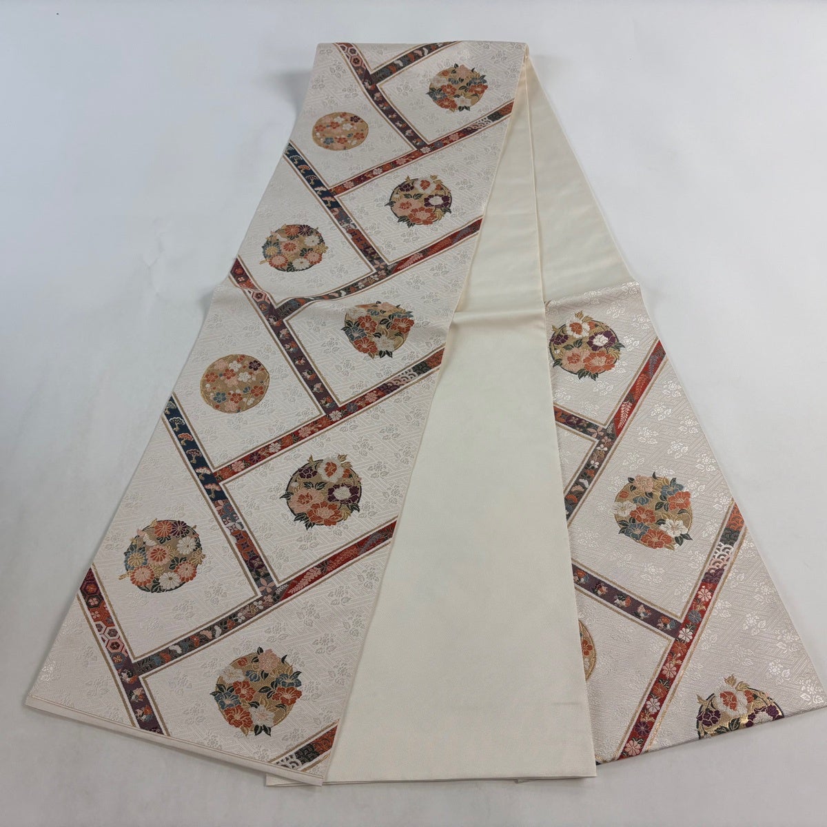 袋帯 秀品 織悦 落款あり 本袋 草花 箔 クリーム 六通 正絹