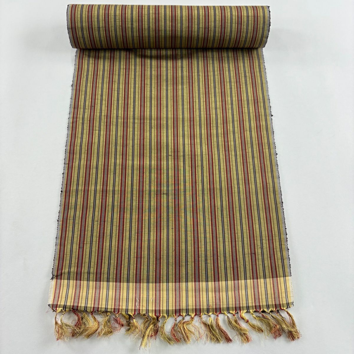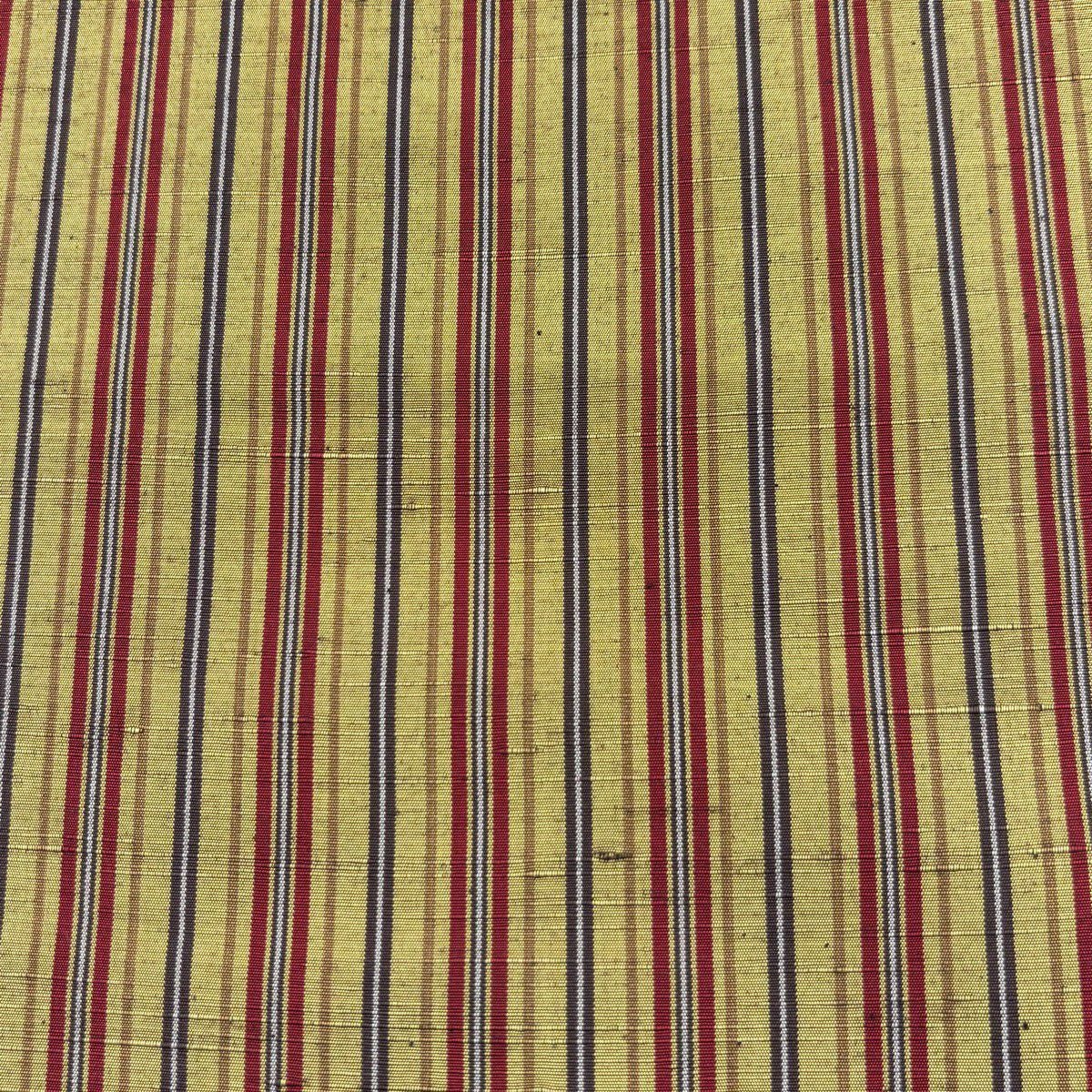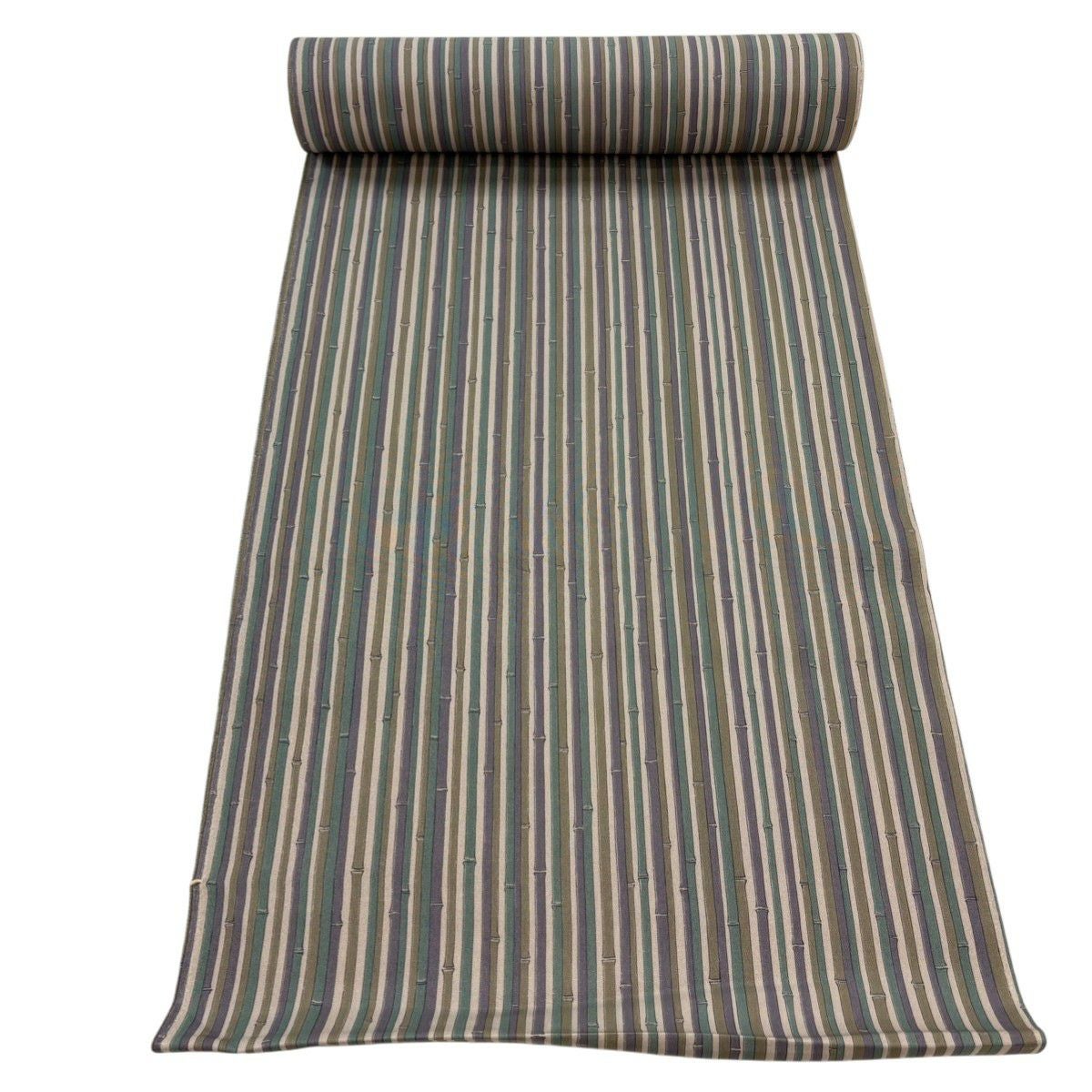 反物 秀品 紬 縞 茶緑色 正絹