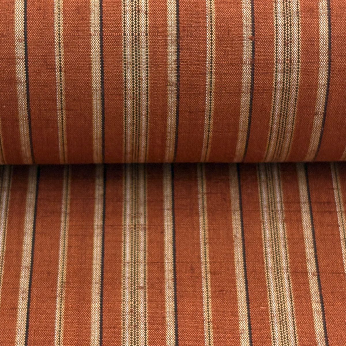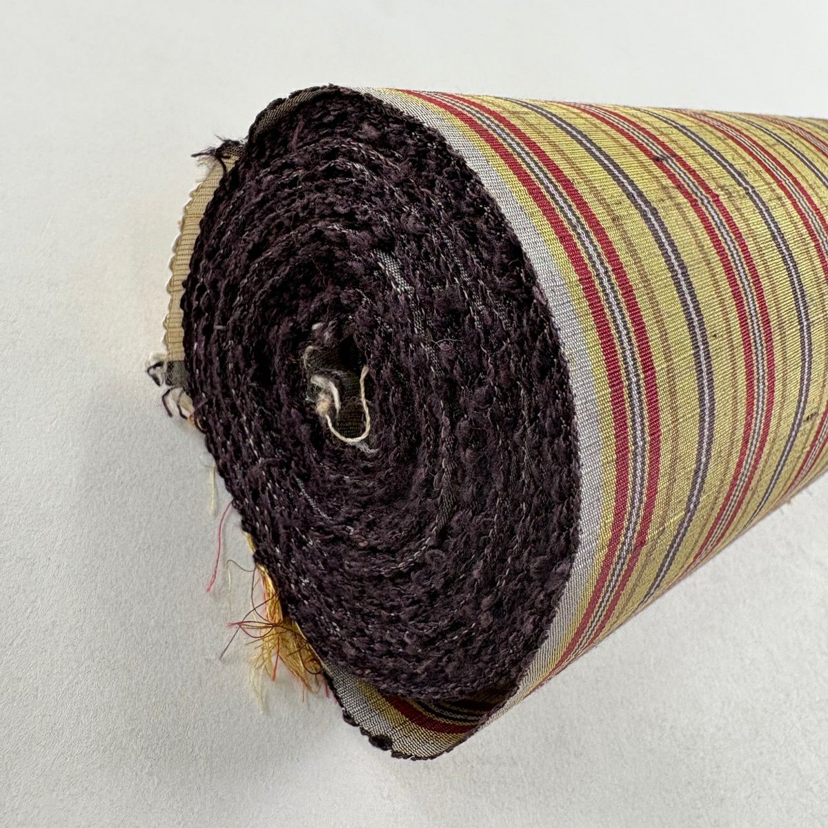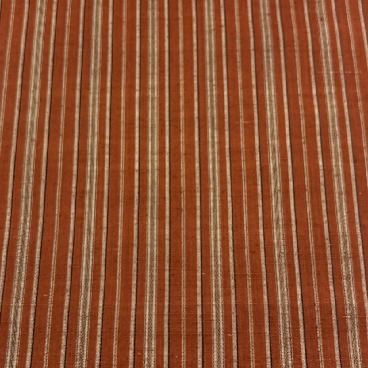 反物 秀品 紬 縞 茶緑色 正絹
