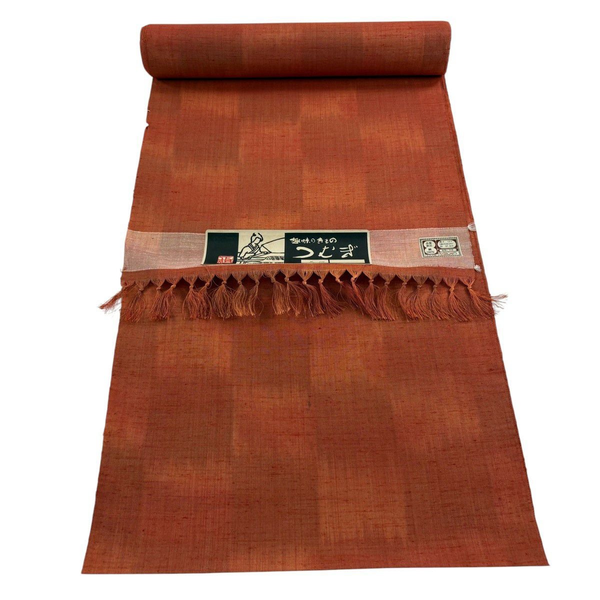 反物 秀品 紬 オレンジ 正絹