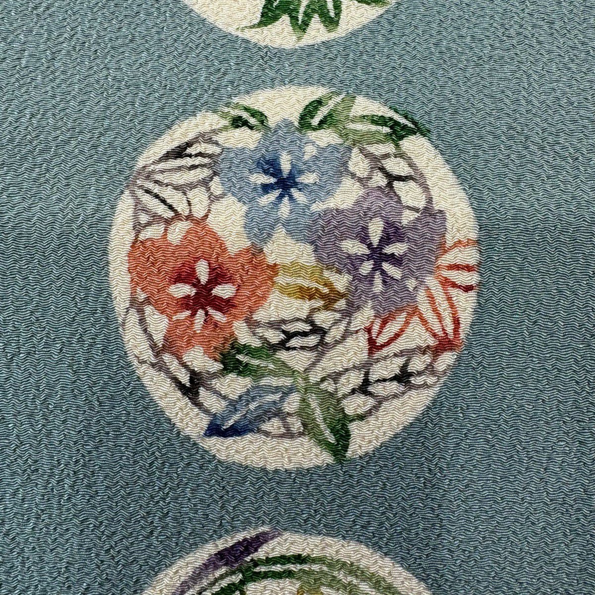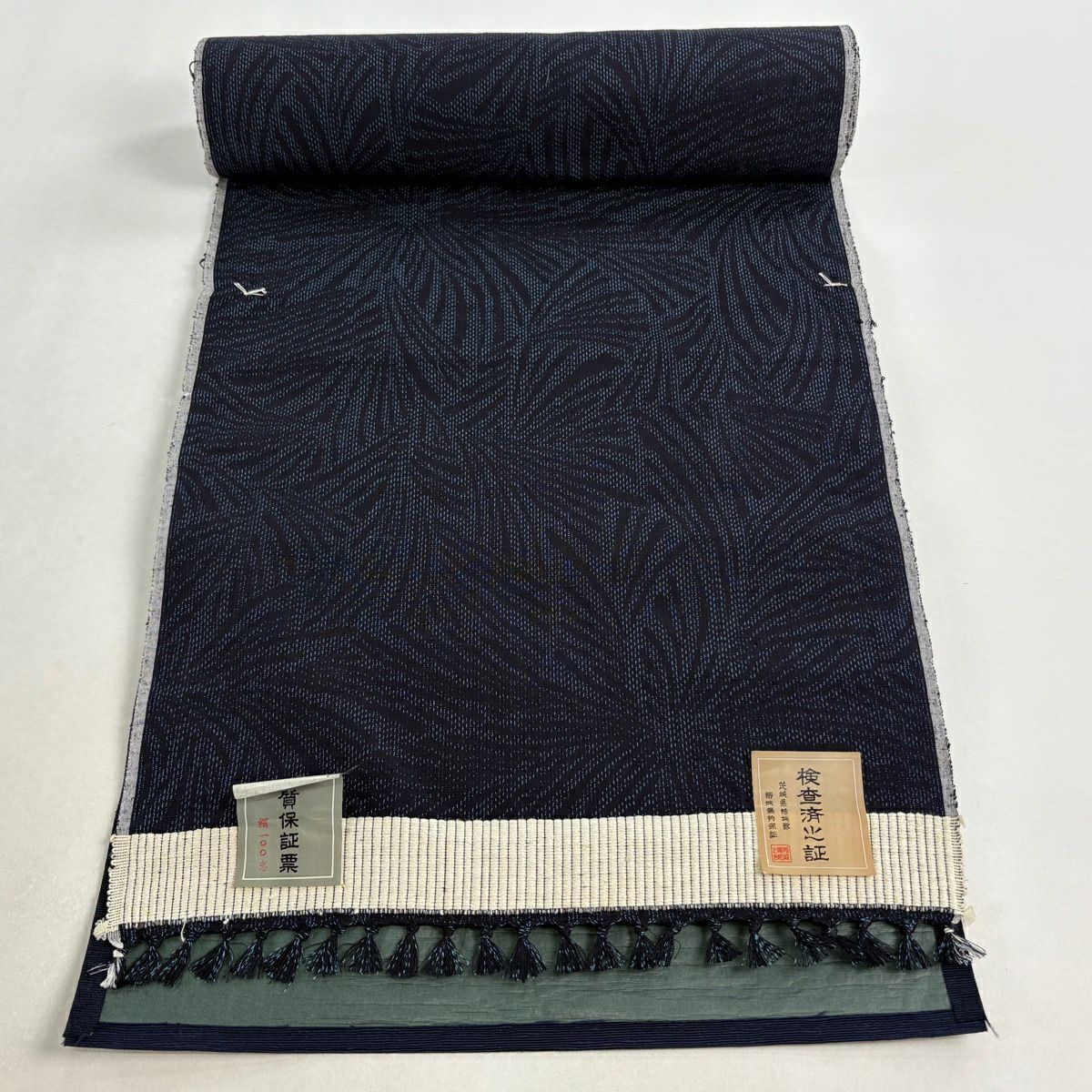 反物 秀品 紬 草花 紺色 正絹