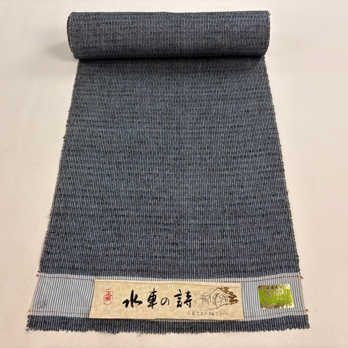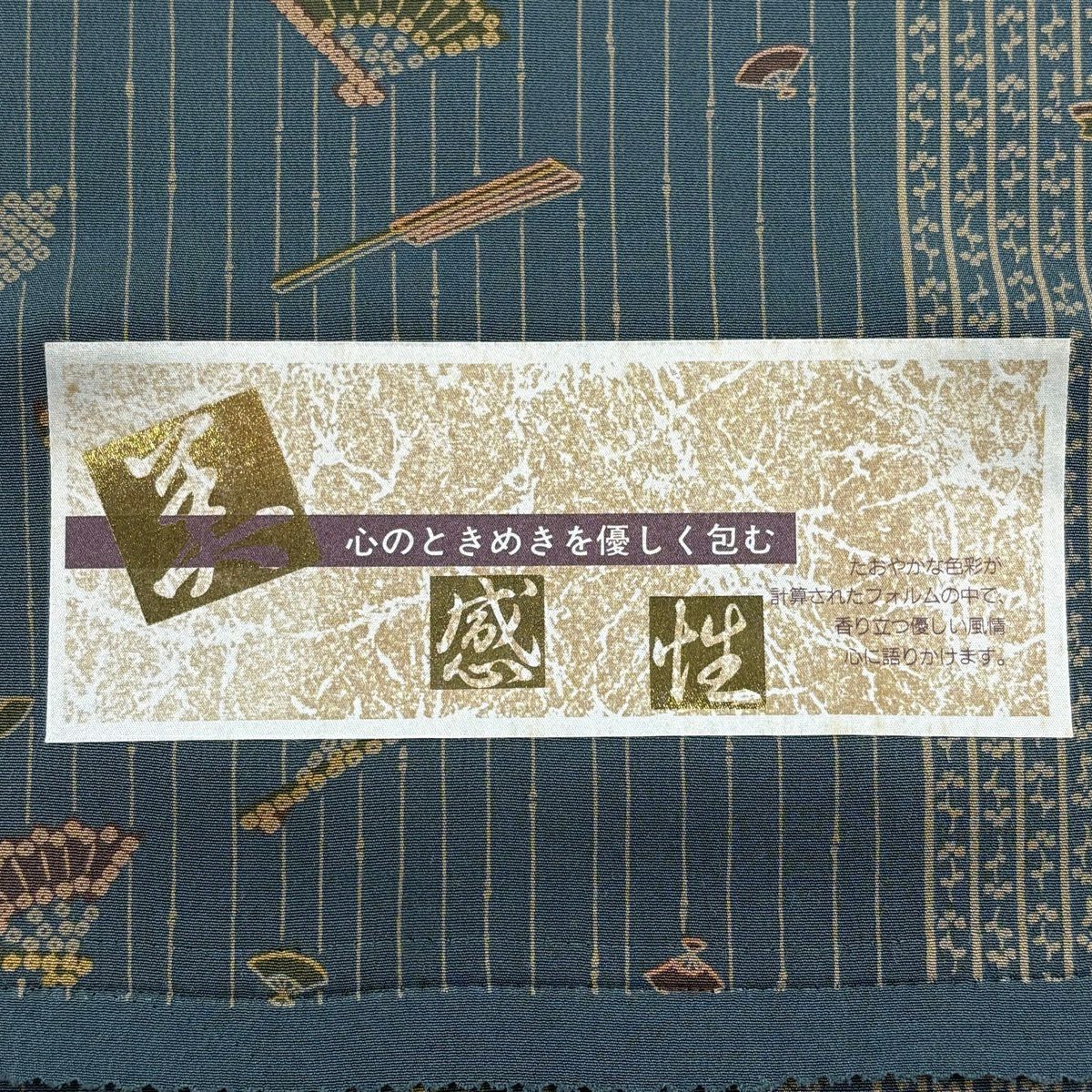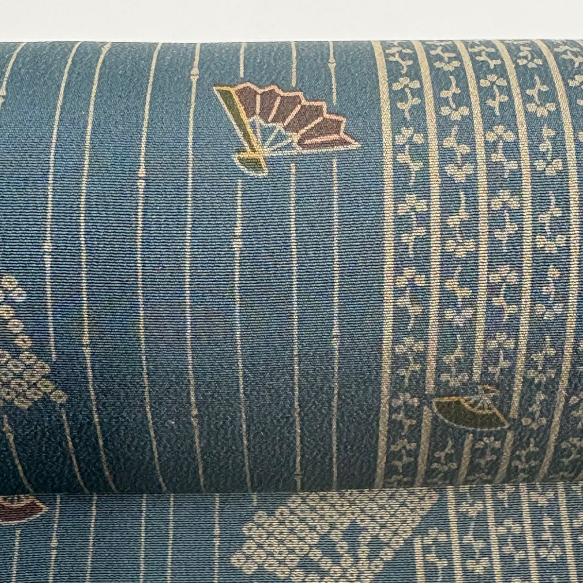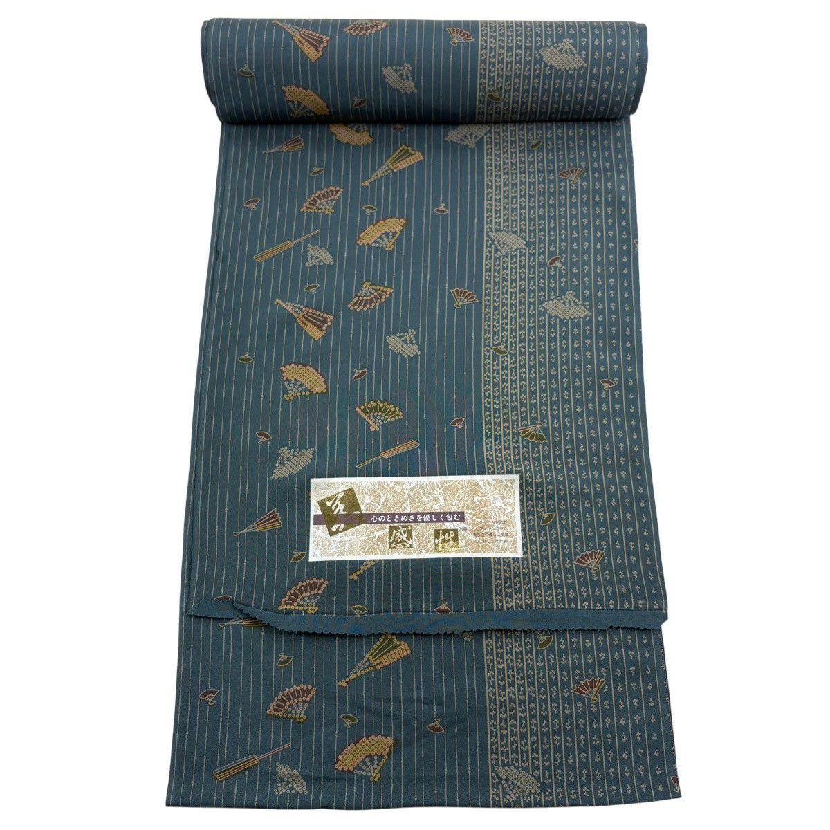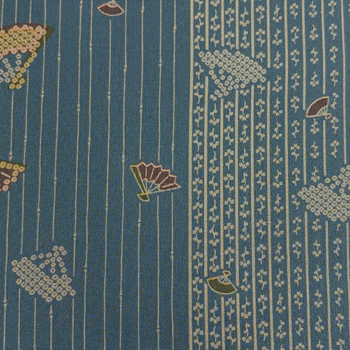反物 秀品 小紋 扇 縞 緑 正絹