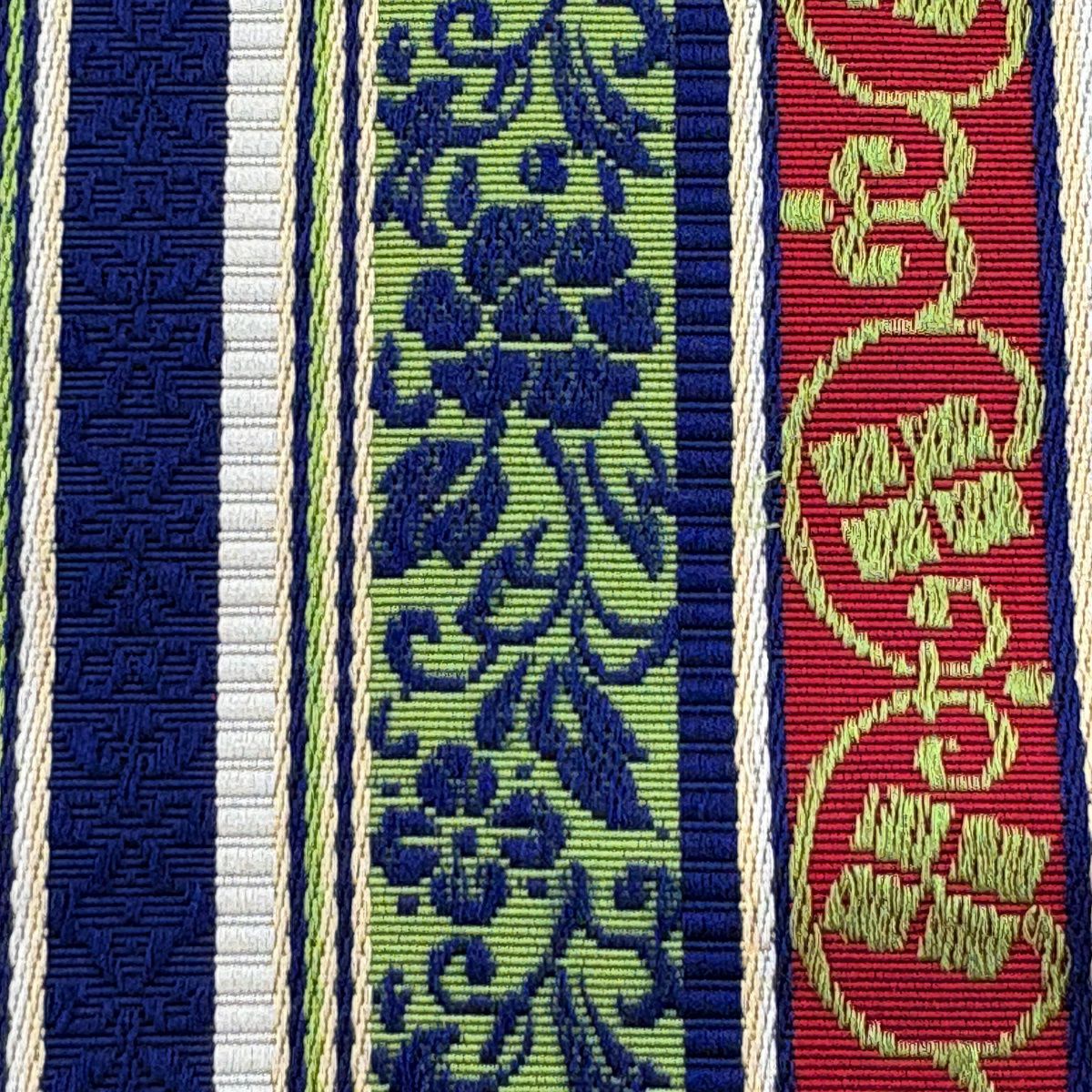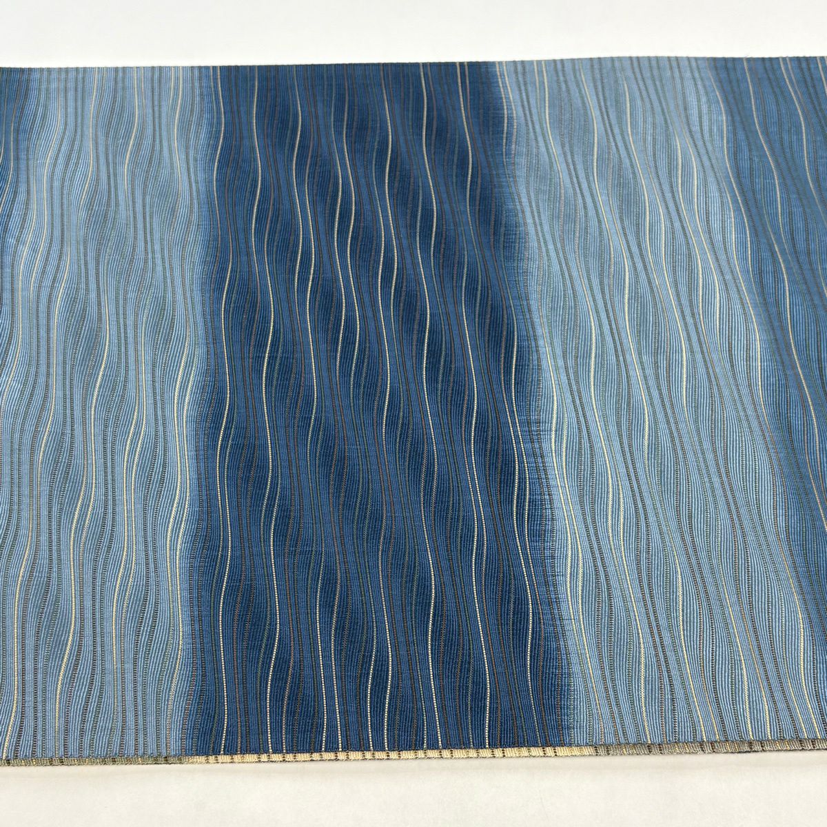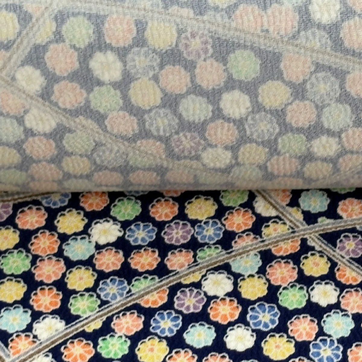 半幅帯 秀品 縞 草花 紺色 正絹