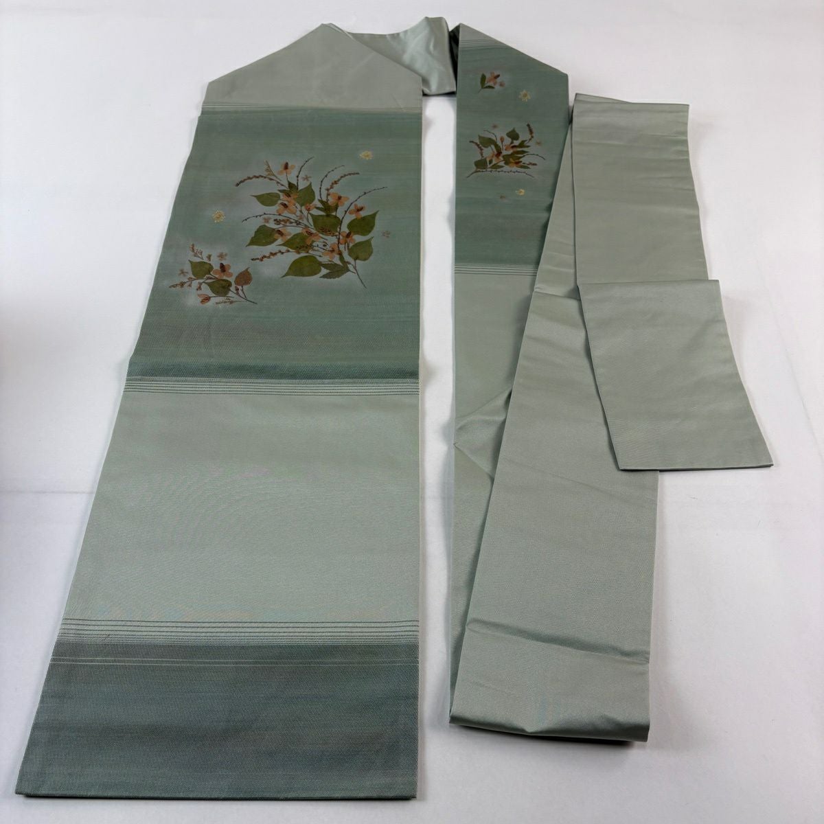 名古屋帯 秀品 花香織 薄緑 正絹