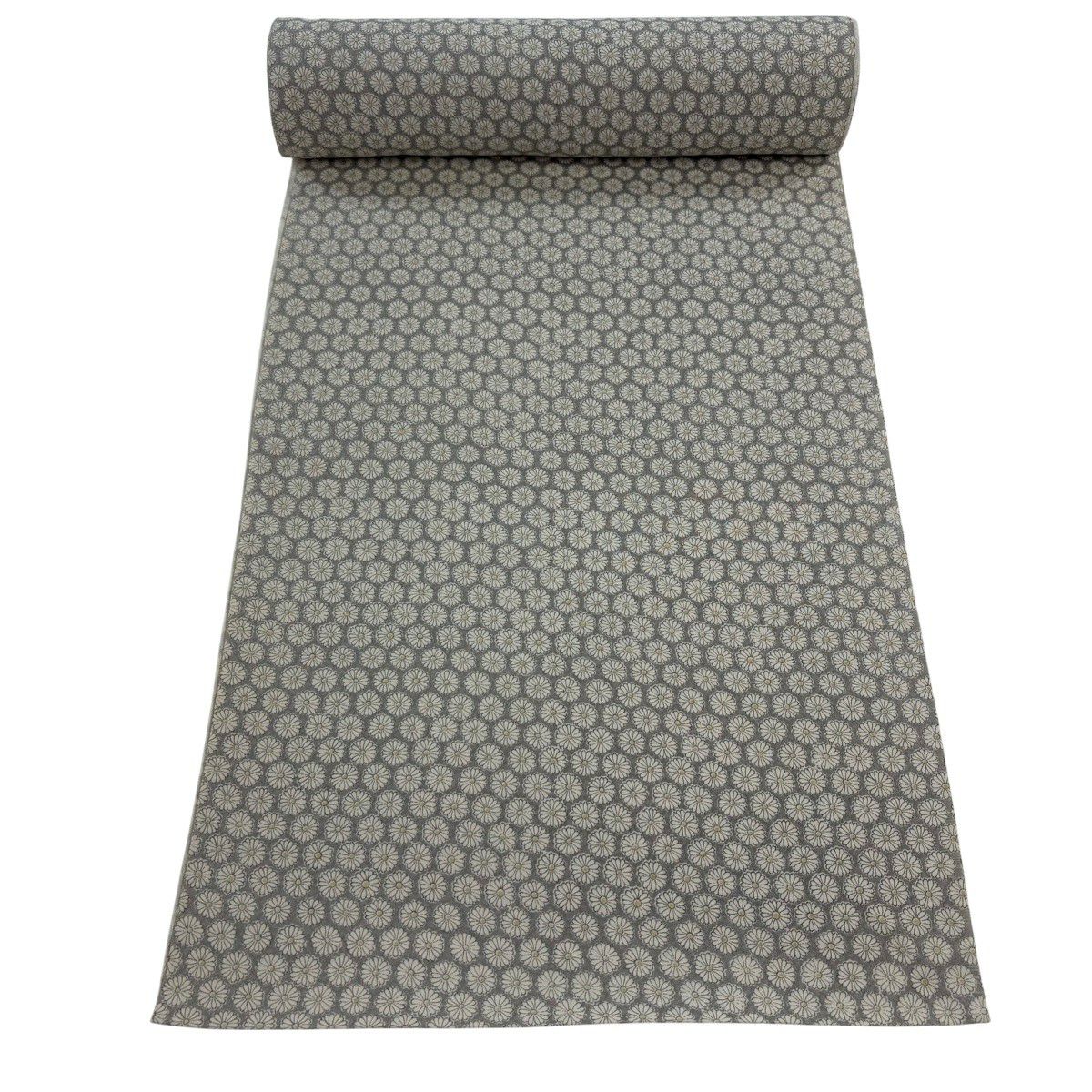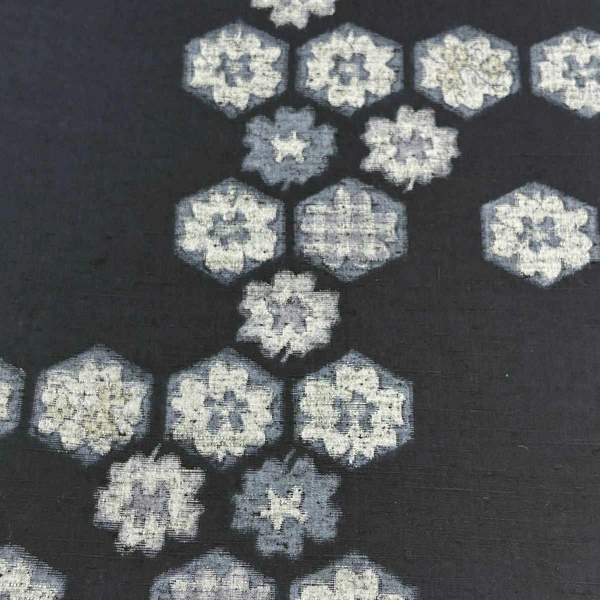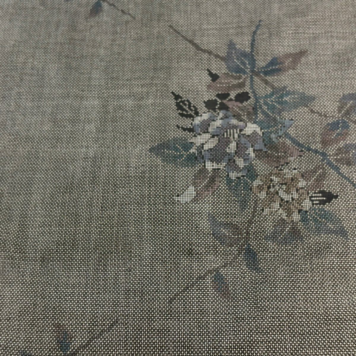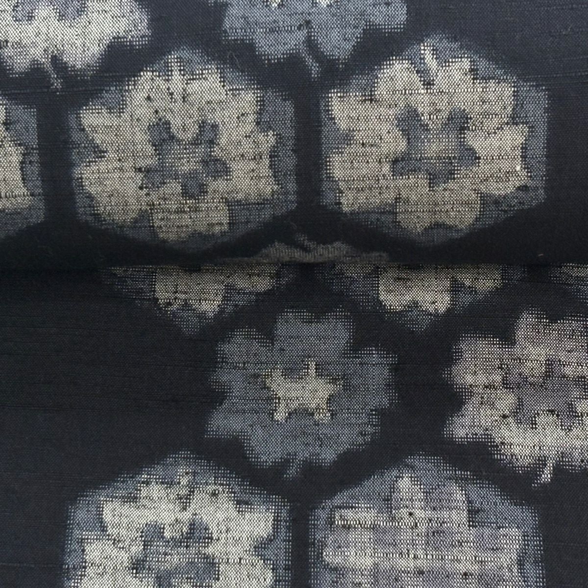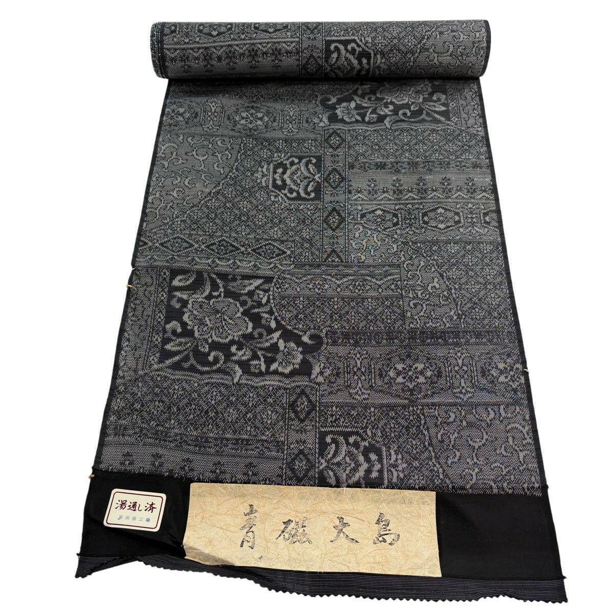 反物 秀品 紬 花唐草 黒灰 正絹
