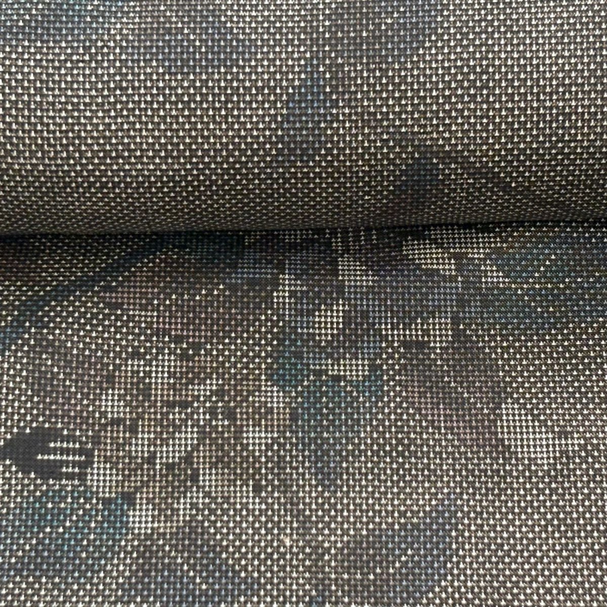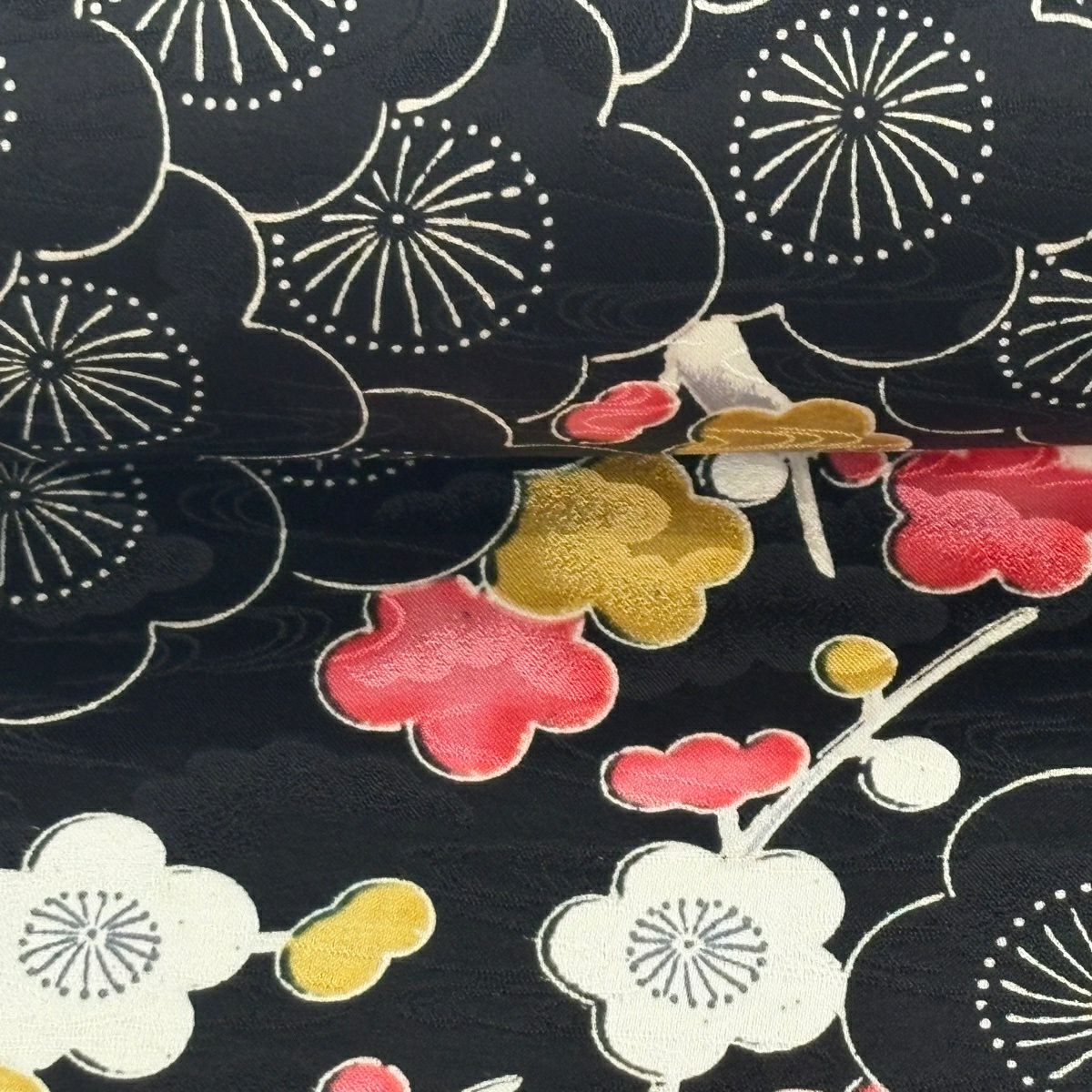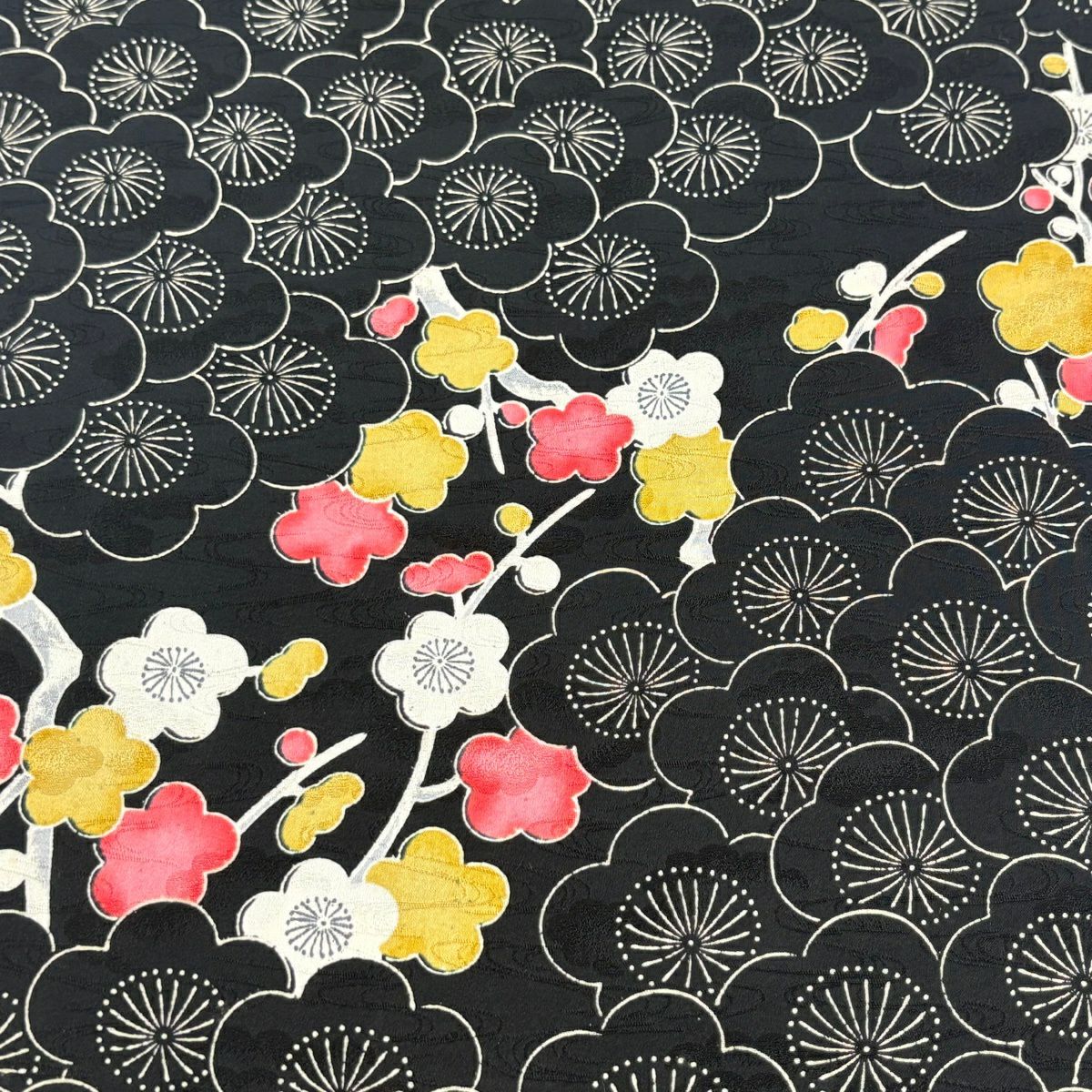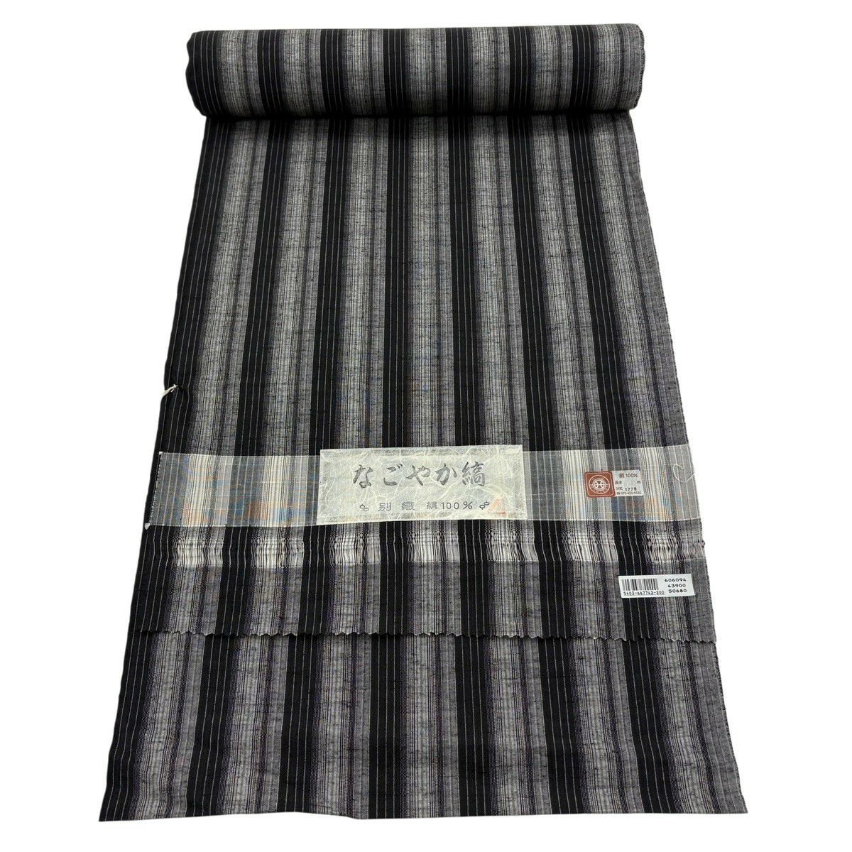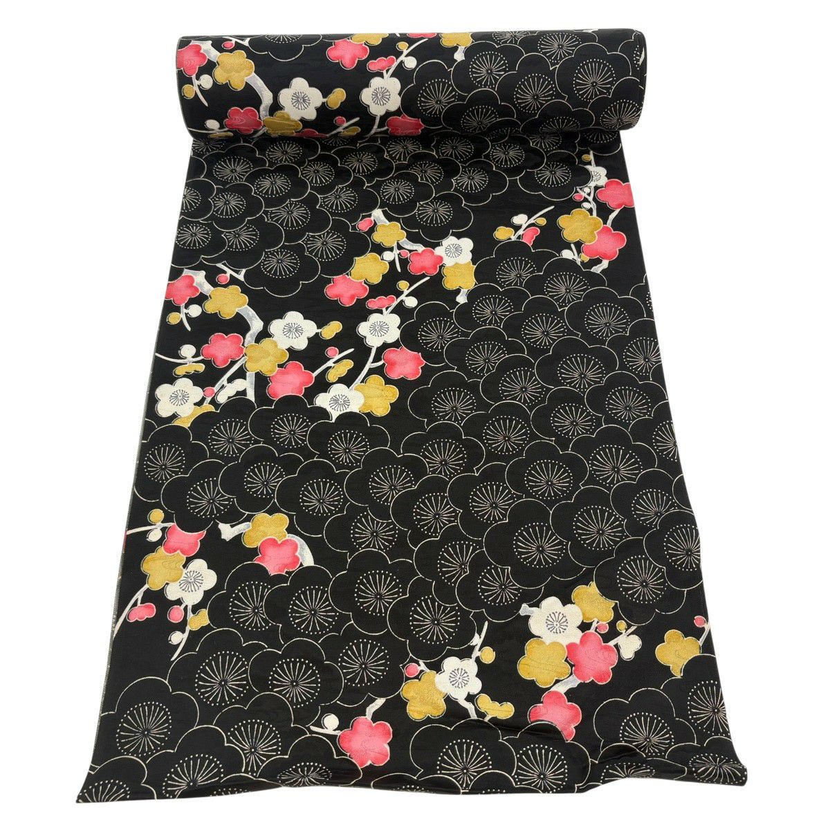 反物 秀品 紬 花唐草 黒灰 正絹