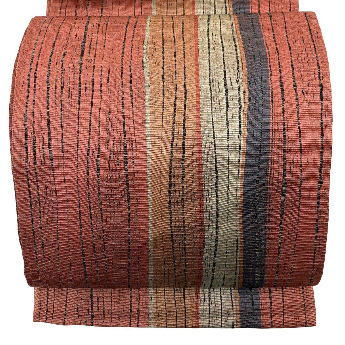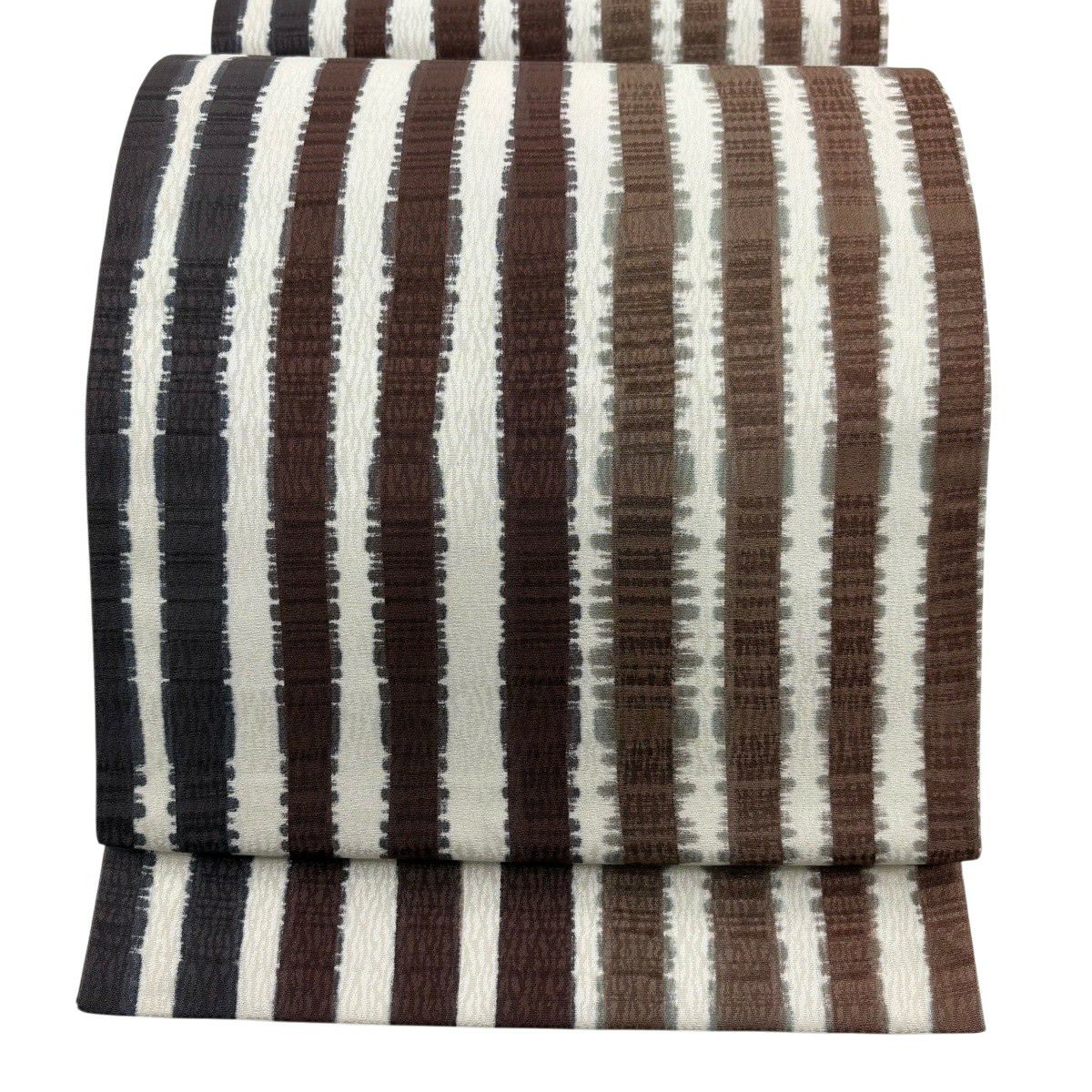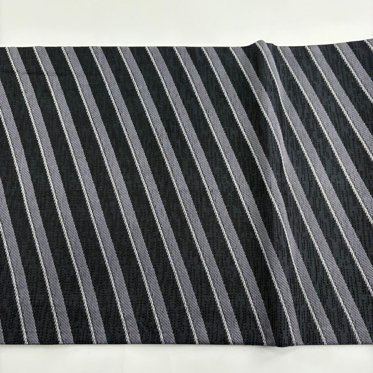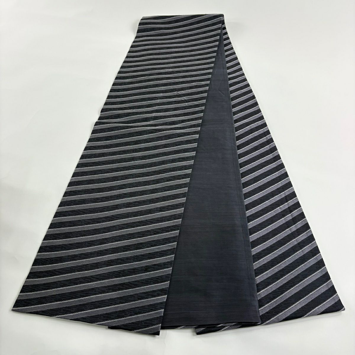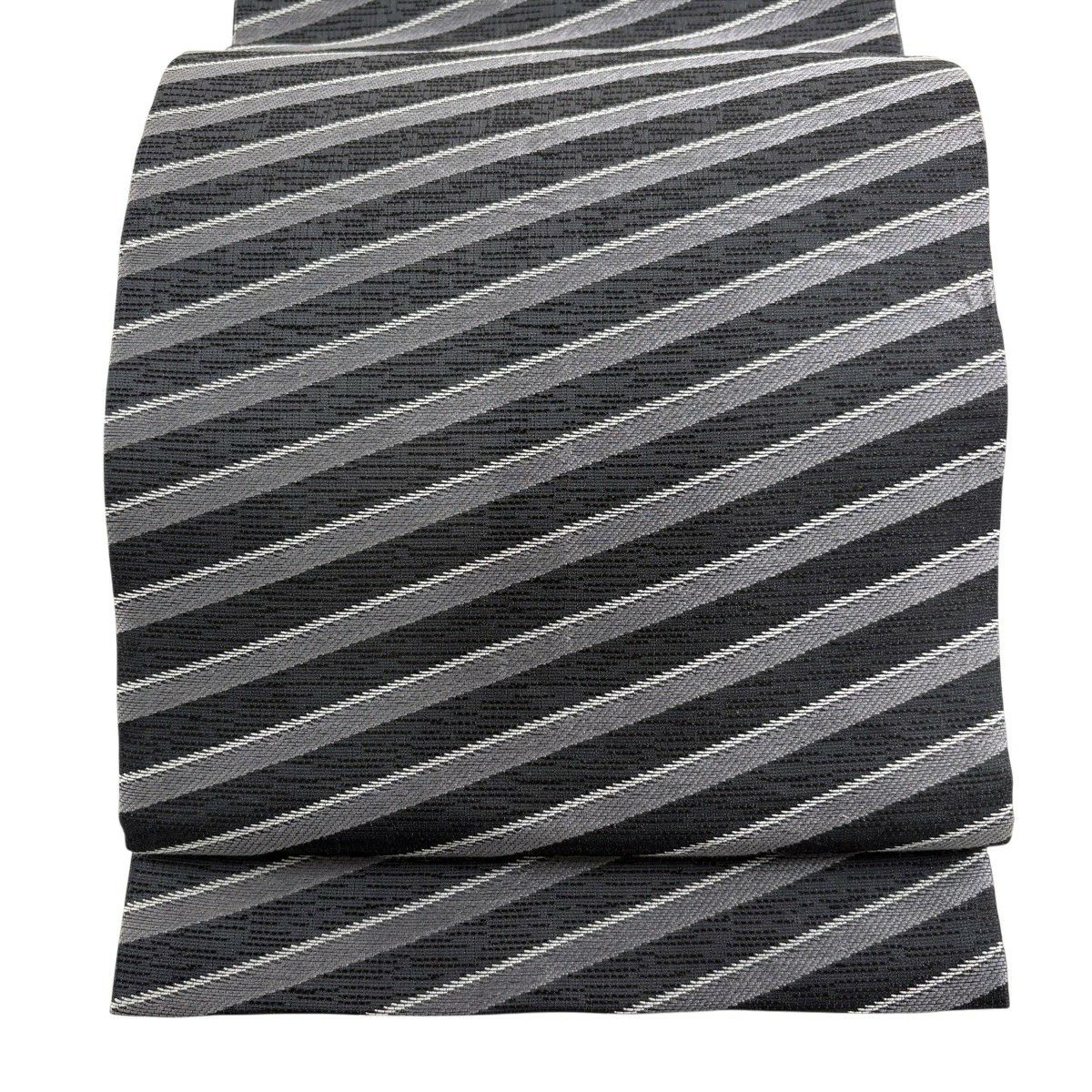 袋帯 秀品 斜縞 墨色 全通 正絹