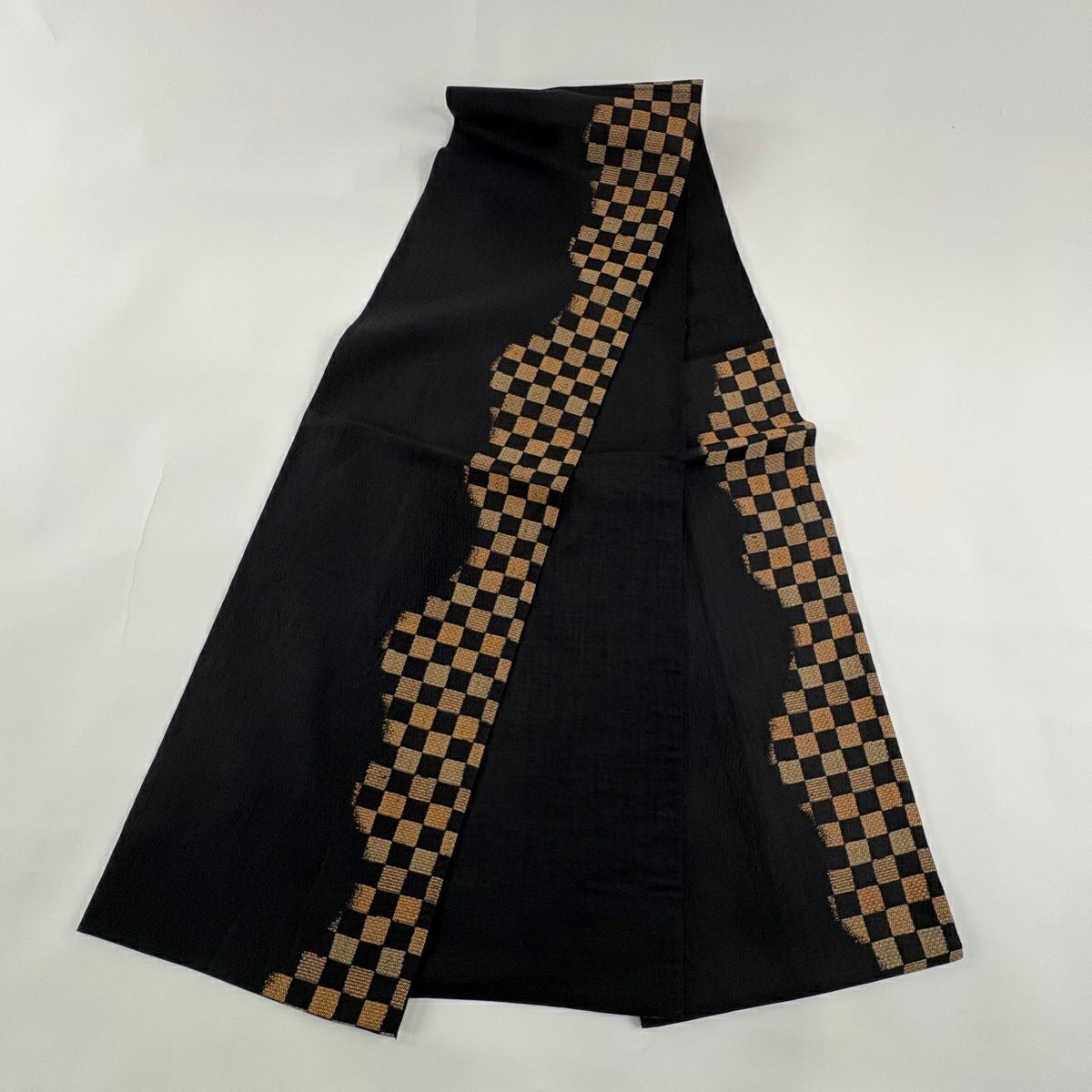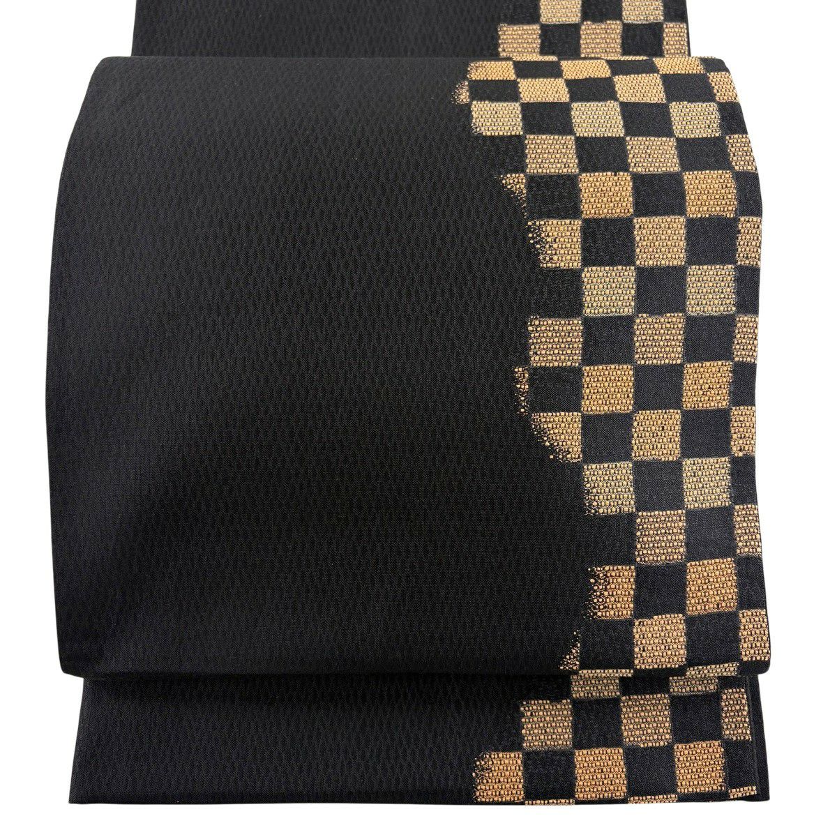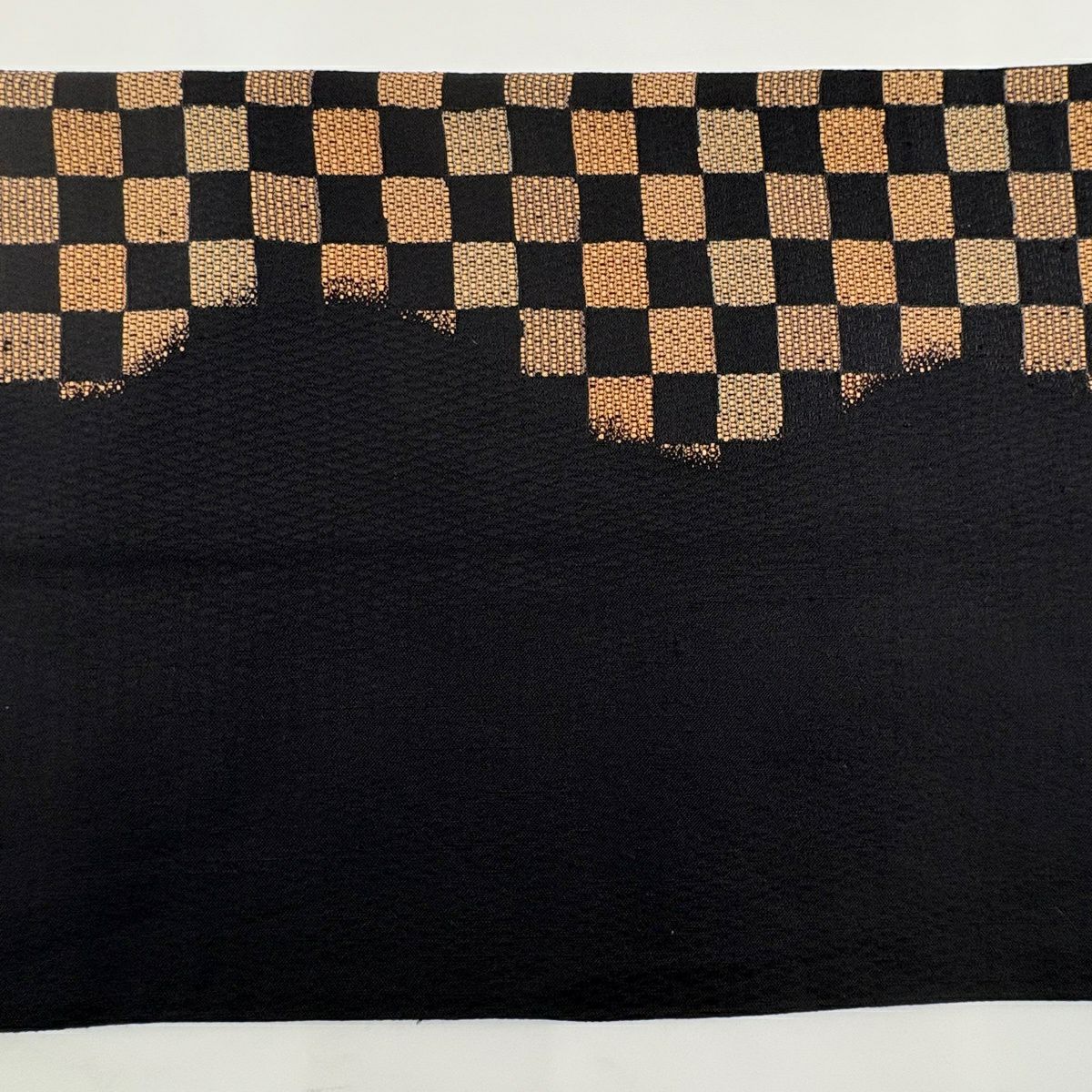 袋帯 秀品 市松 黒 六通 正絹
