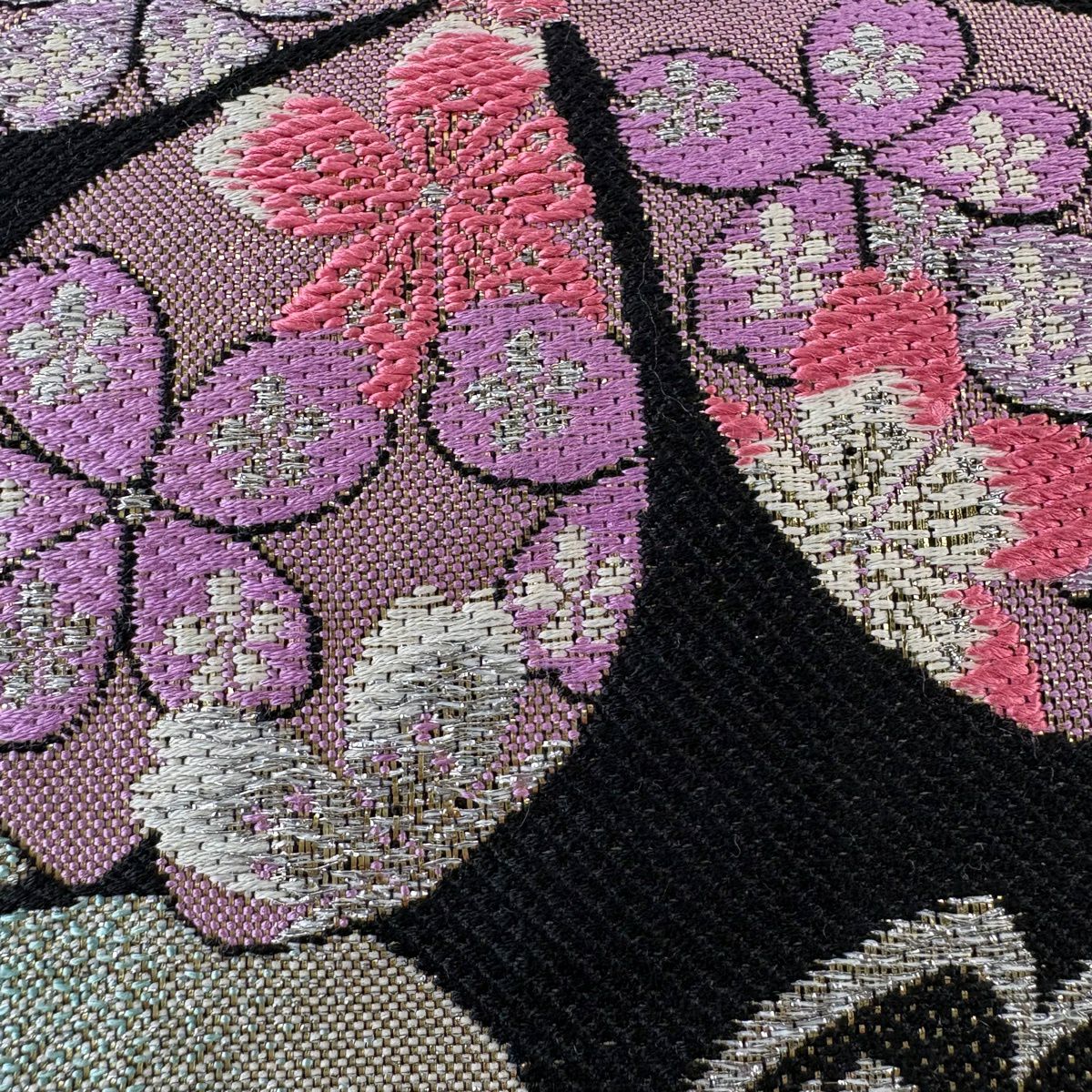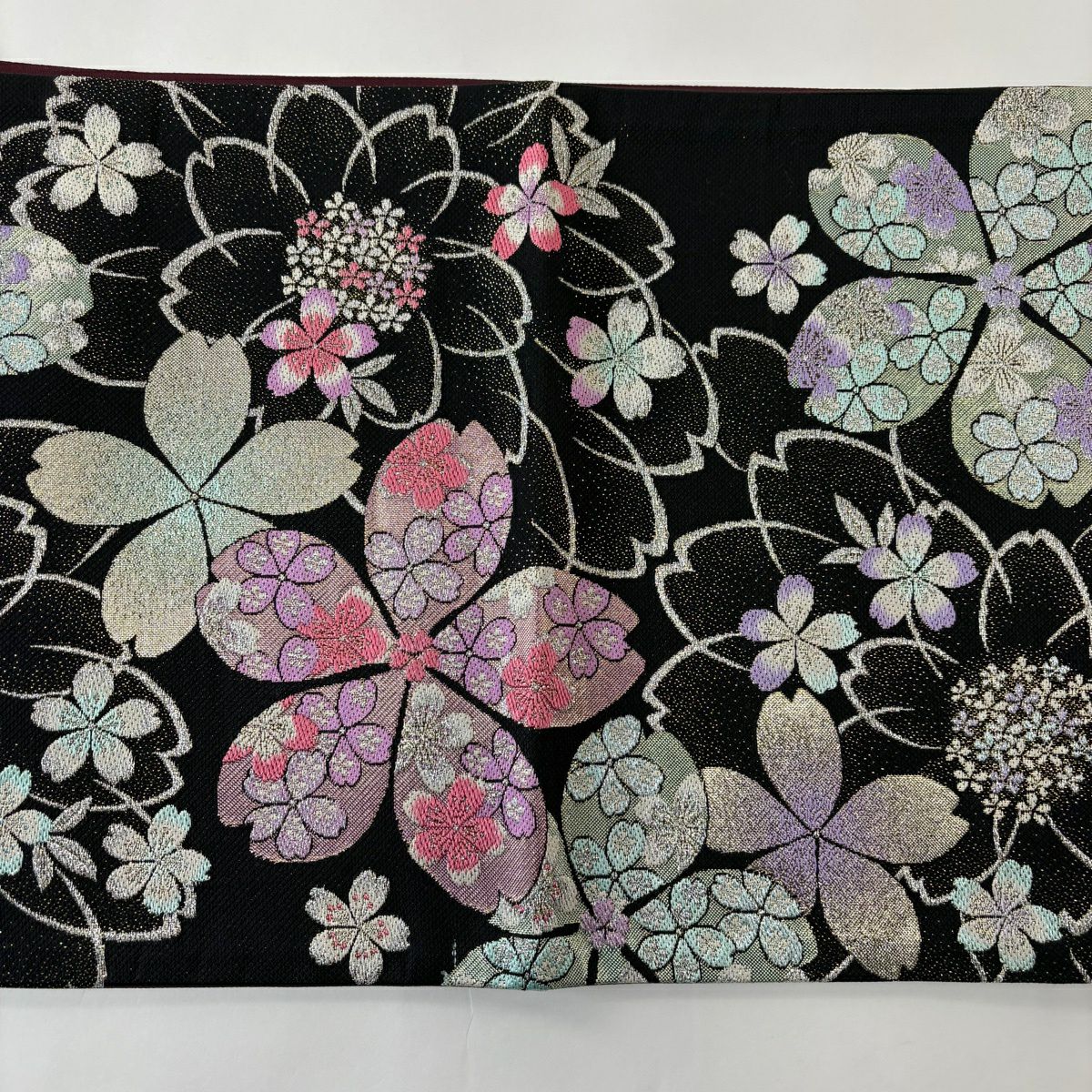 袋帯 秀品 桜 箔 箔 黒 六通 正絹