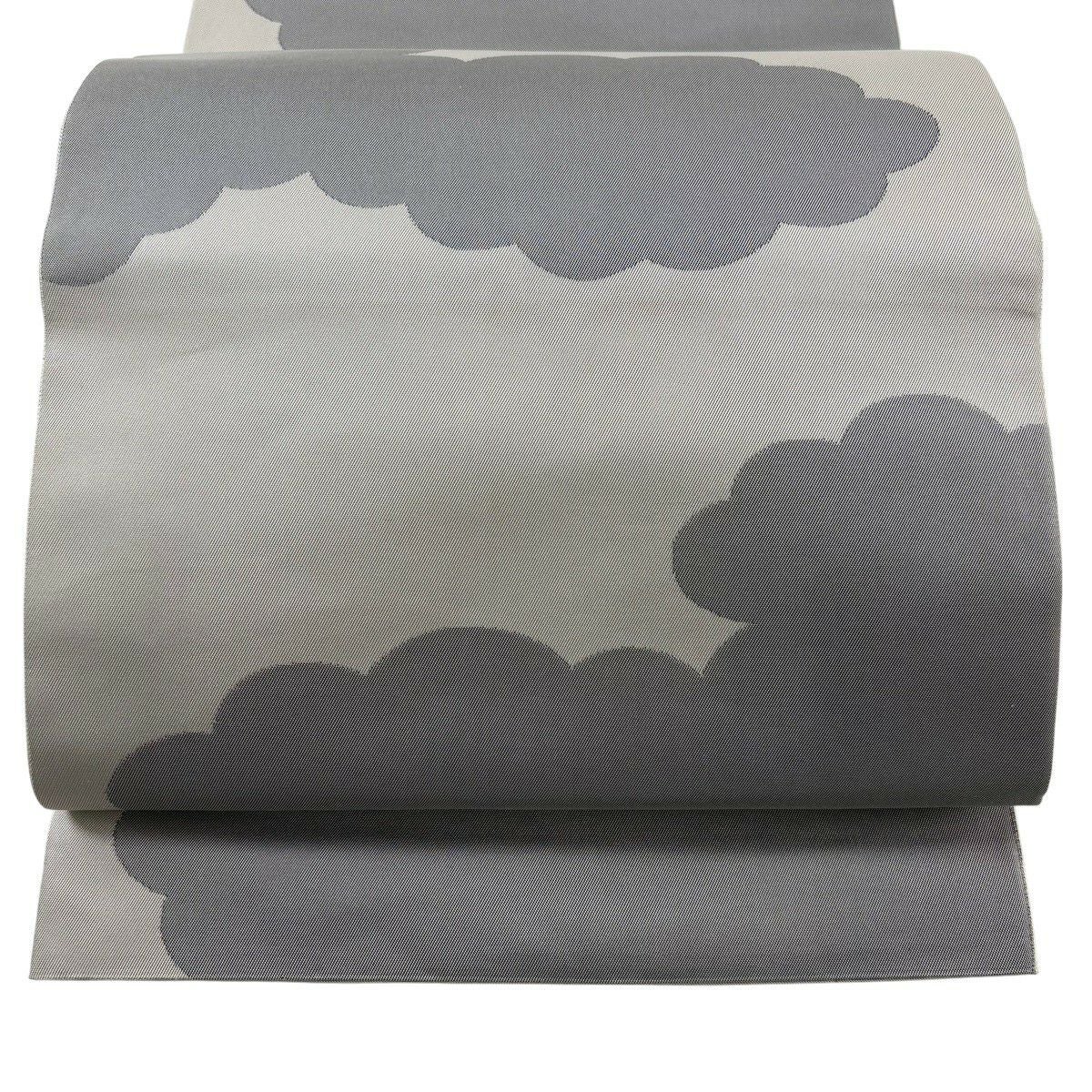 袋帯 秀品 雲文 灰茶 六通 正絹