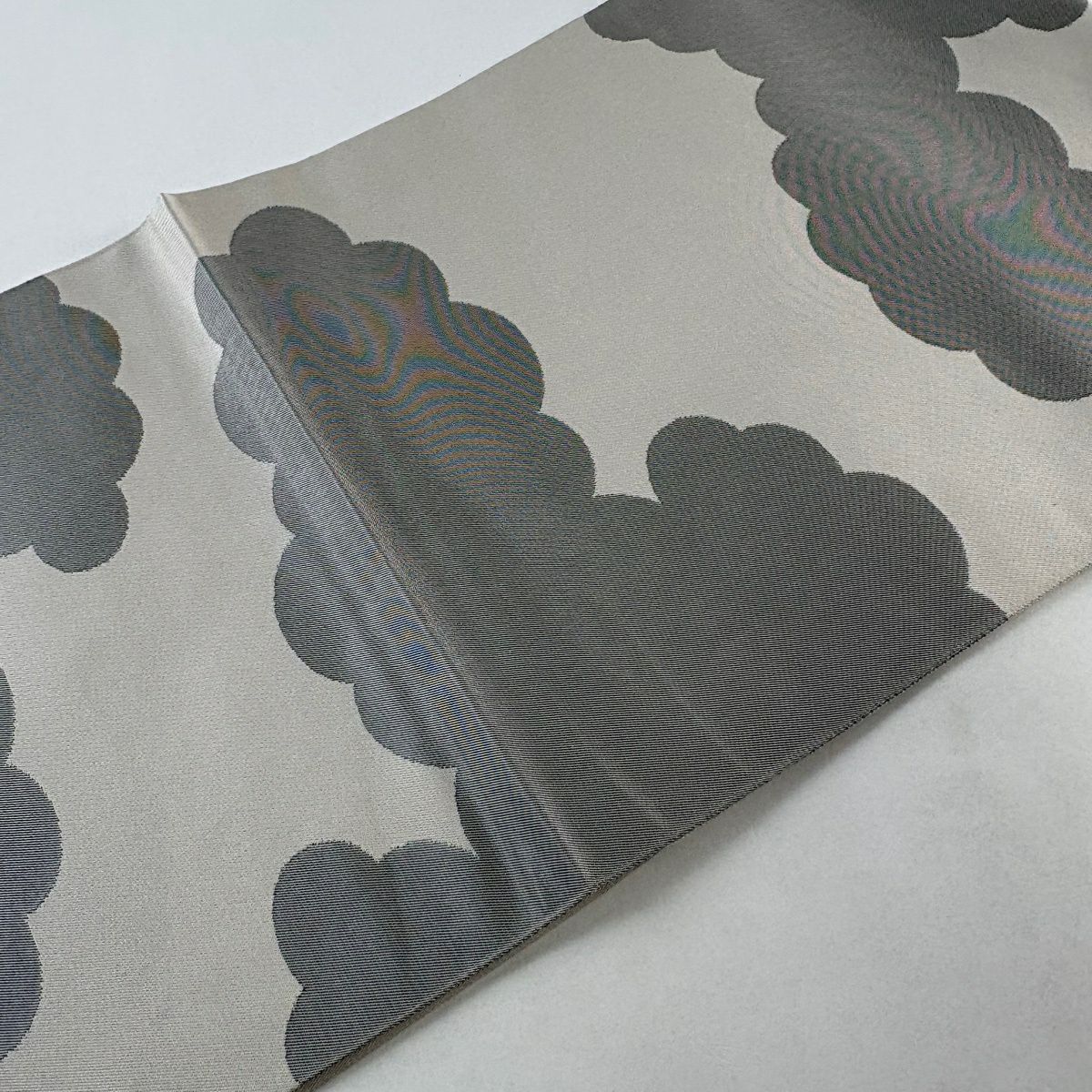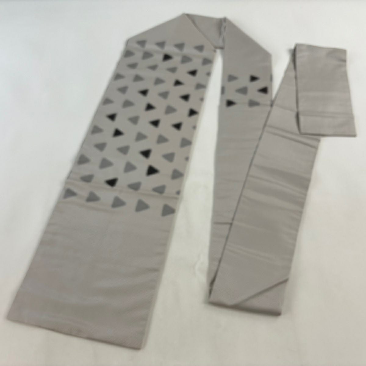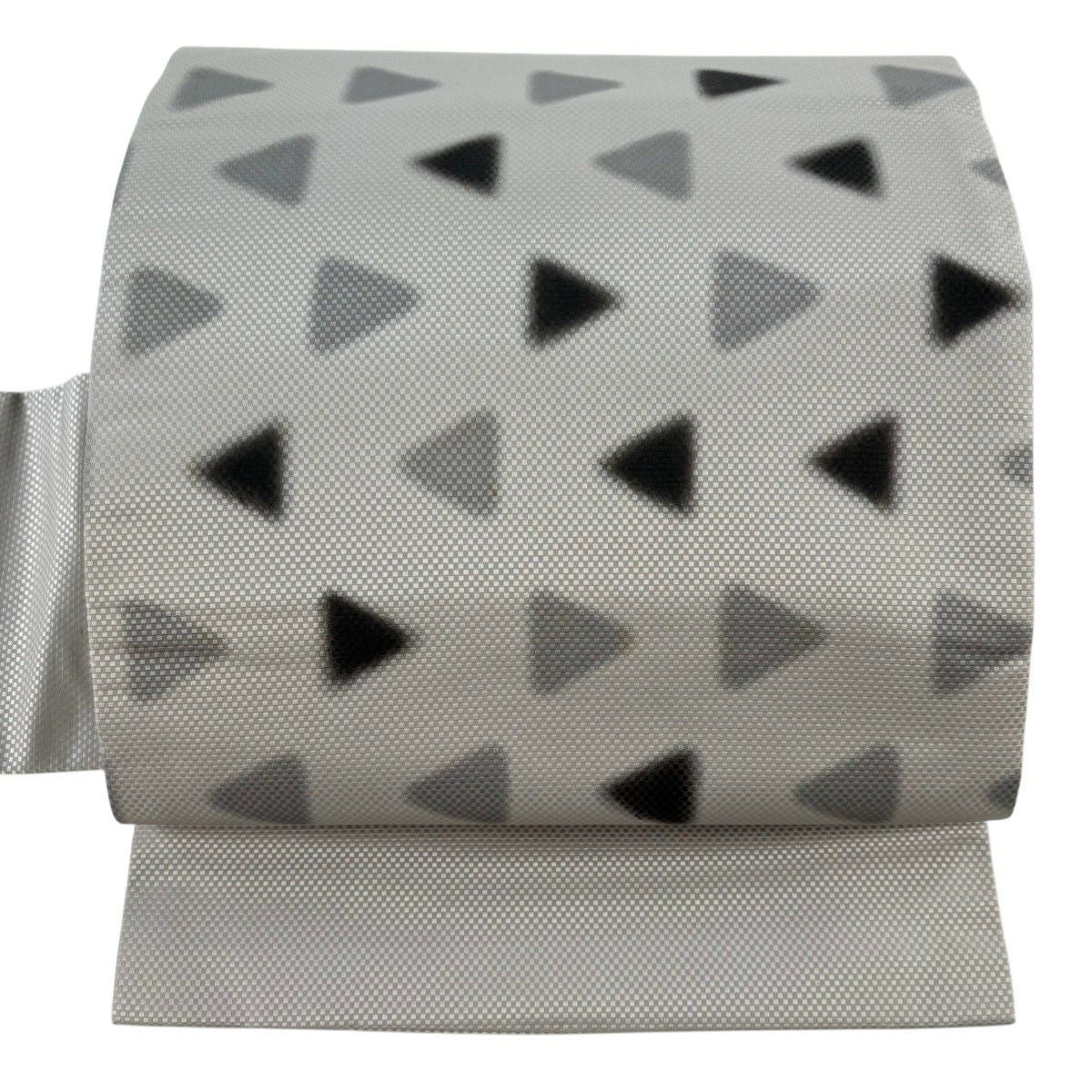 名古屋帯 秀品 幾何学 灰白 正絹