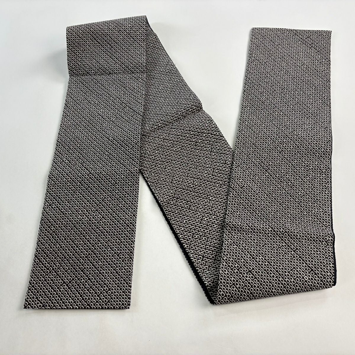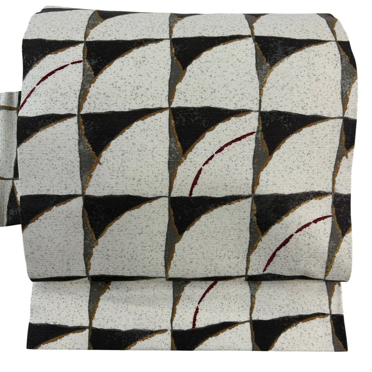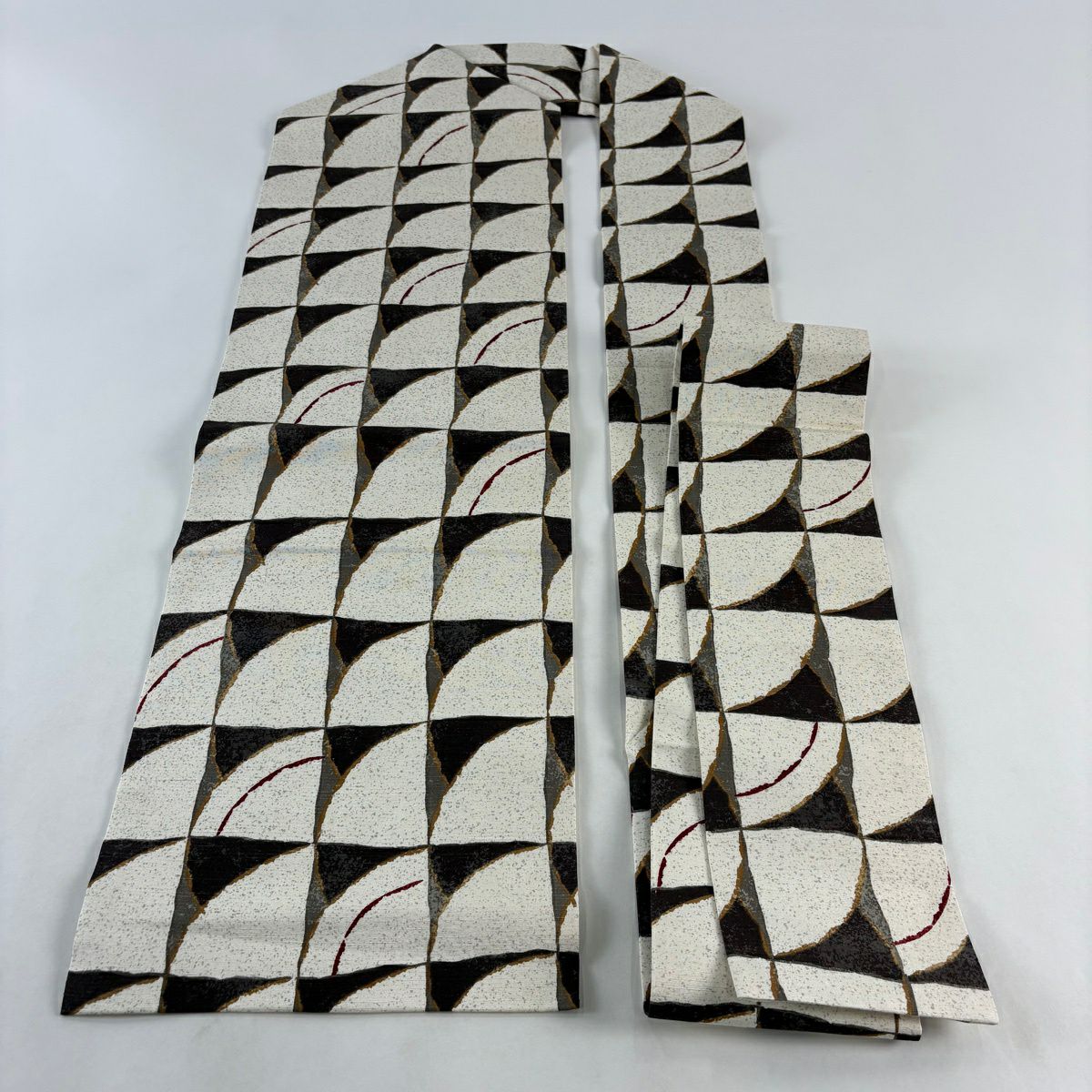 名古屋帯 秀品 幾何学 灰白 正絹