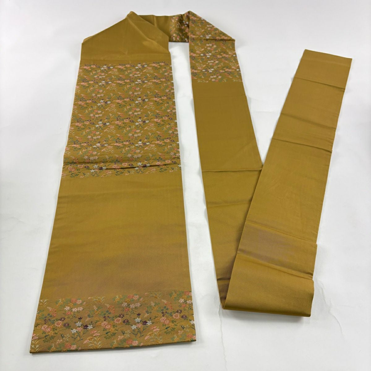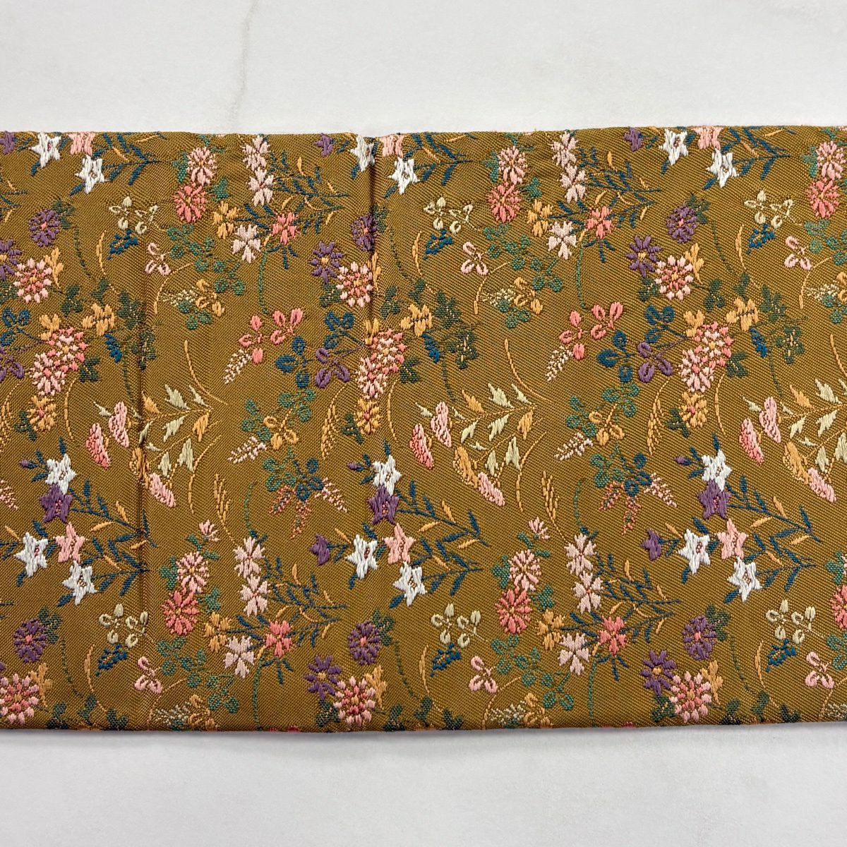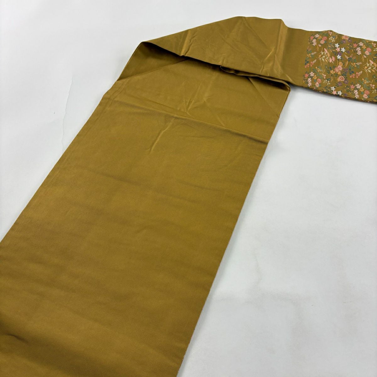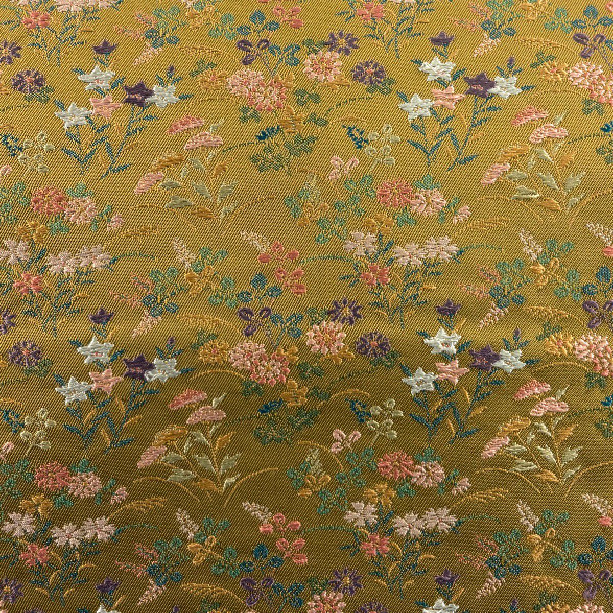 名古屋帯 秀品 草花 黄土色 正絹