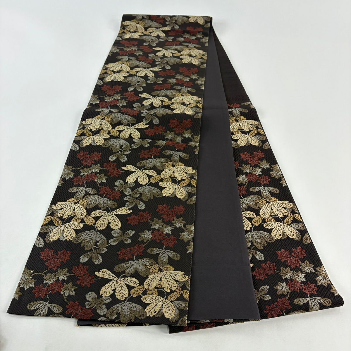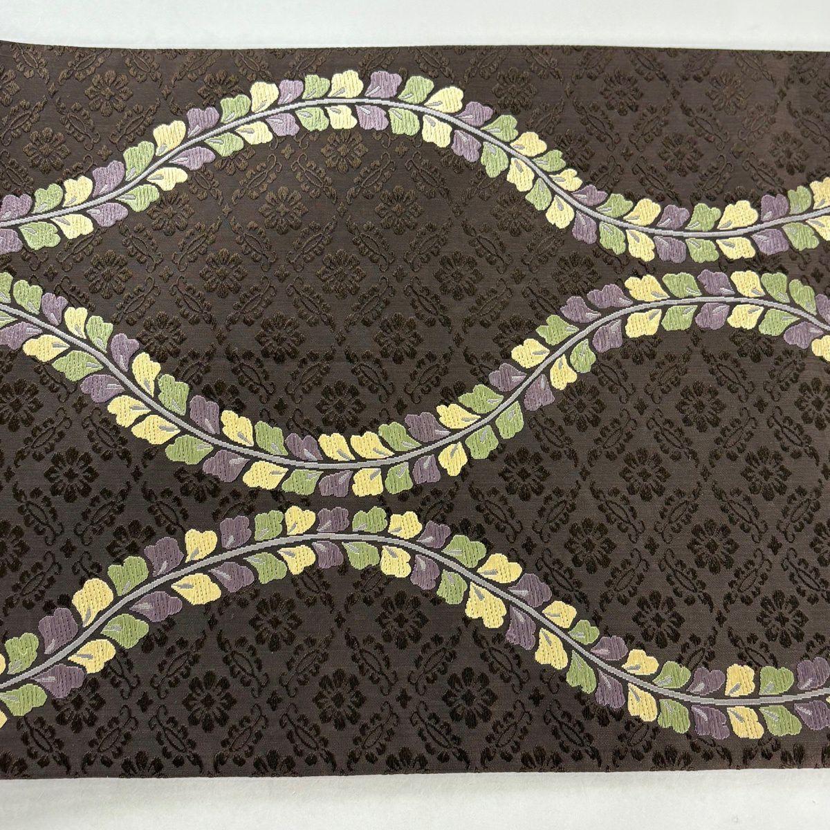 袋帯 秀品 葉柄 茶色 六通 正絹