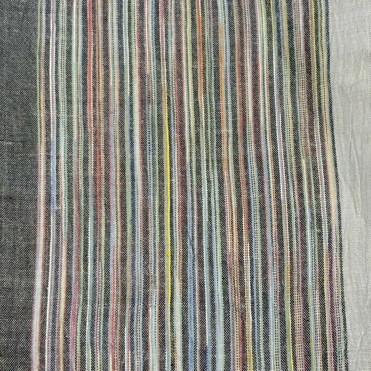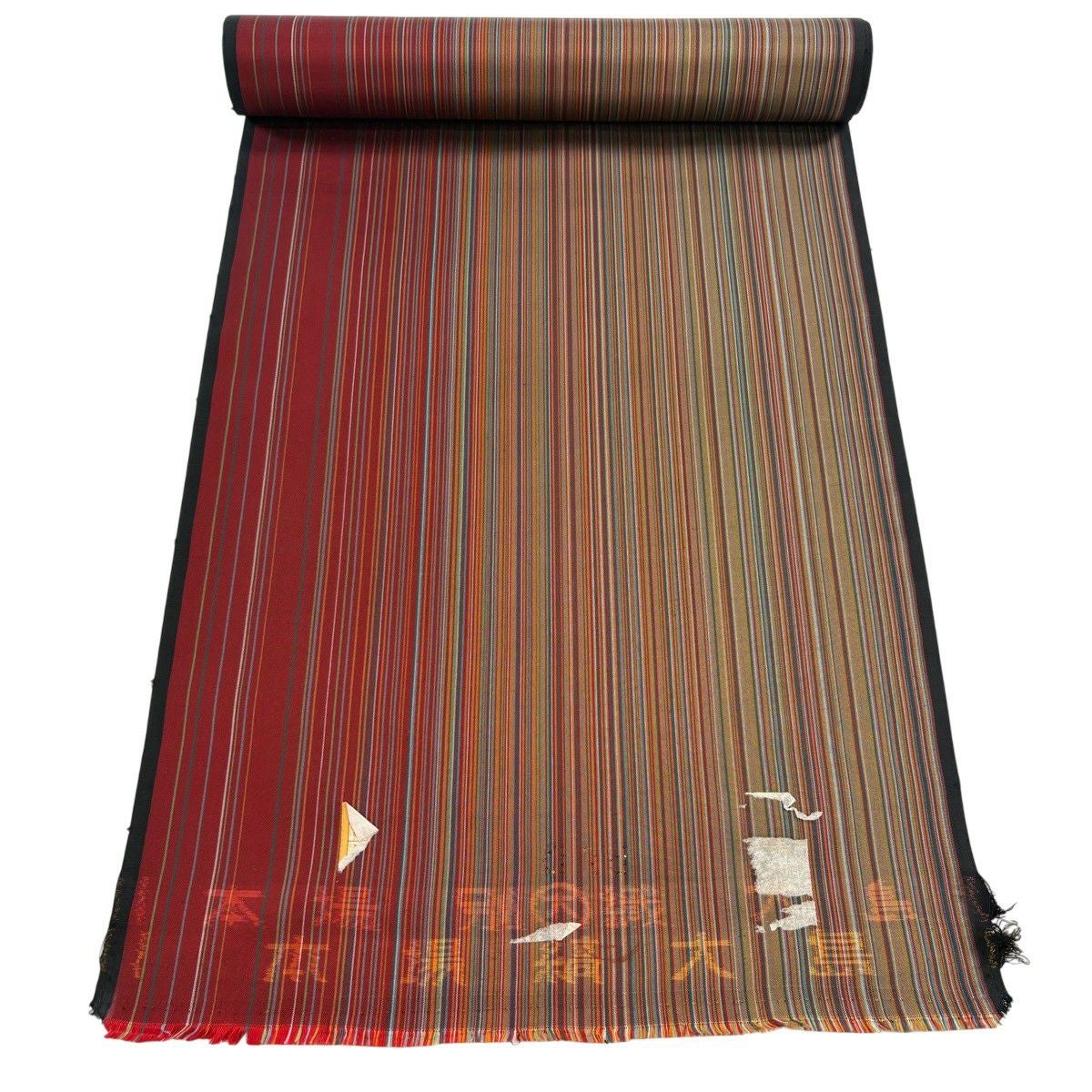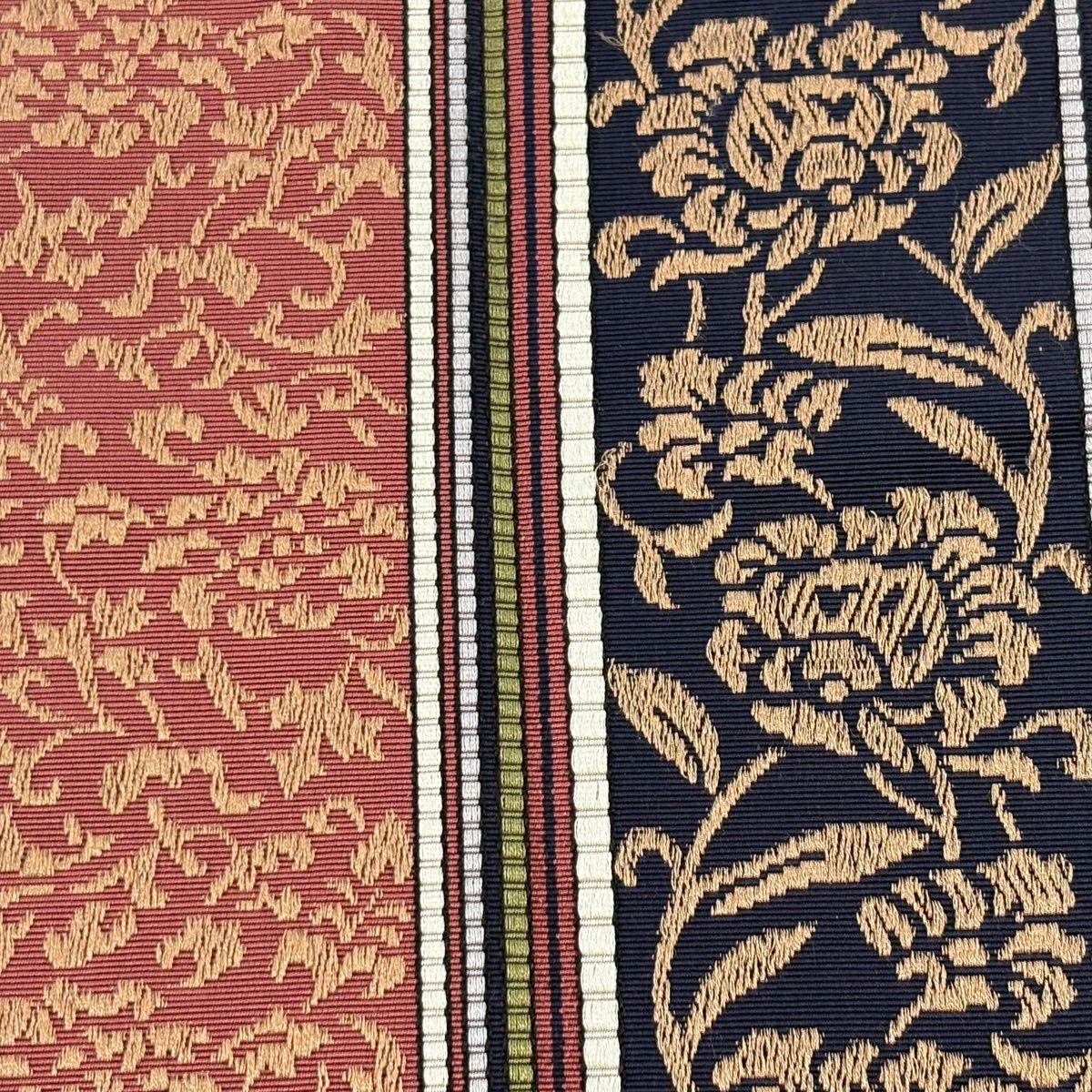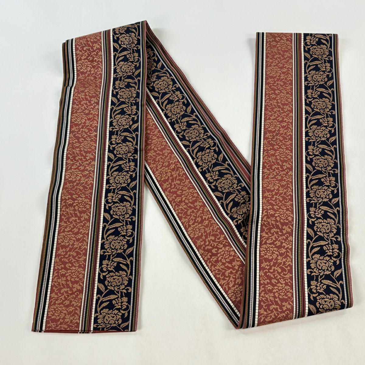 半幅帯 秀品 花唐草 縞 黒 正絹