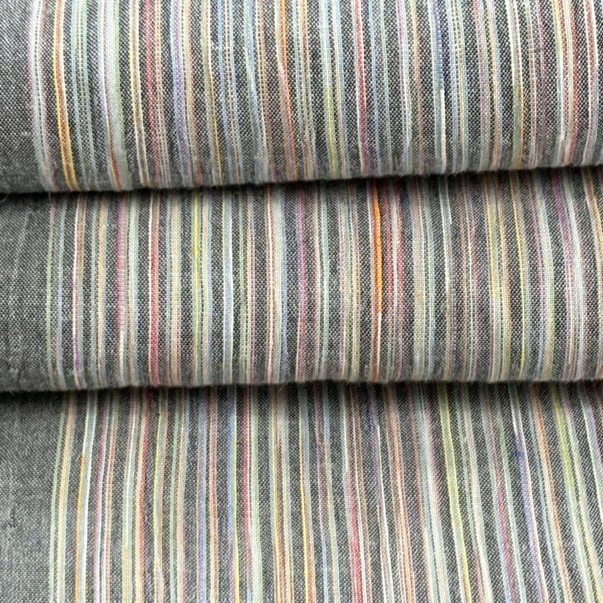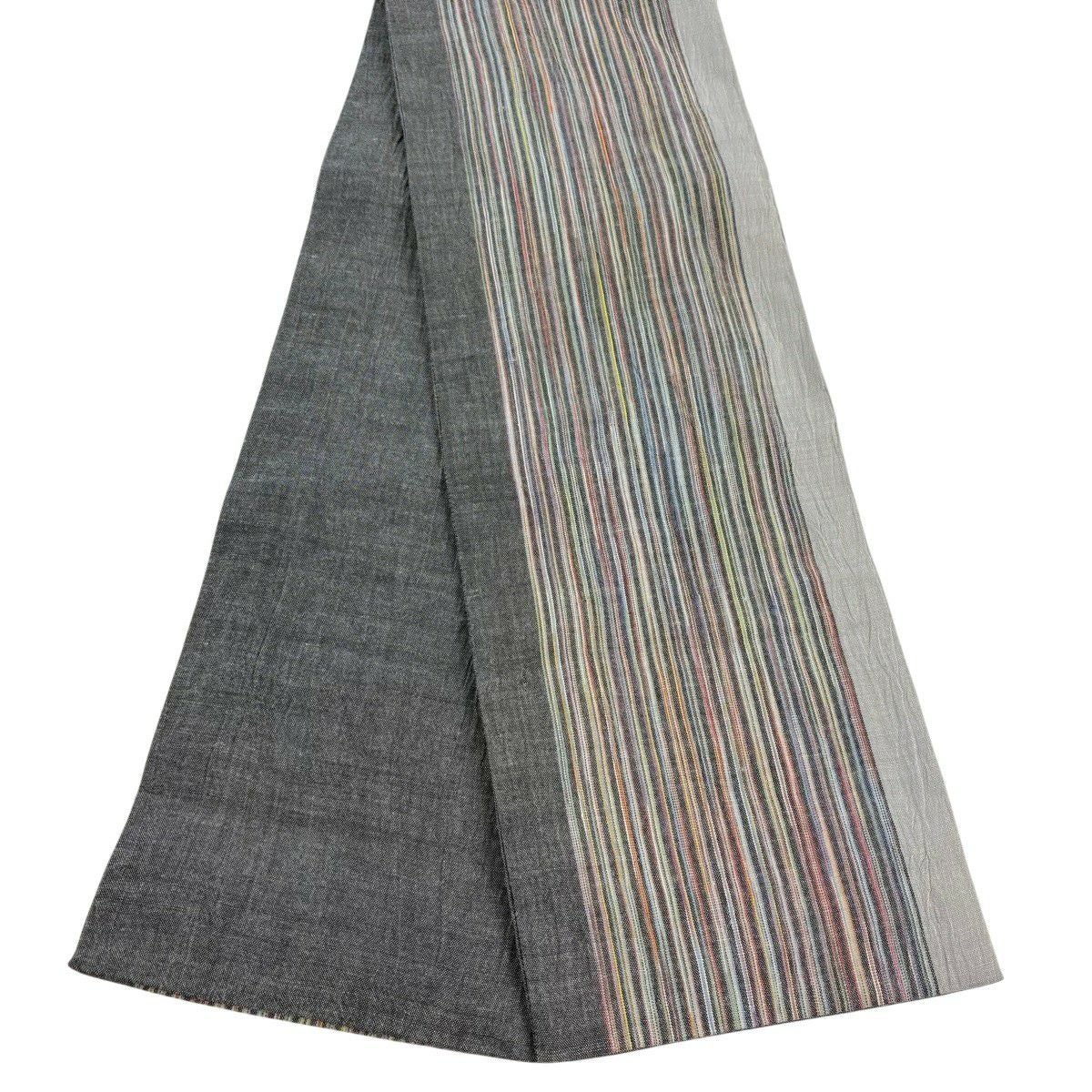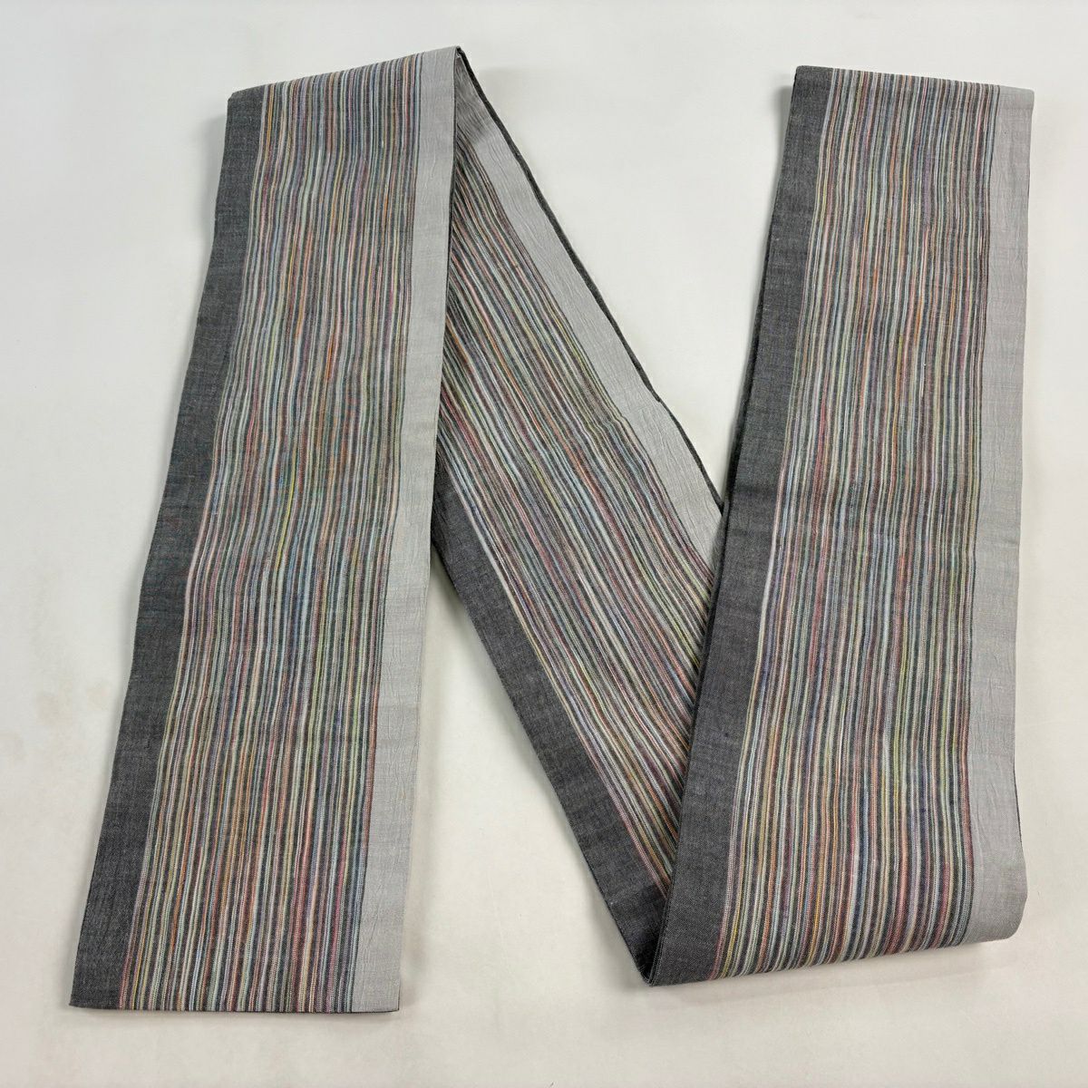 袋帯 秀品 段縞 灰色 全通 正絹