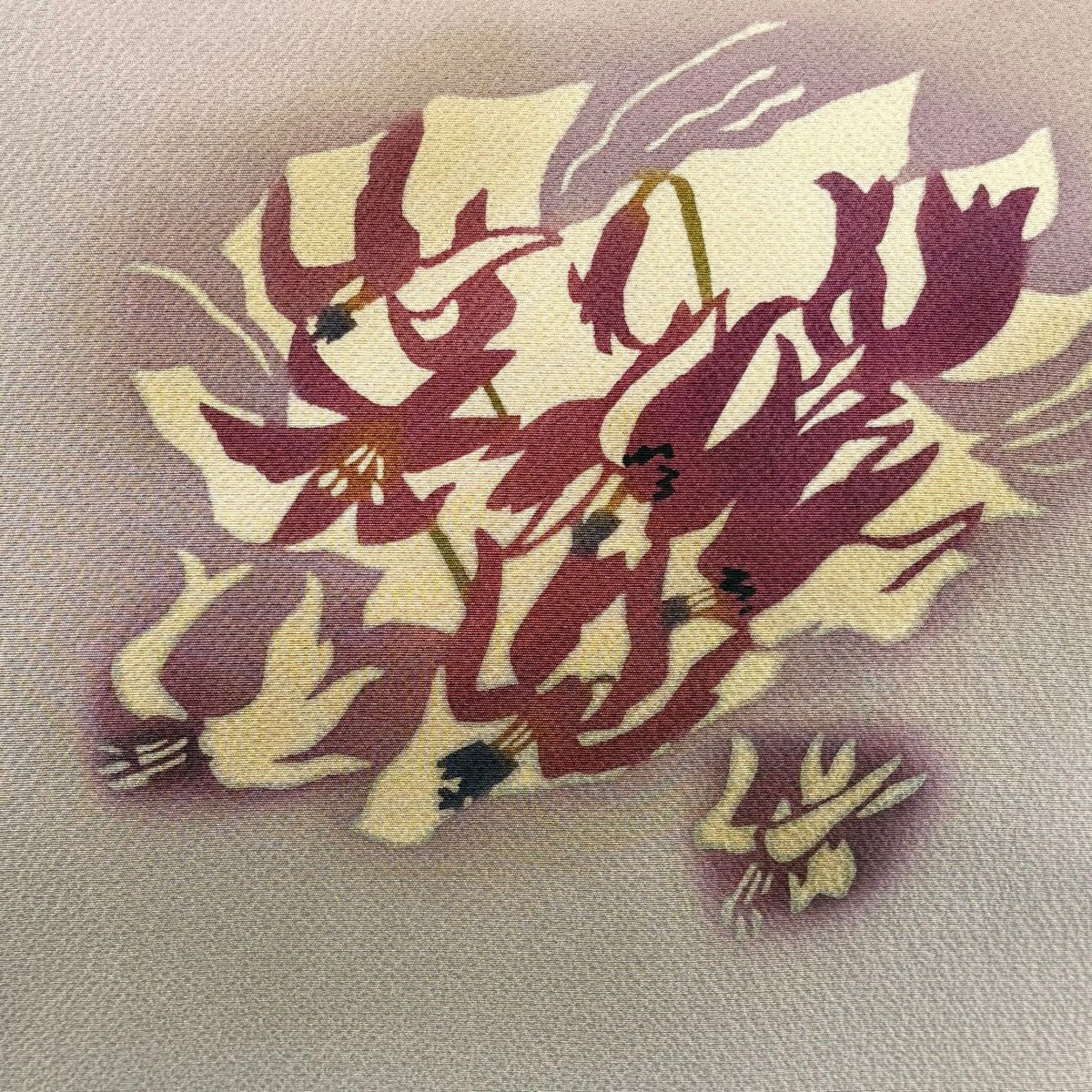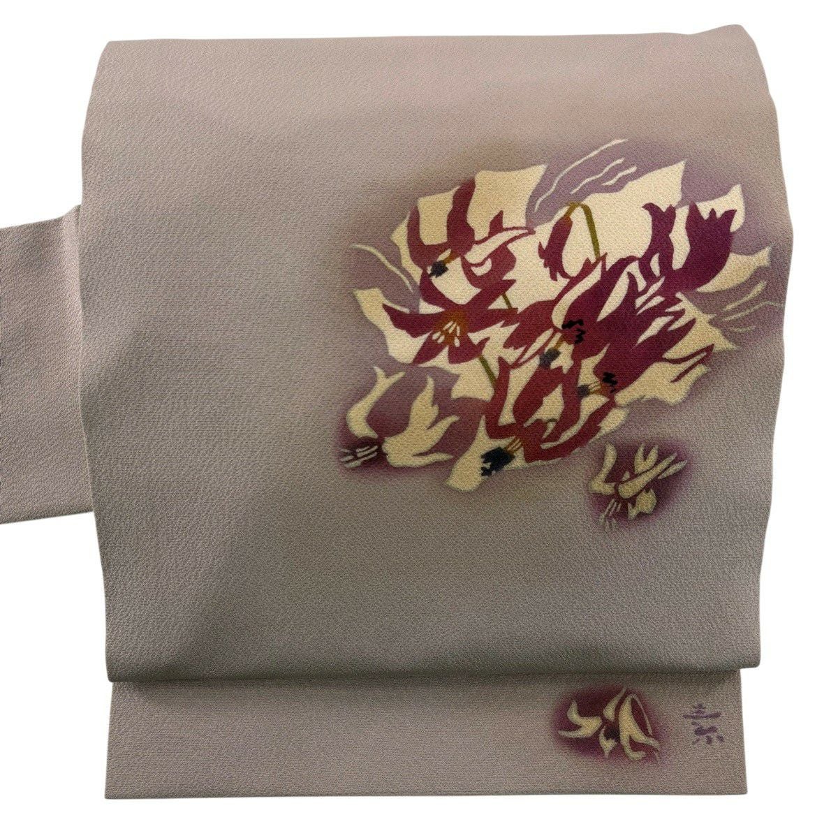 袋帯 秀品 草花 灰紫 全通 正絹