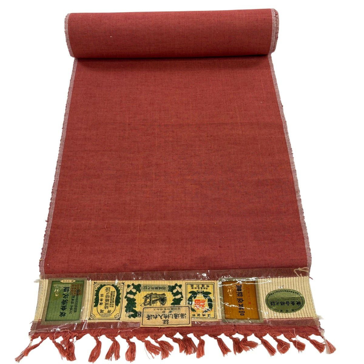 名古屋帯 秀品 幾何学 茜色 正絹