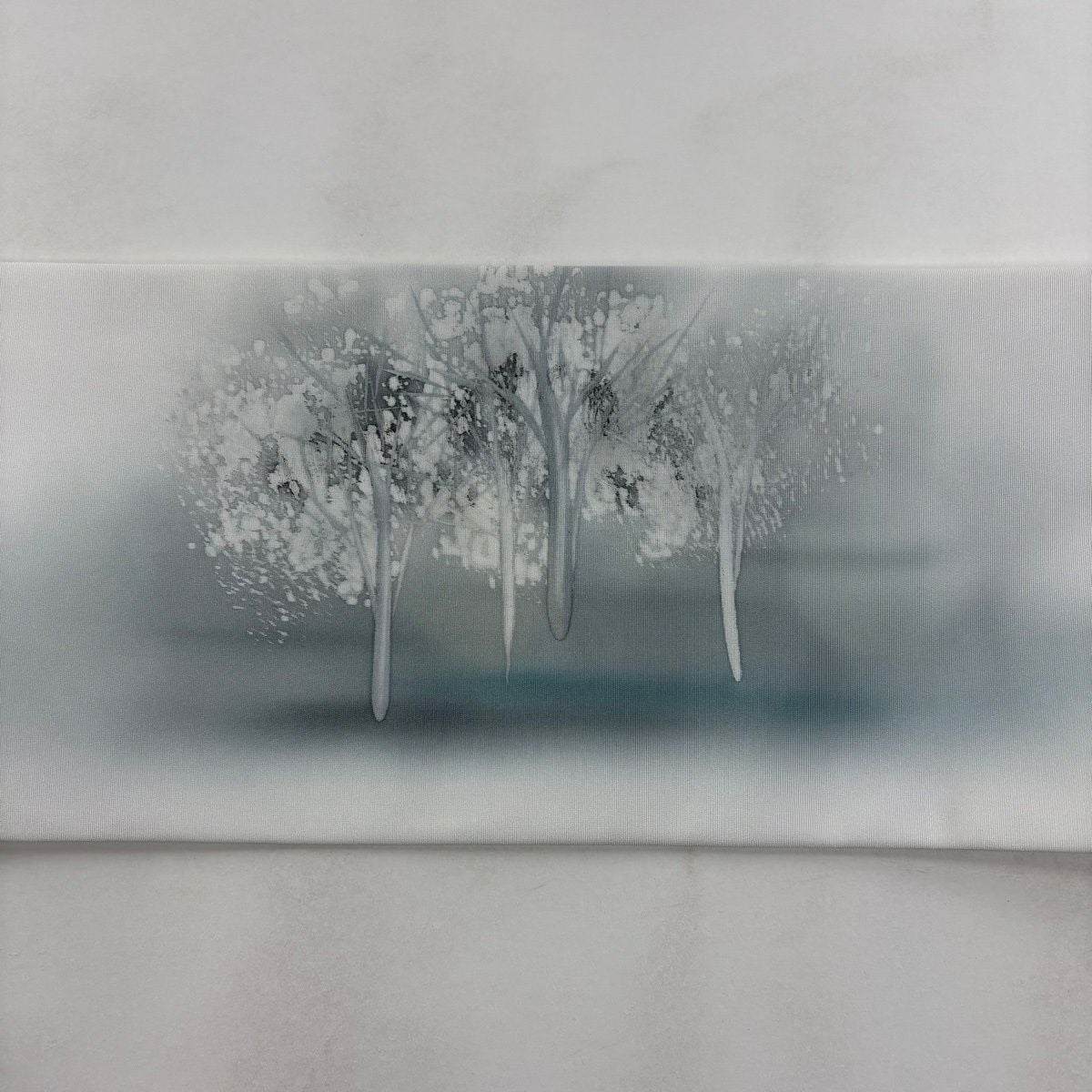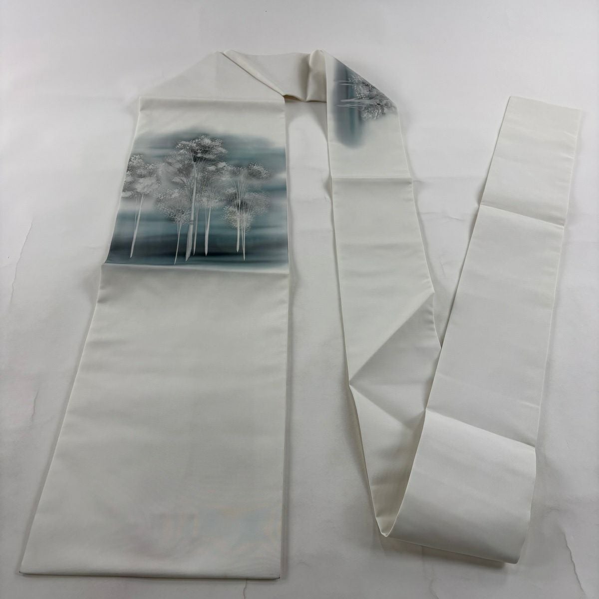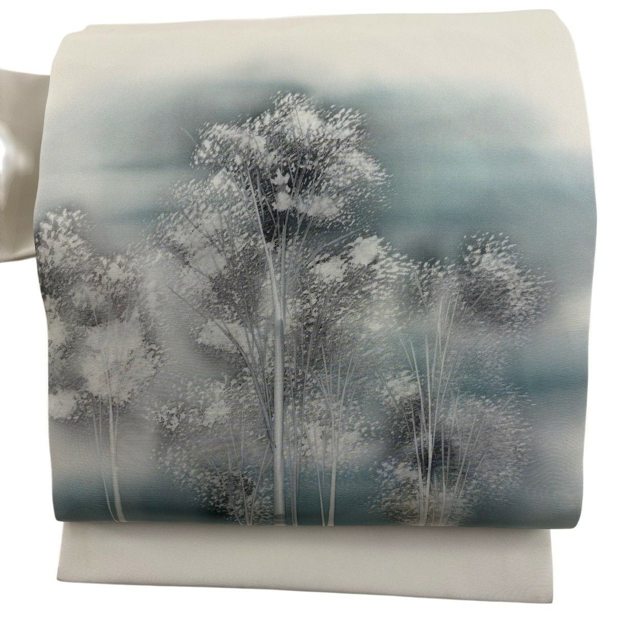 名古屋帯 秀品 樹木 霞 白 正絹