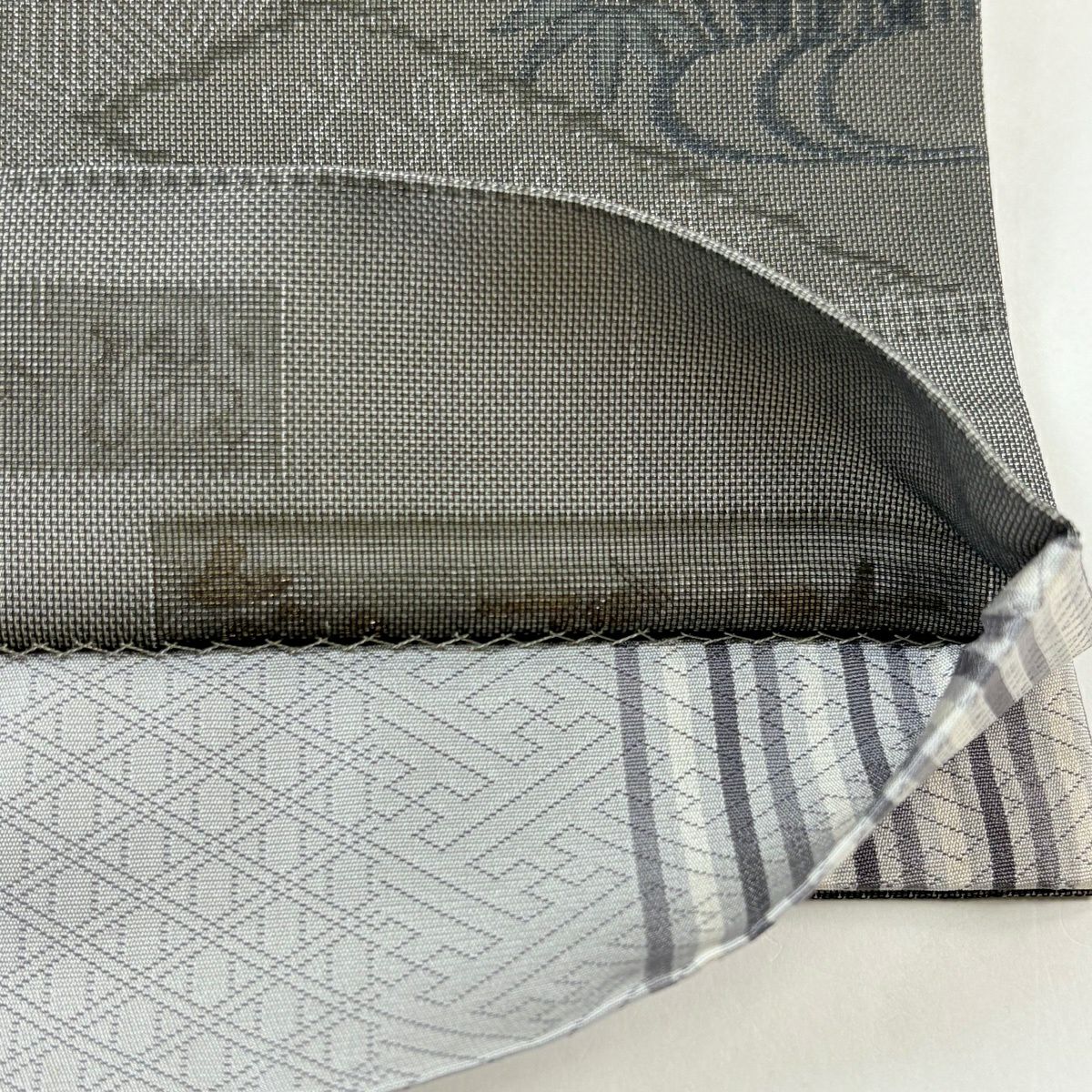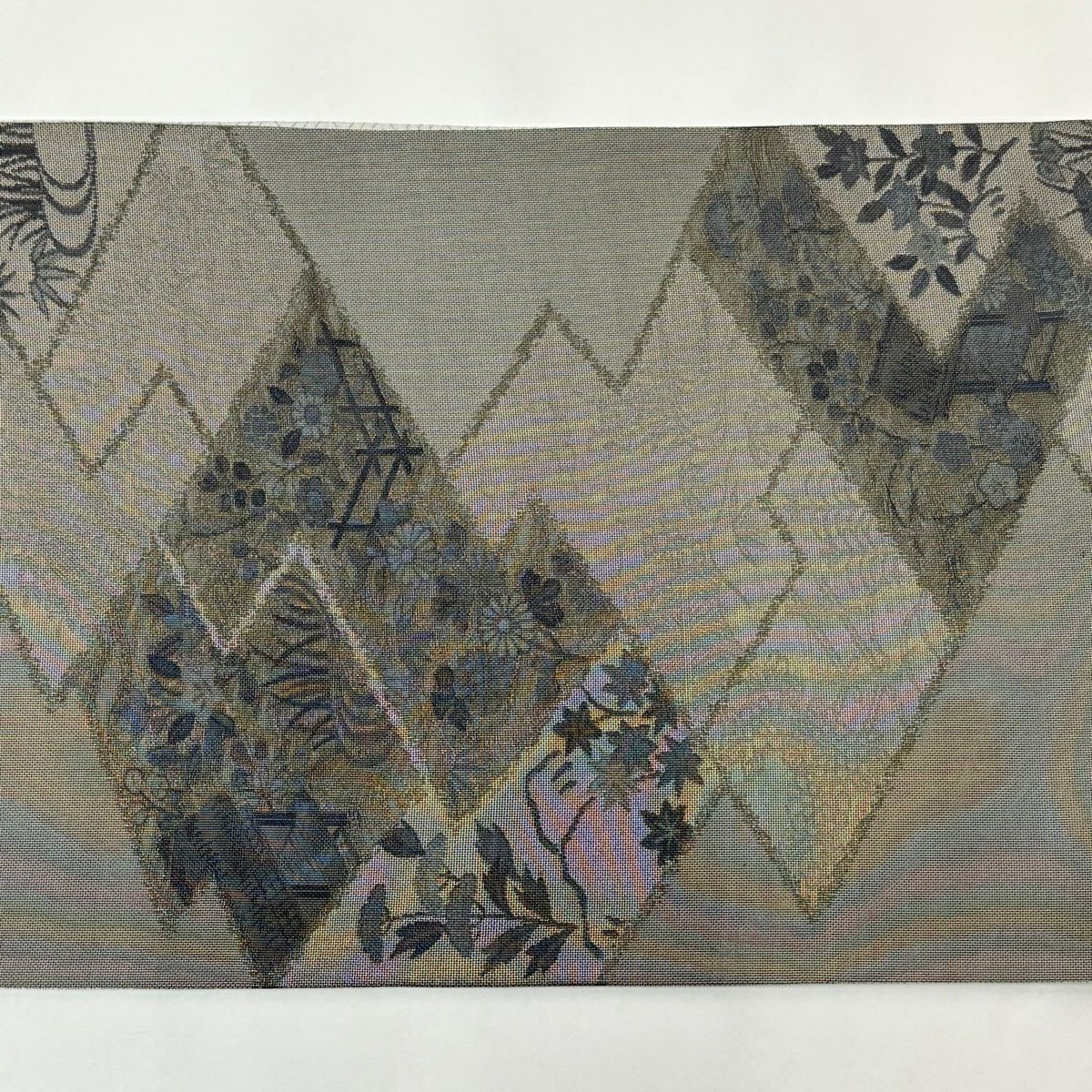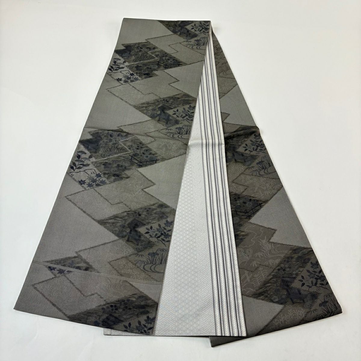 名古屋帯 秀品 幾何学 灰色 正絹