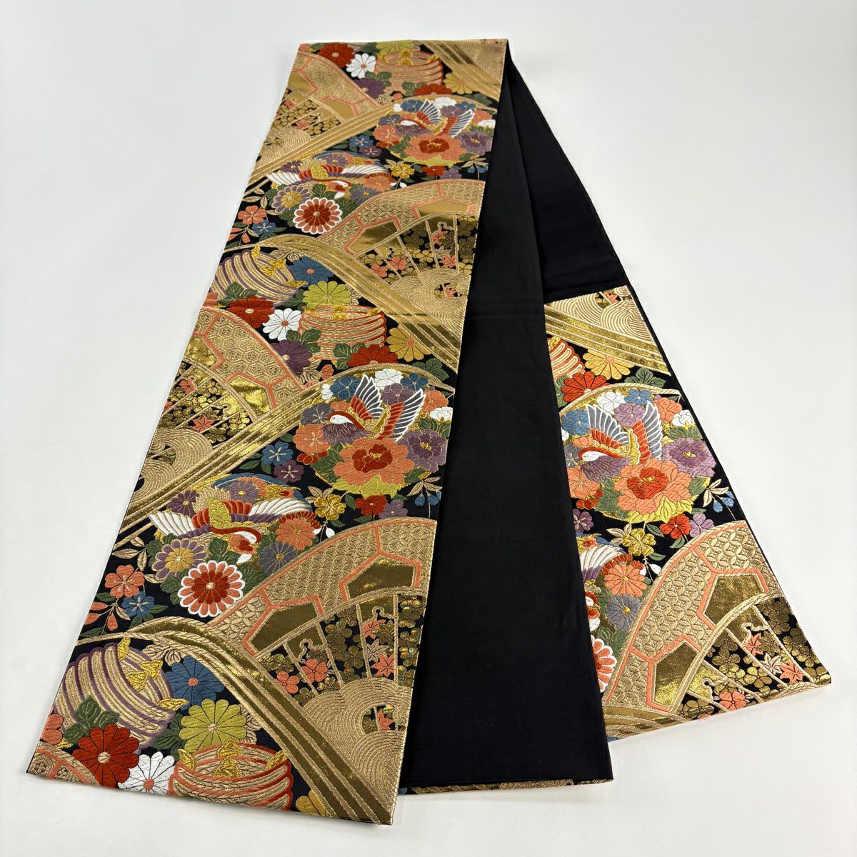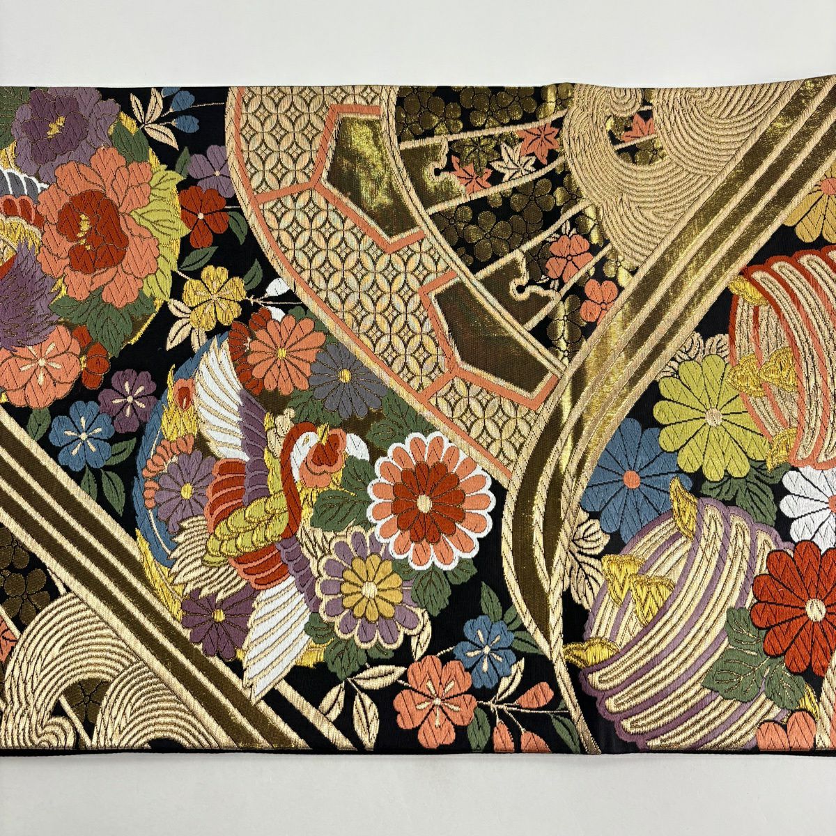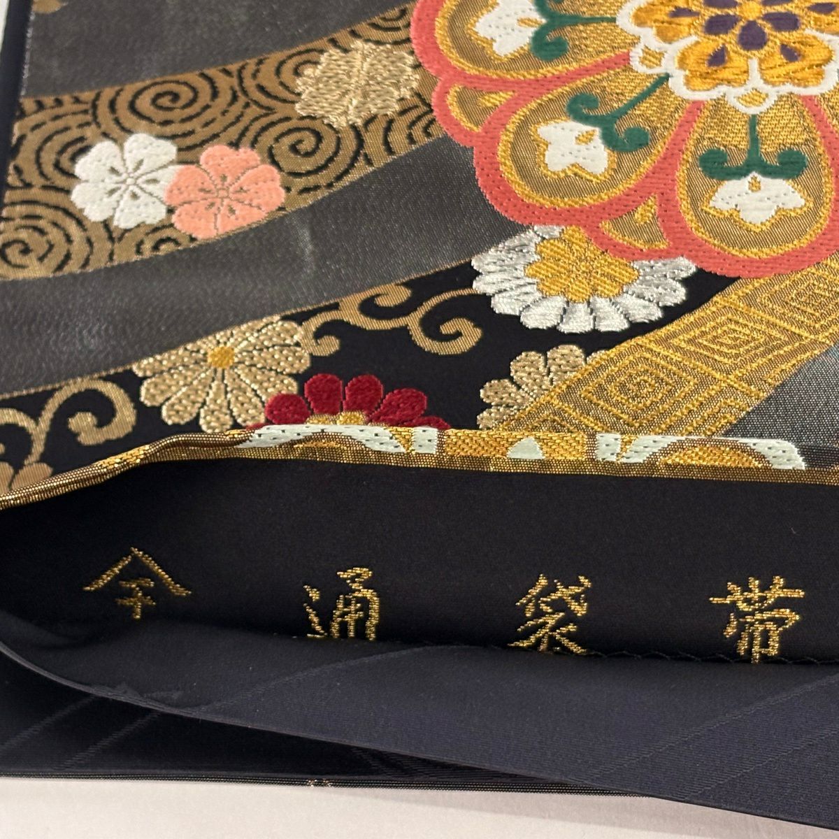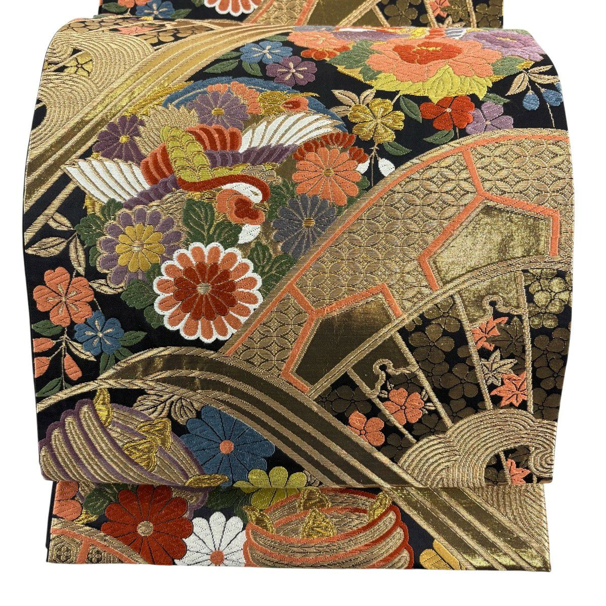 【美品】 袋帯 秀品 華文 熨斗 金銀糸 唐織 黒 全通 正絹