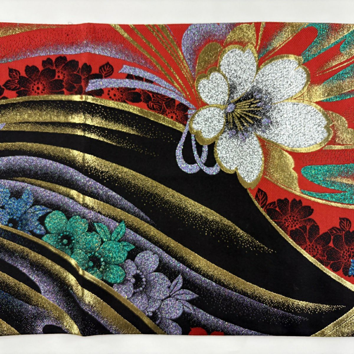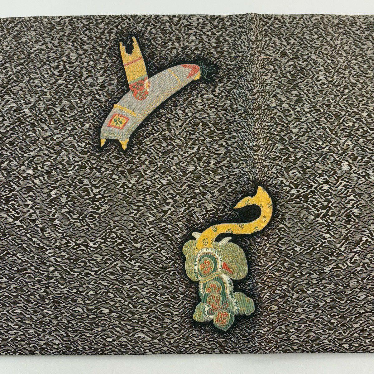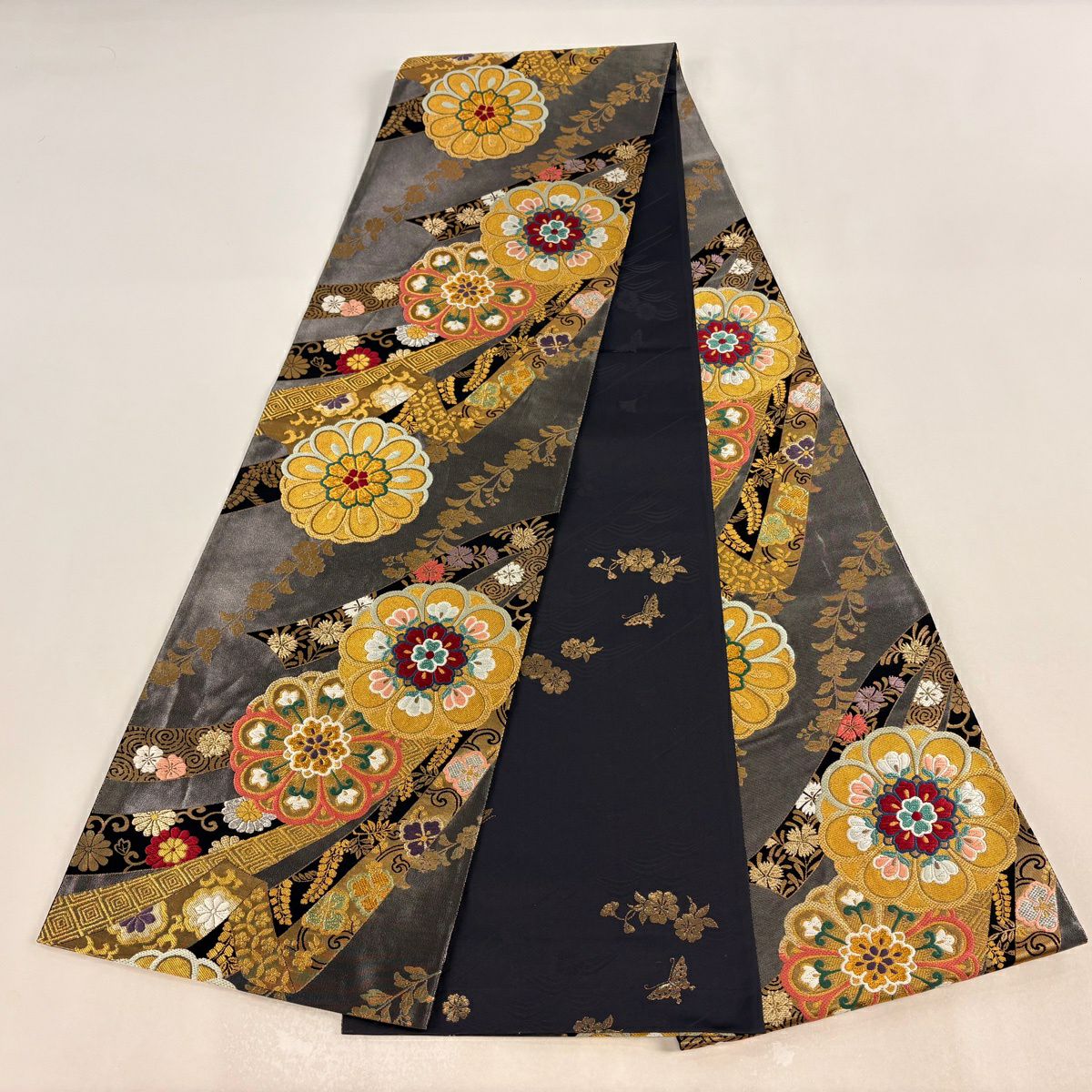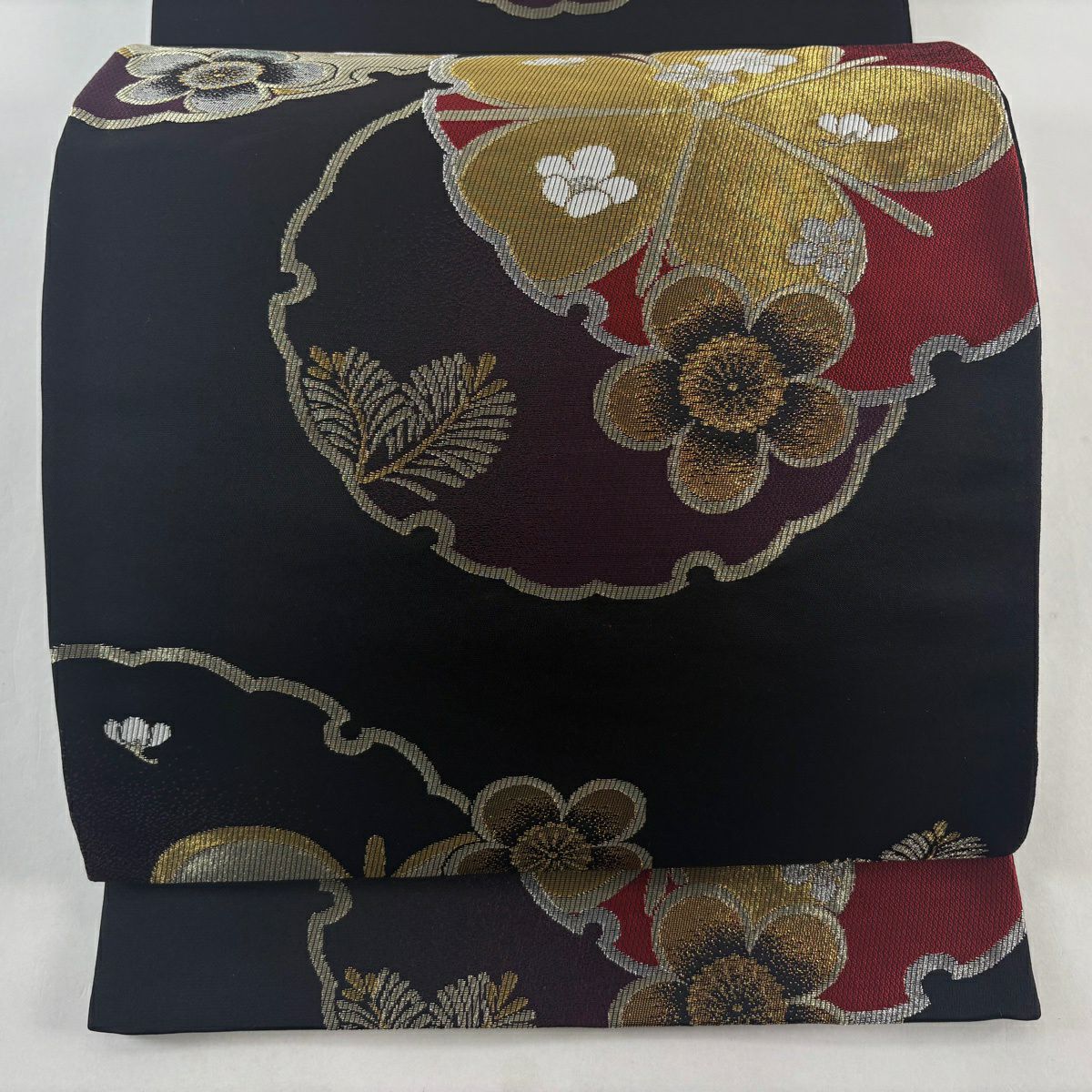 【美品】 袋帯 秀品 華文 熨斗 金銀糸 唐織 黒 全通 正絹