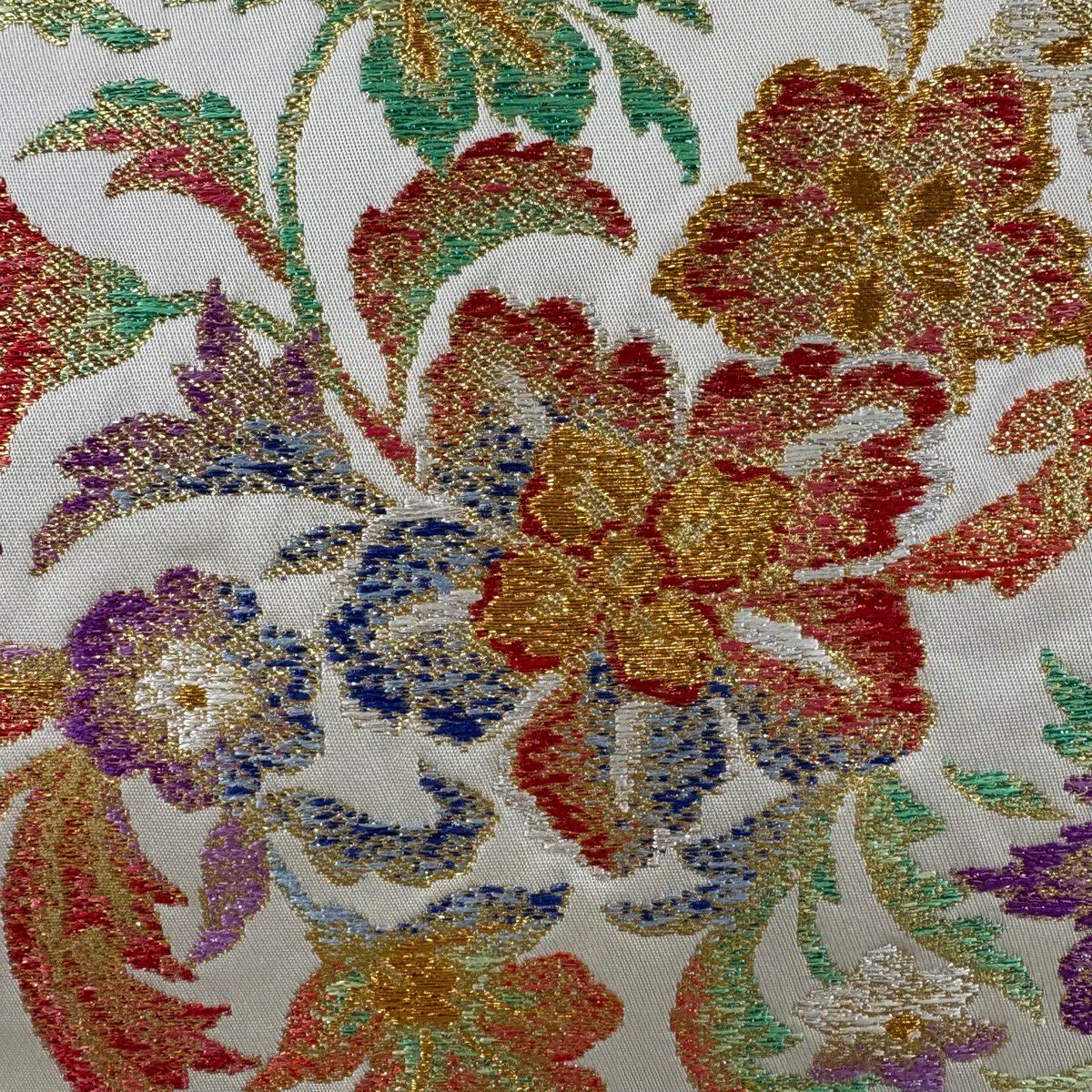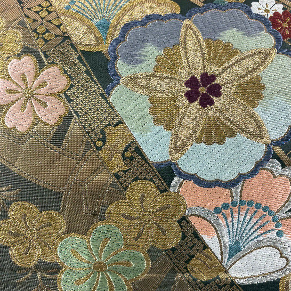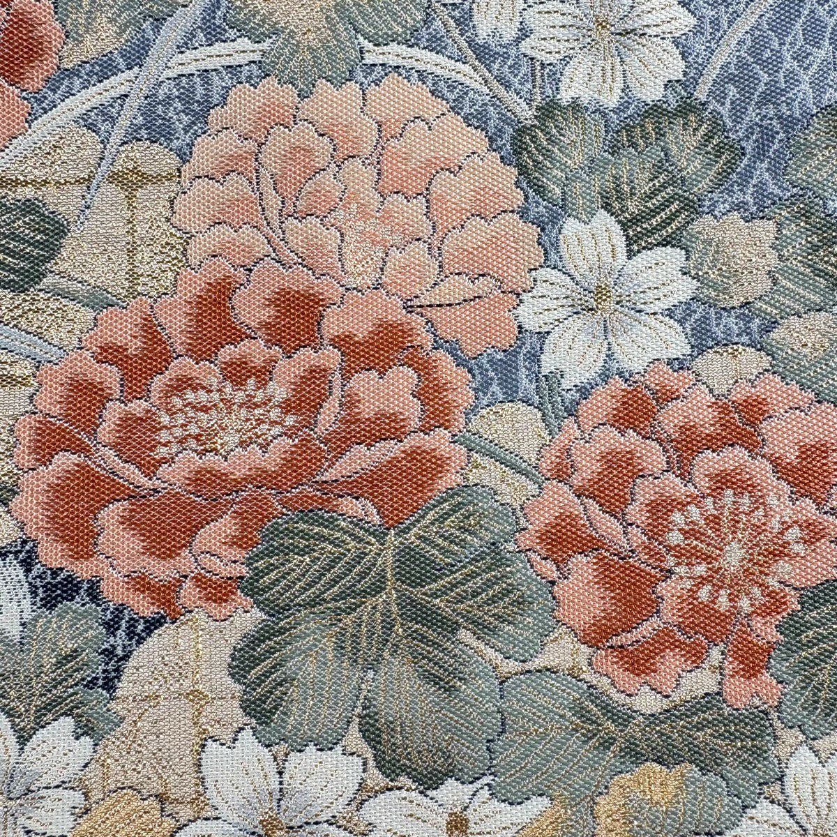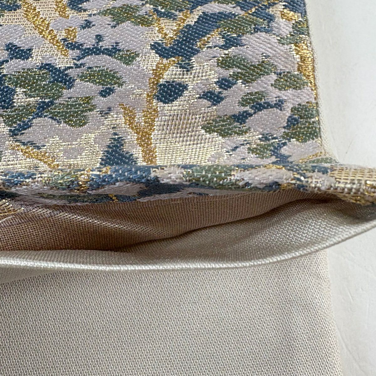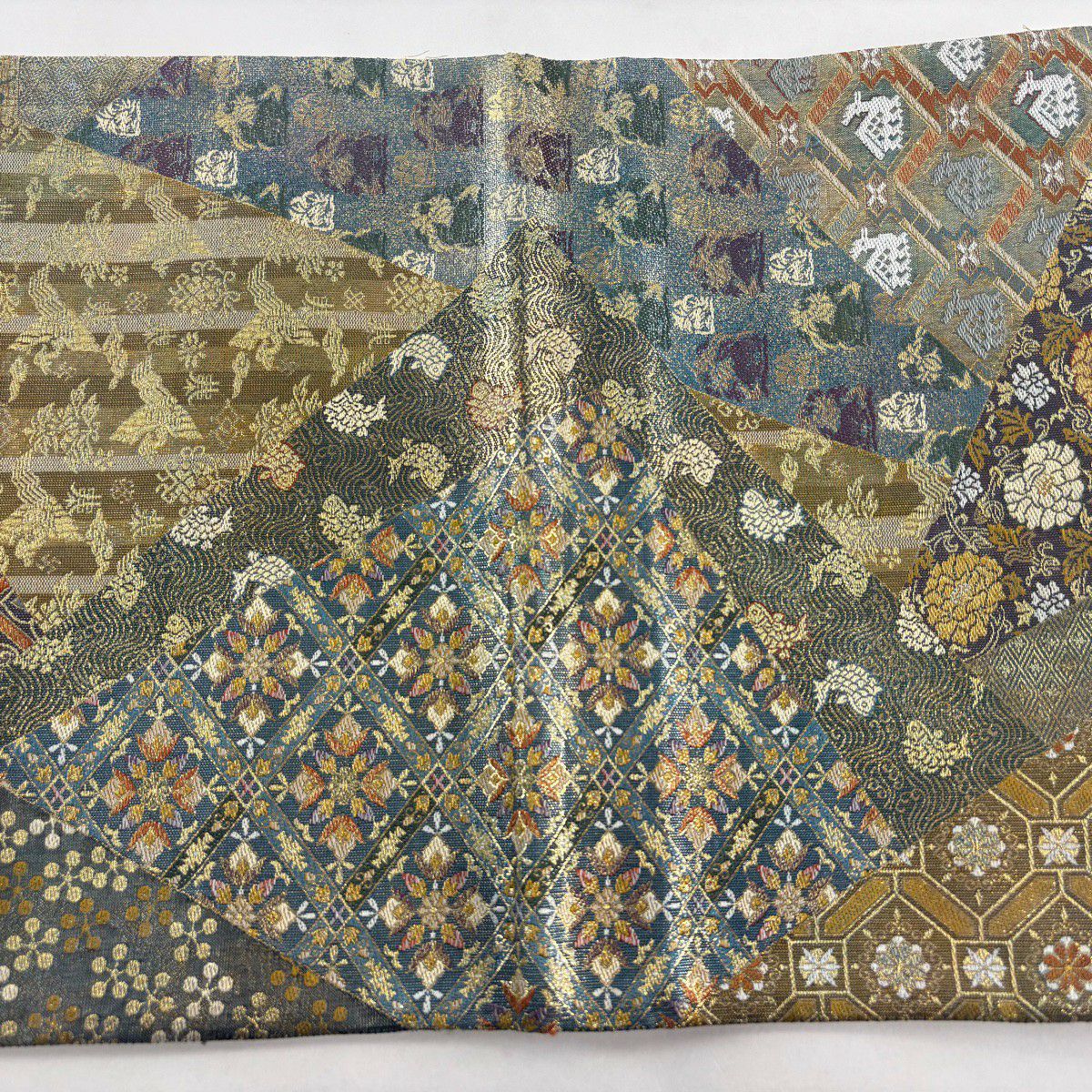袋帯 秀品 正倉院名物裂集成 花唐草 金糸 箔 灰緑 全通 正絹