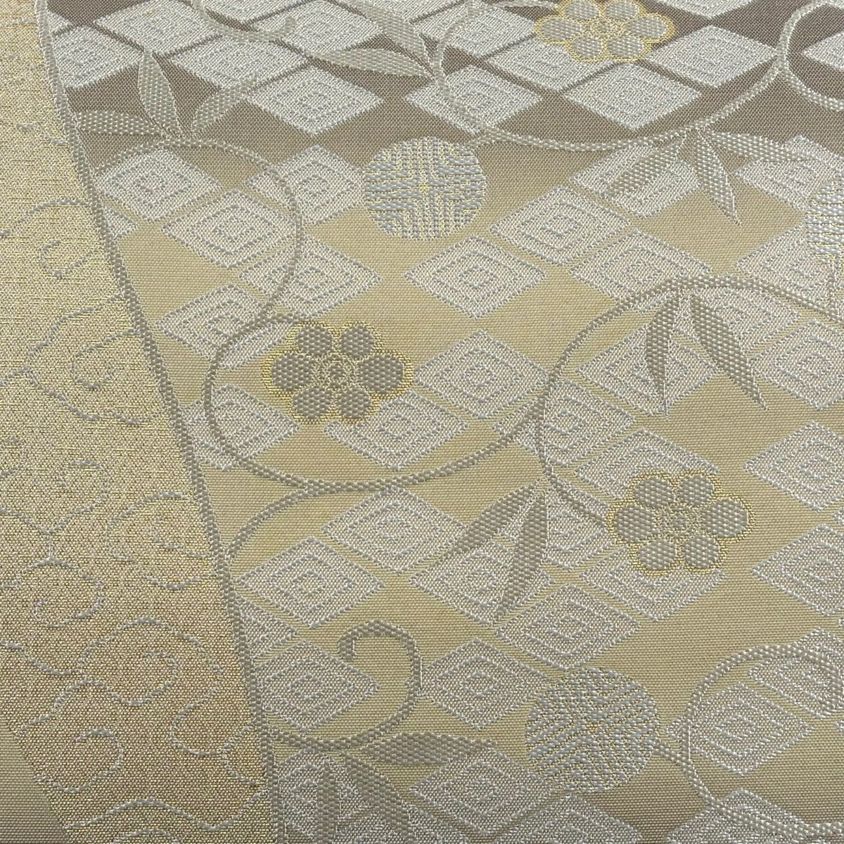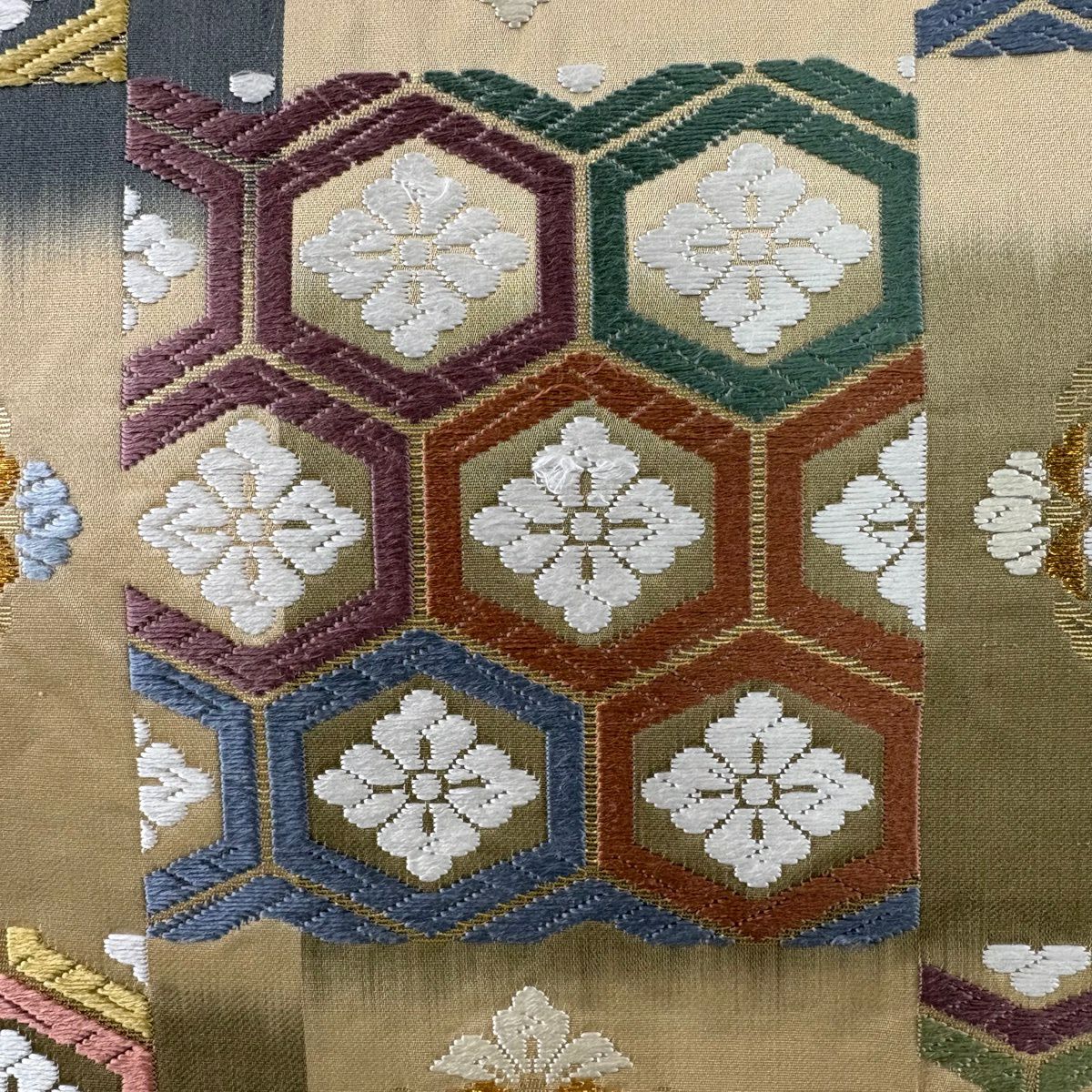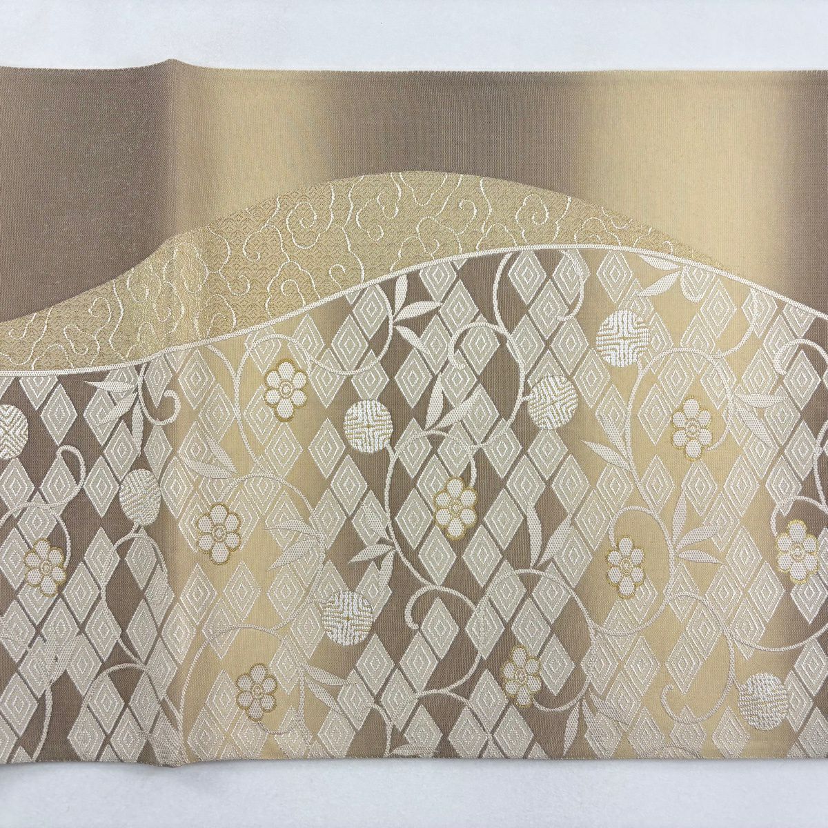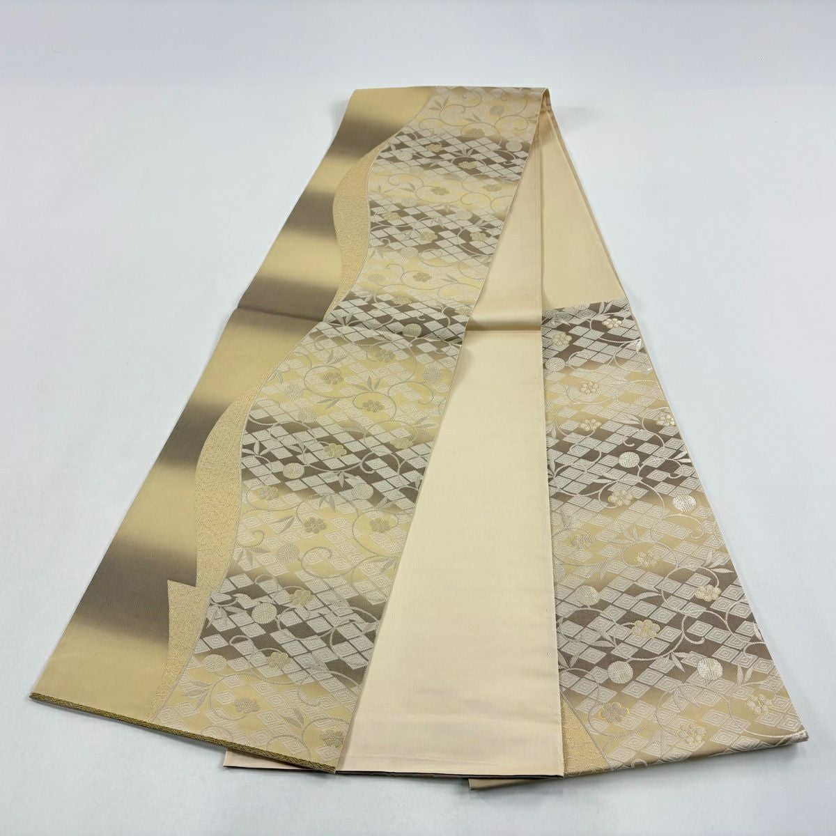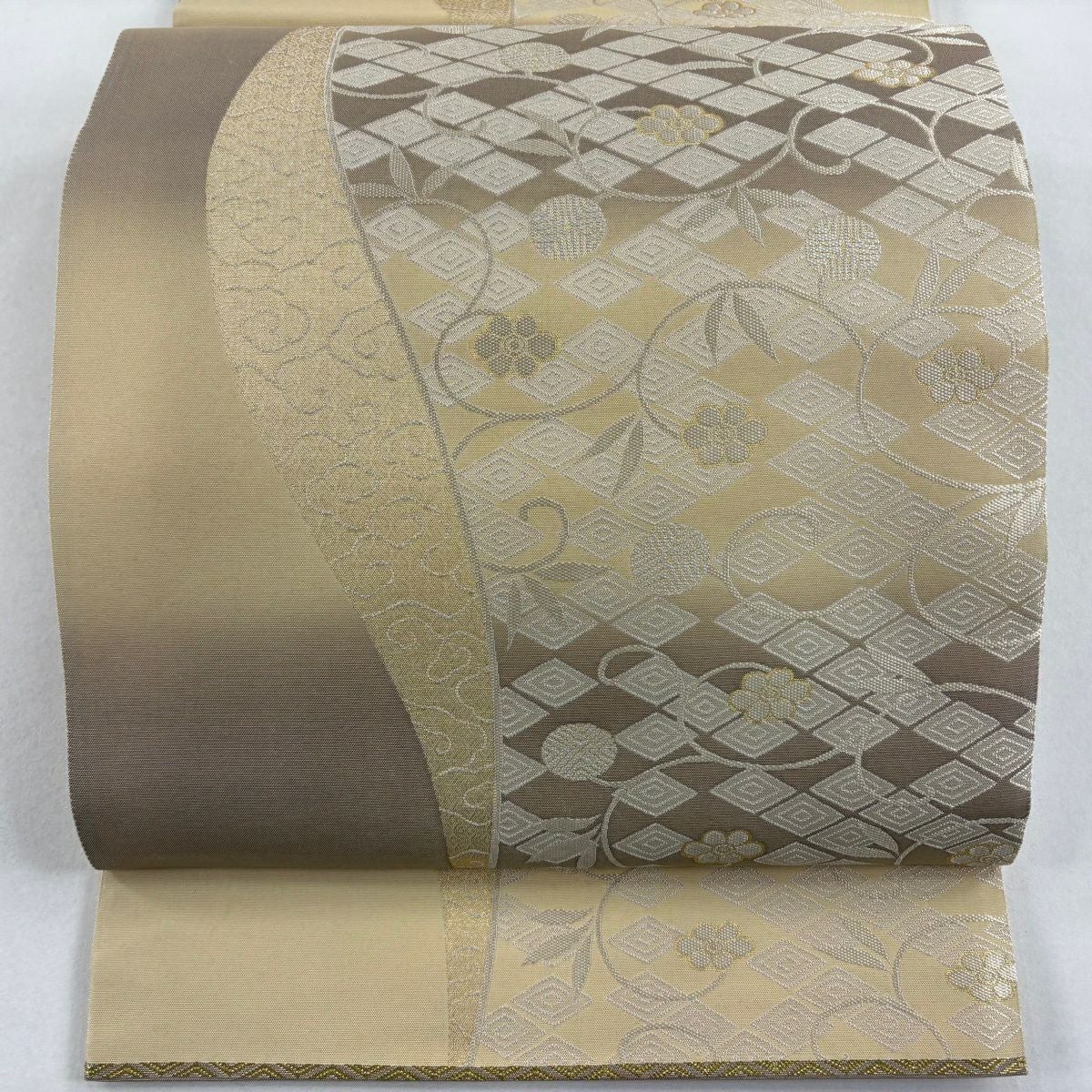 【美品】 袋帯 秀品 花唐草 菱 箔 ベージュ 六通 正絹