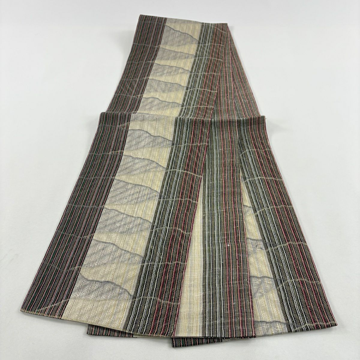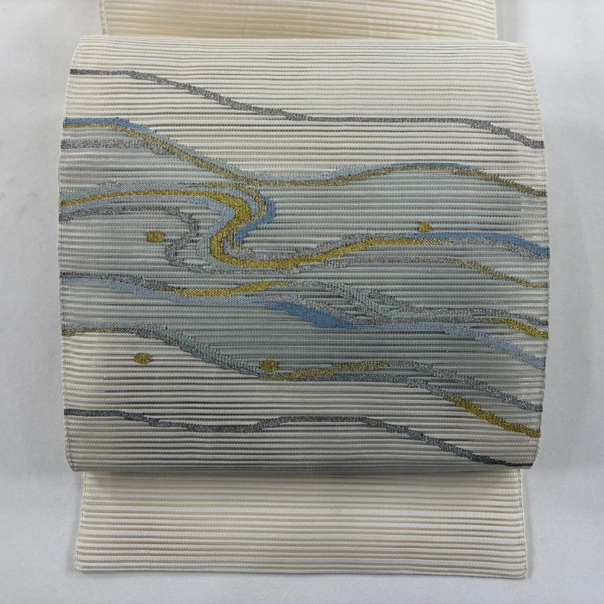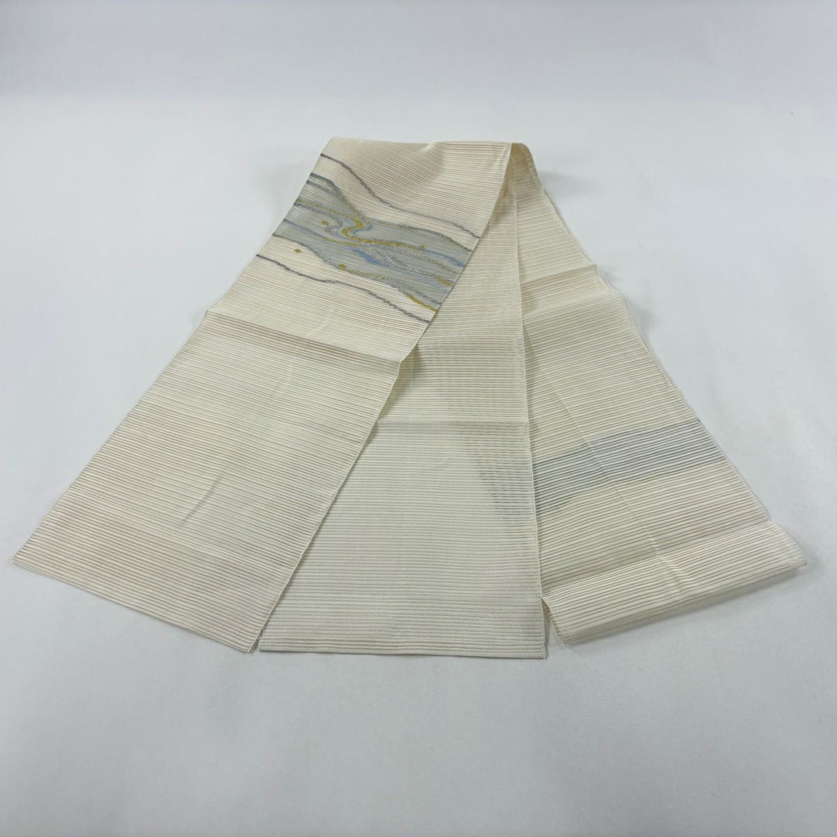 名古屋帯 秀品 八寸名古屋帯 夏帯 絽 流水 金銀糸 クリーム 正絹