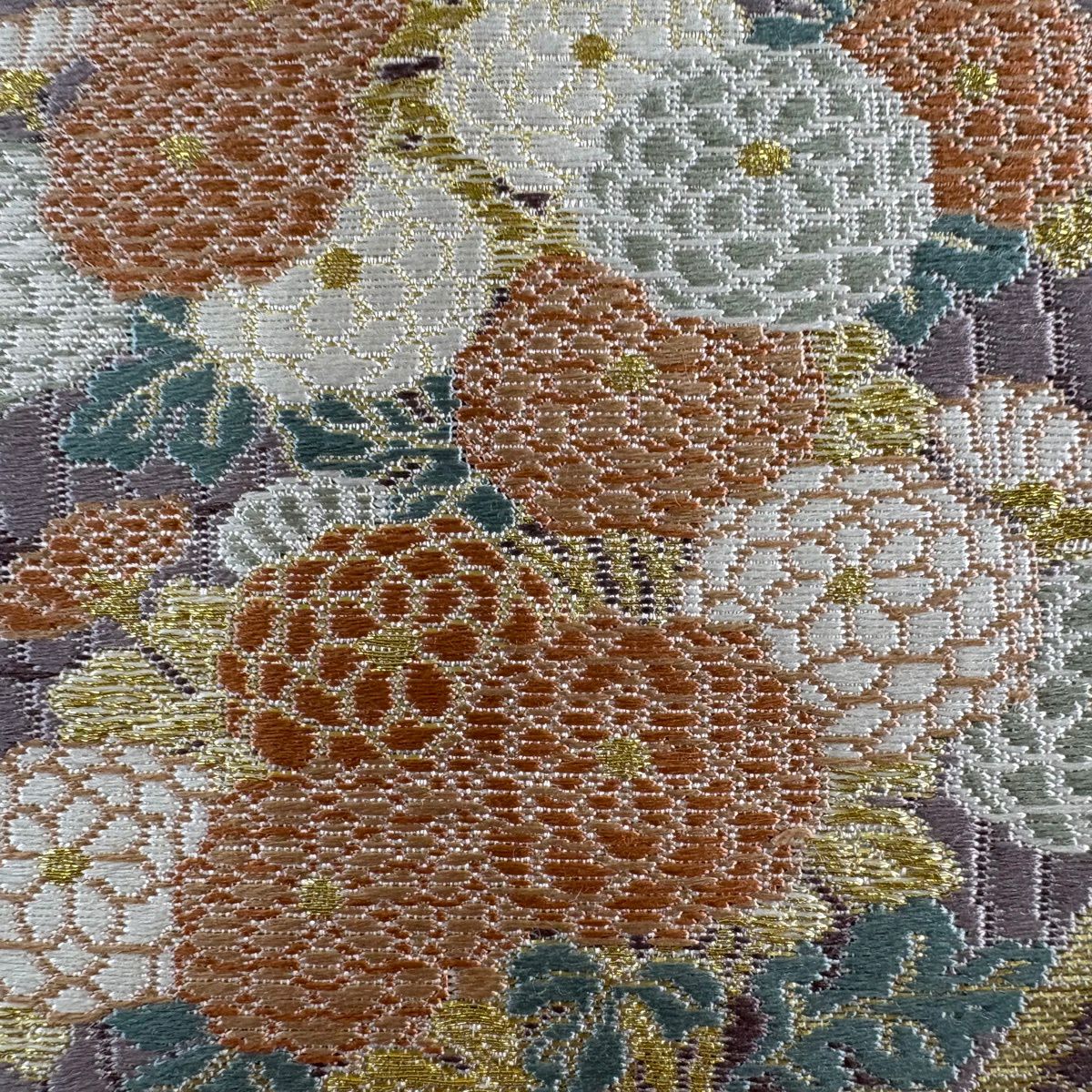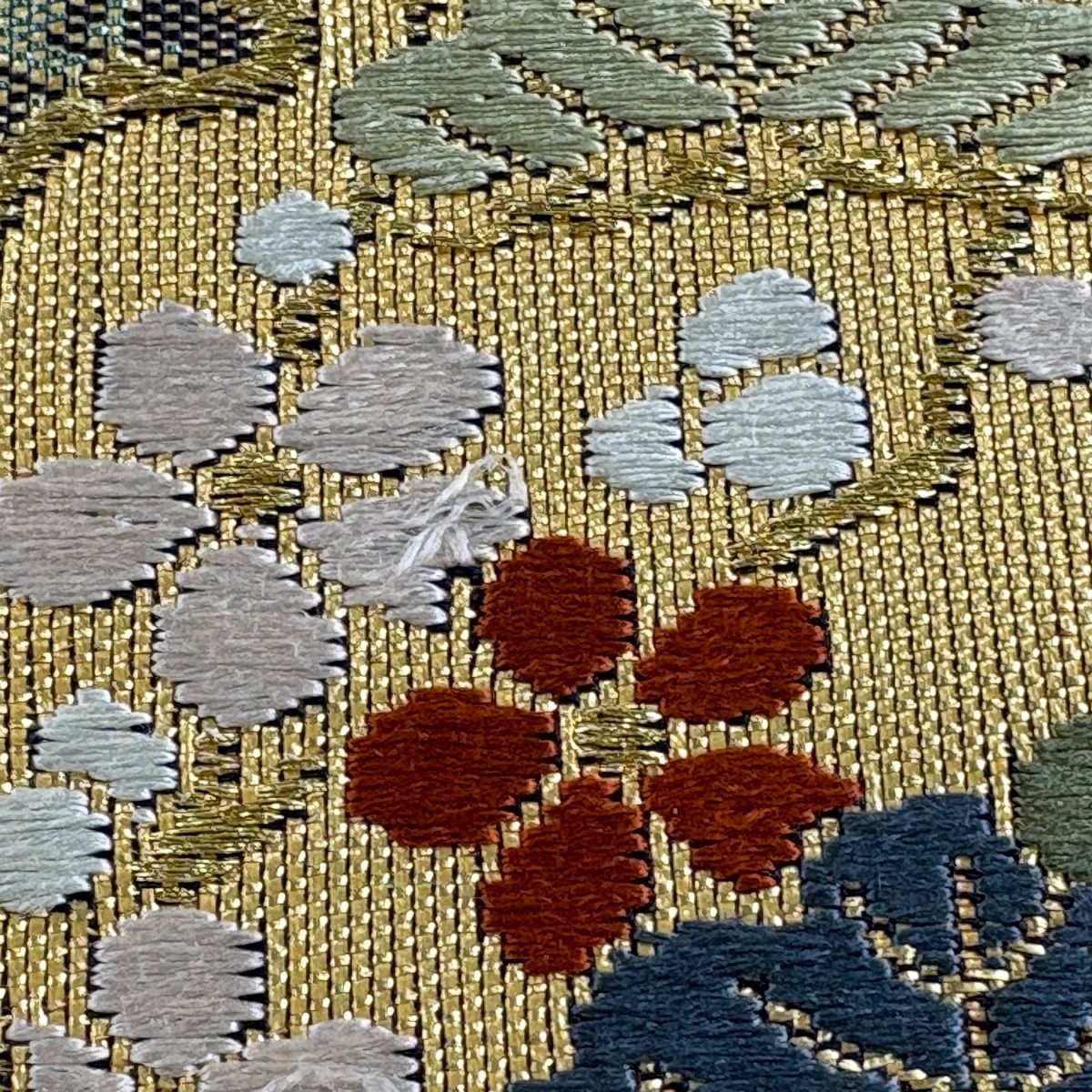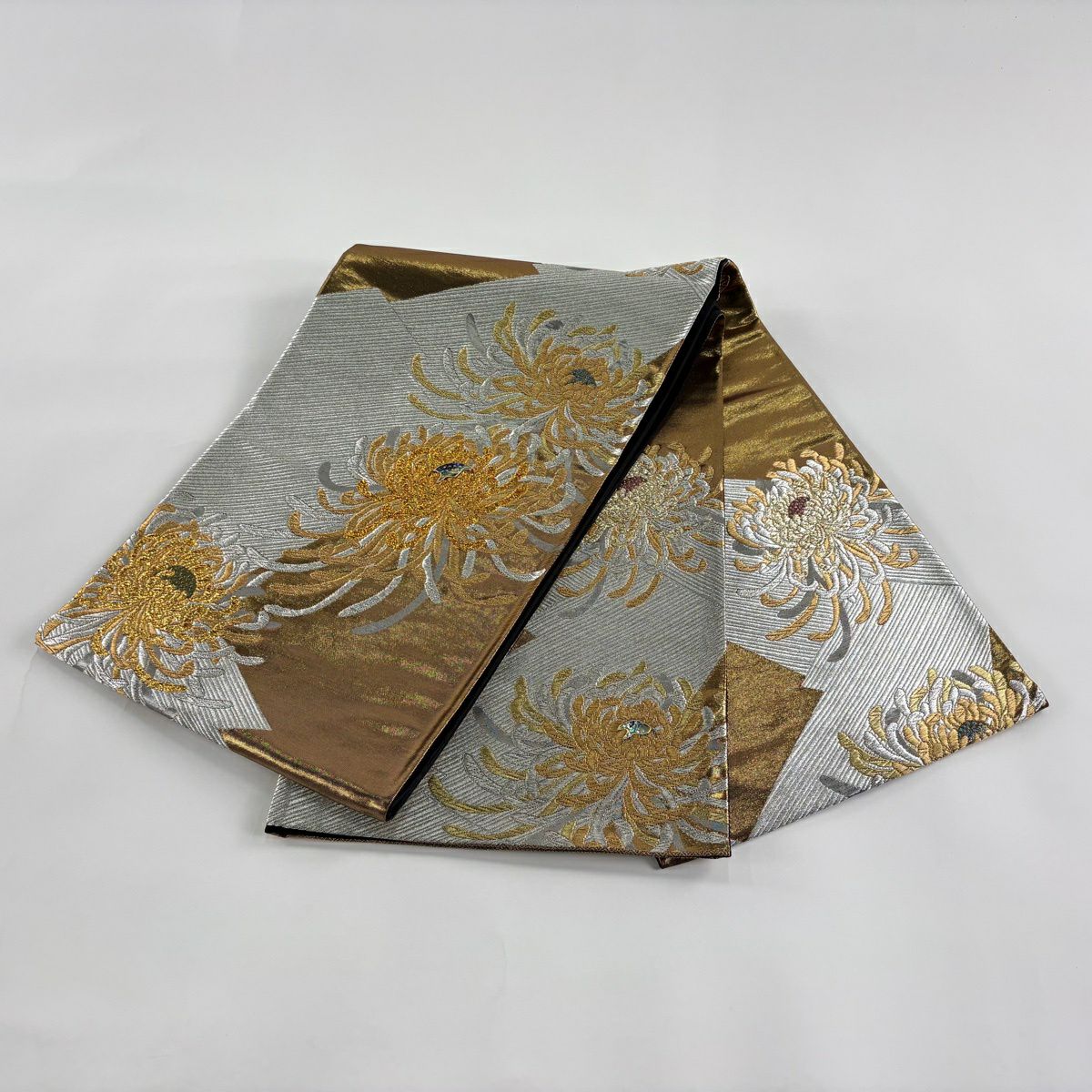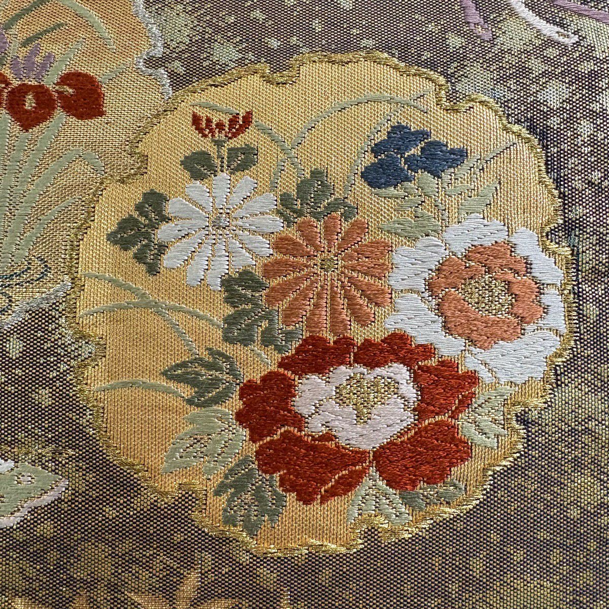 【美品】 袋帯 秀品 草花 菊 刺繍 金彩 金色 お太鼓柄 正絹