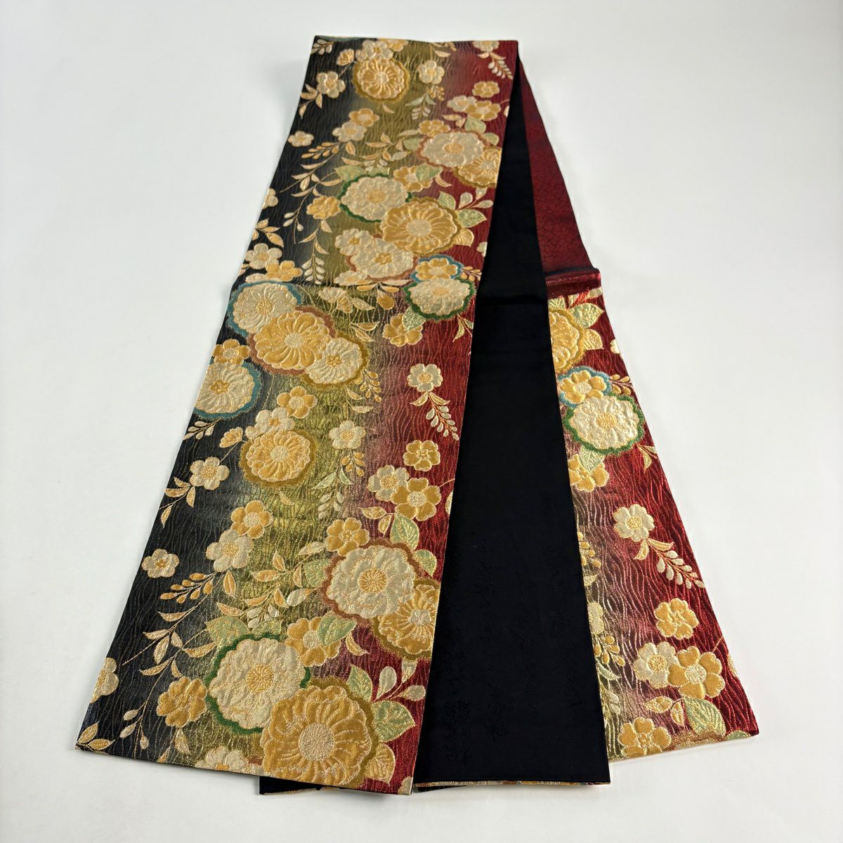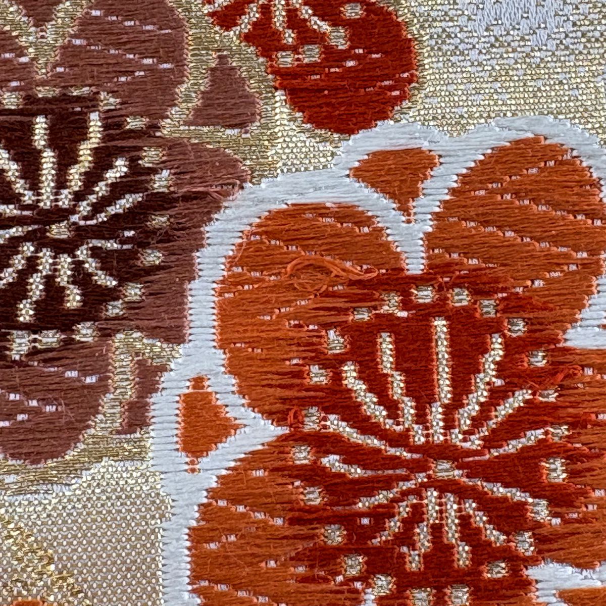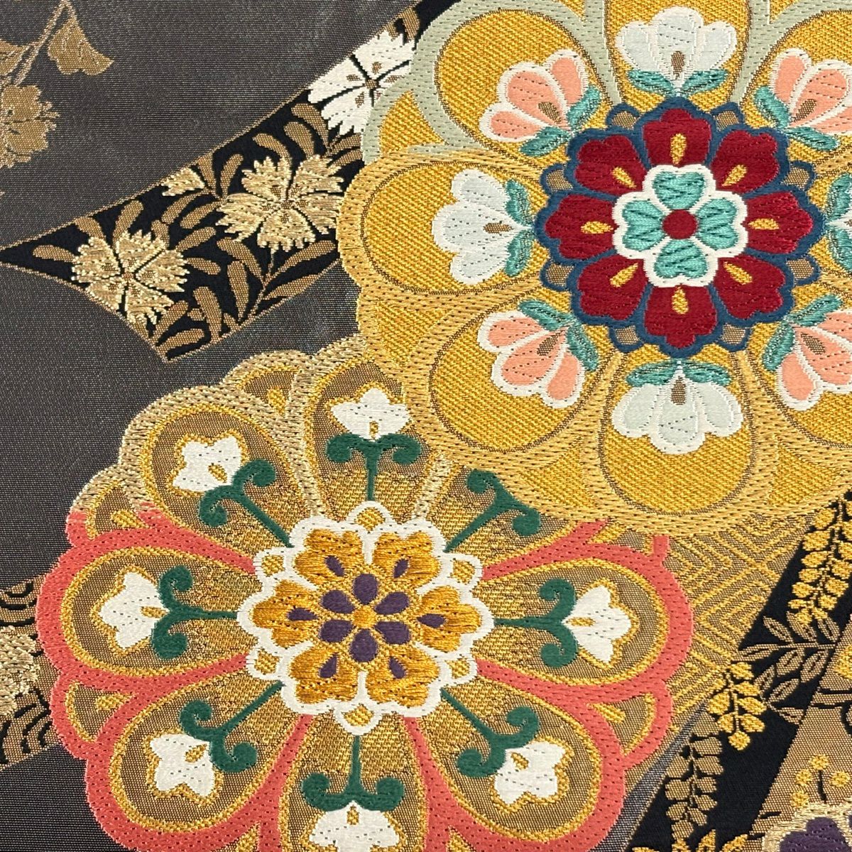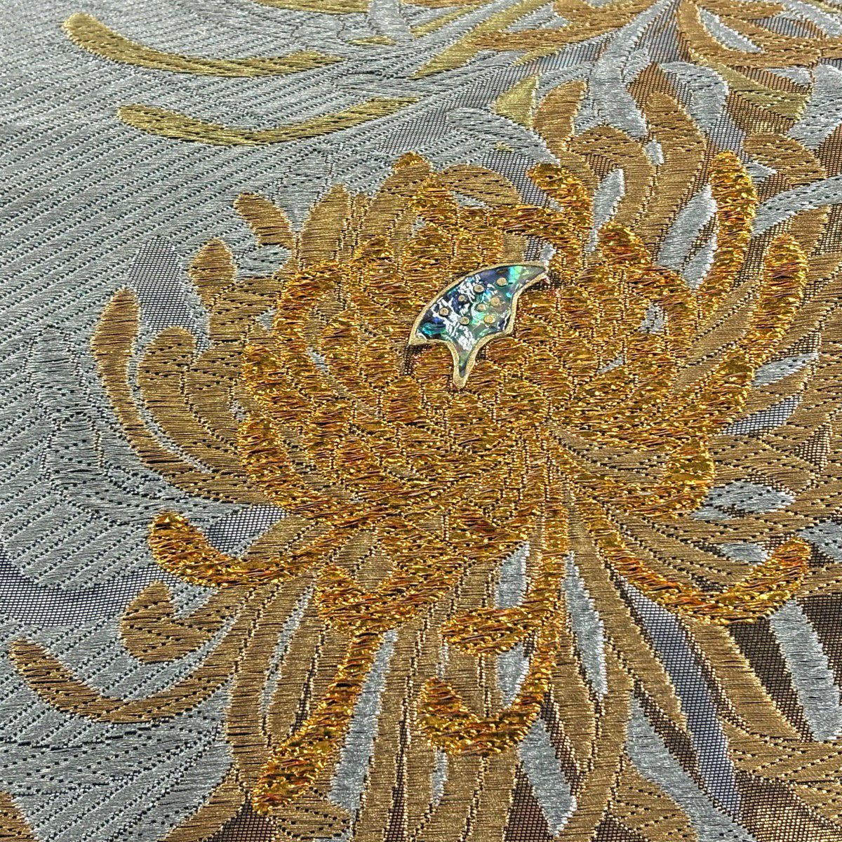 【美品】 袋帯 秀品 草花 菊 刺繍 金彩 金色 お太鼓柄 正絹