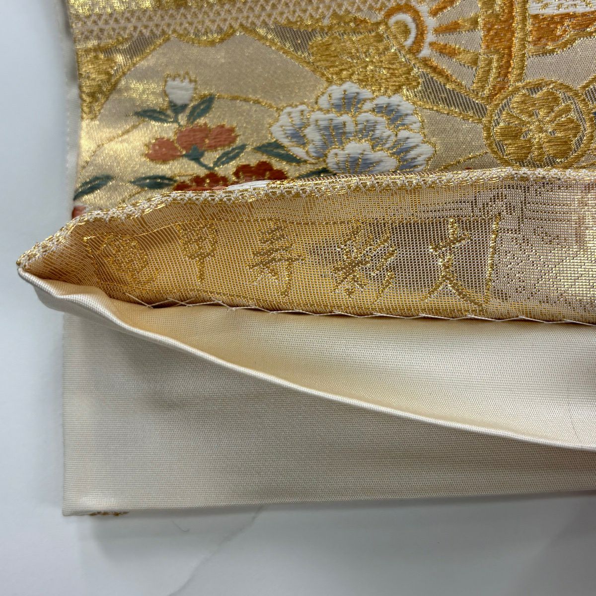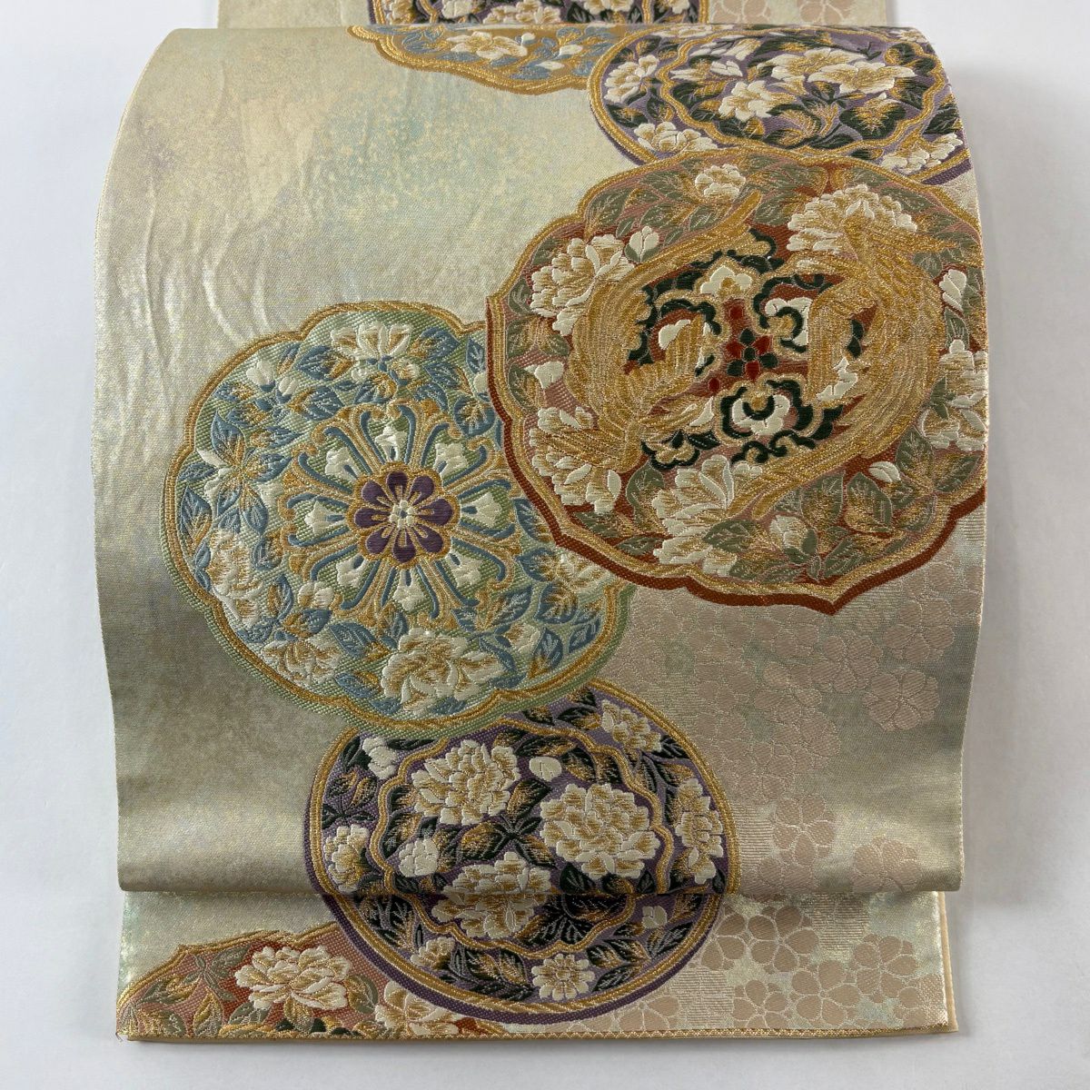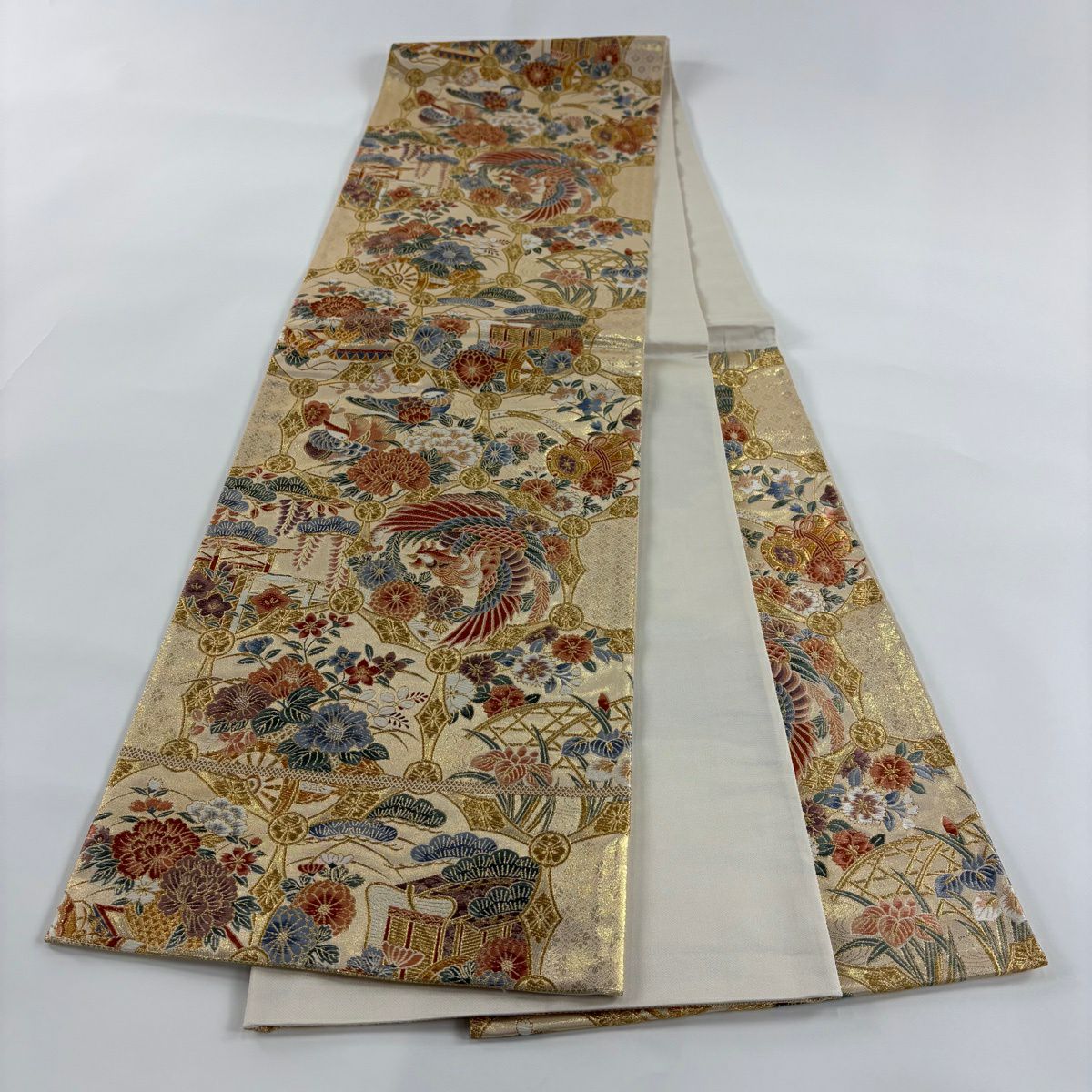 袋帯 秀品 関西仕立て 華文 鳳凰 唐織 箔 金色 六通 正絹