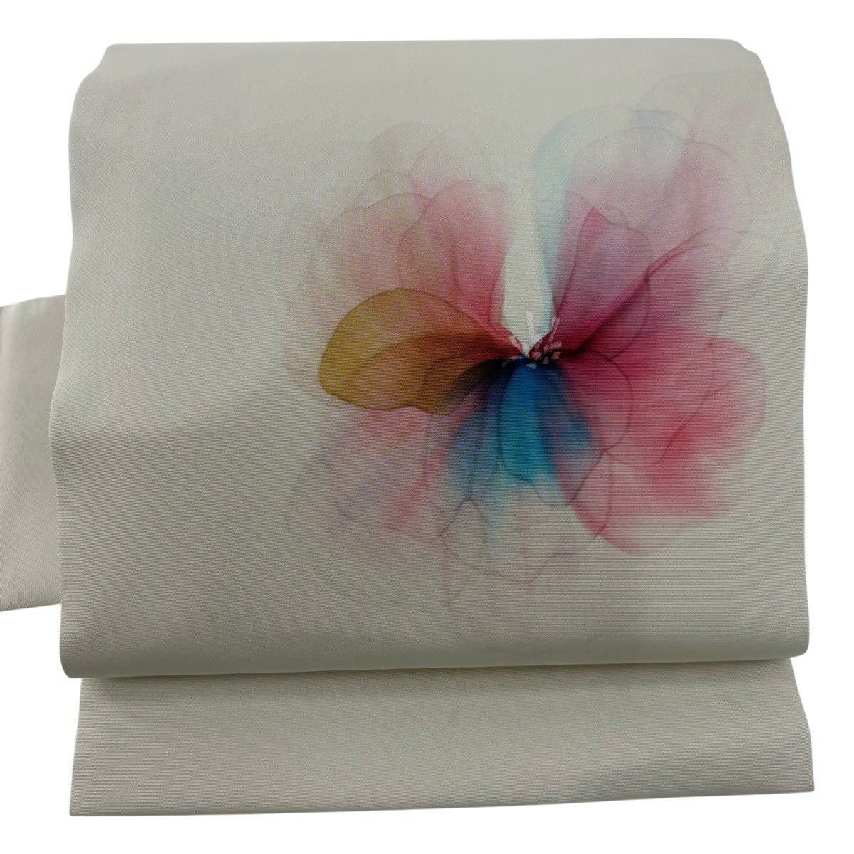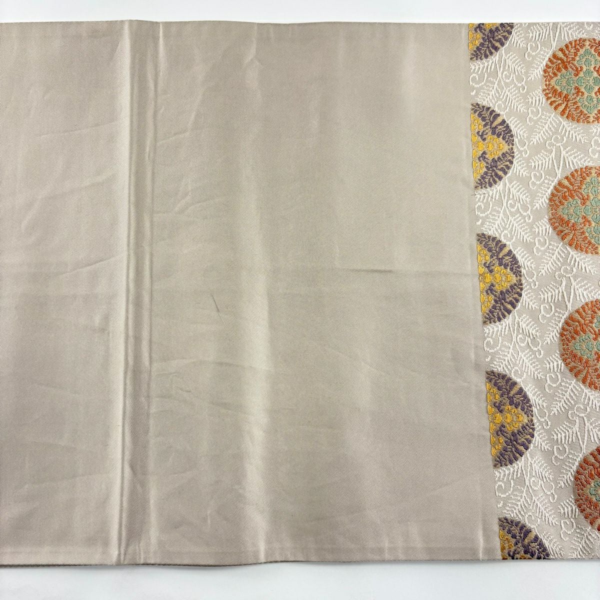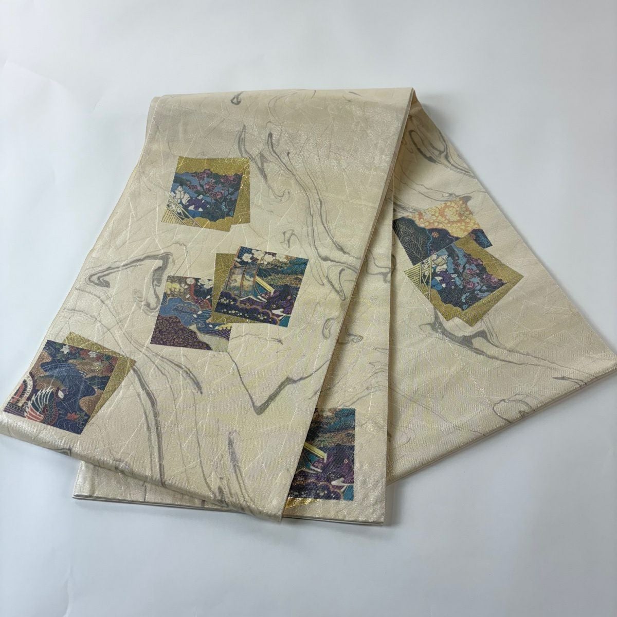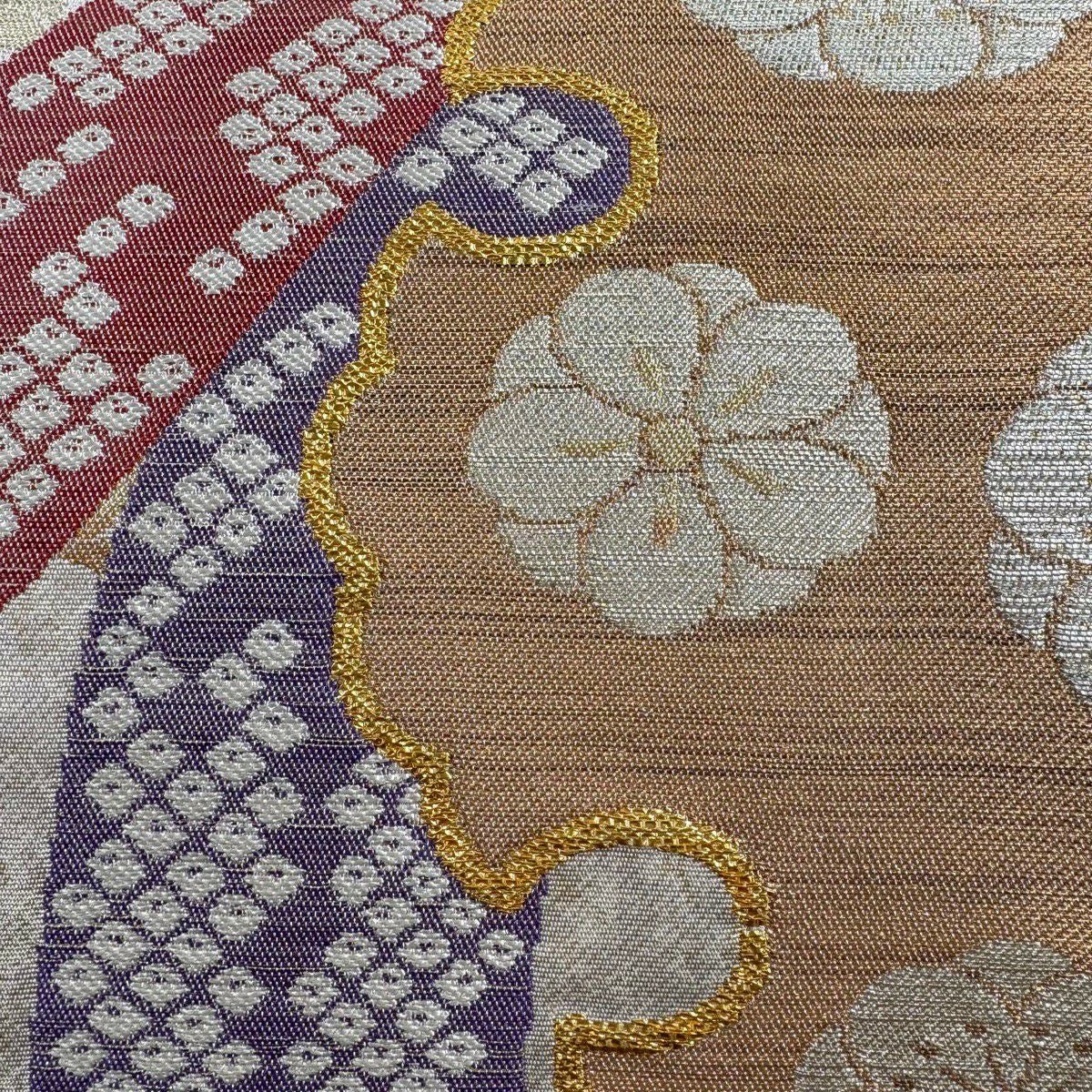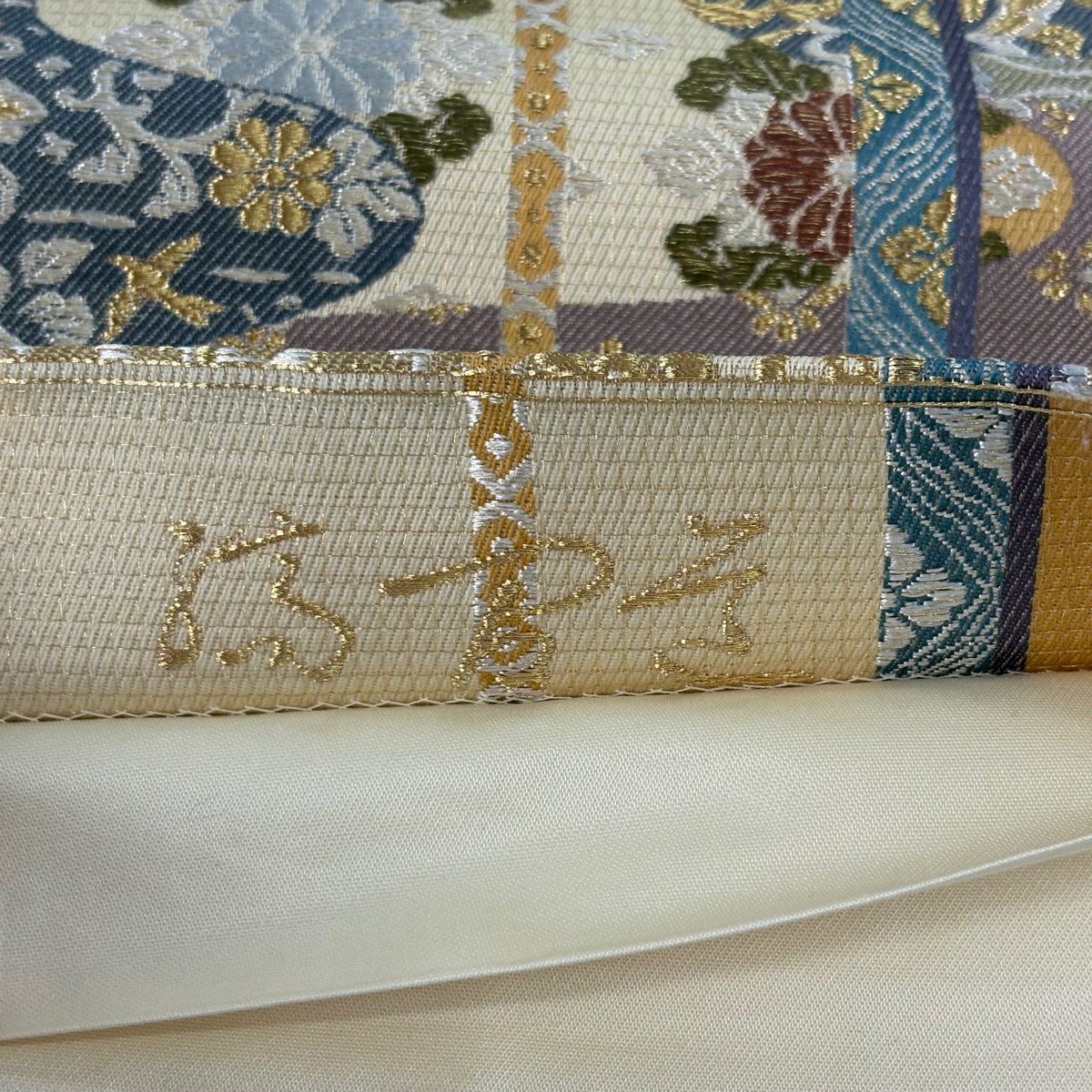 【美品】 袋帯 秀品 華文 霞 金糸 ベージュ 六通 正絹