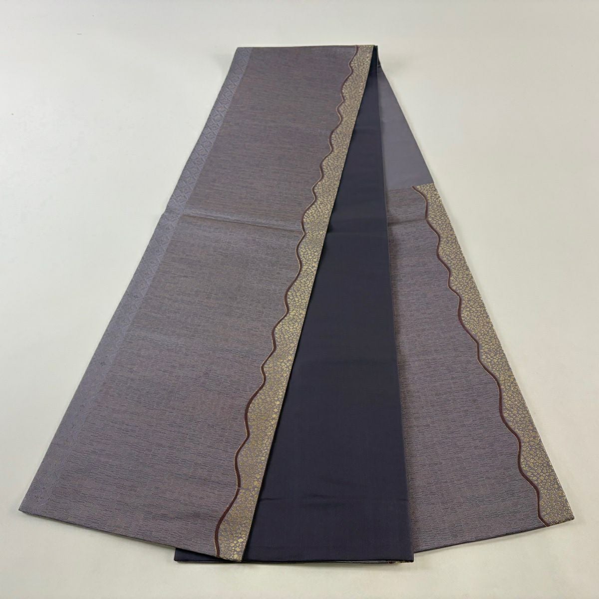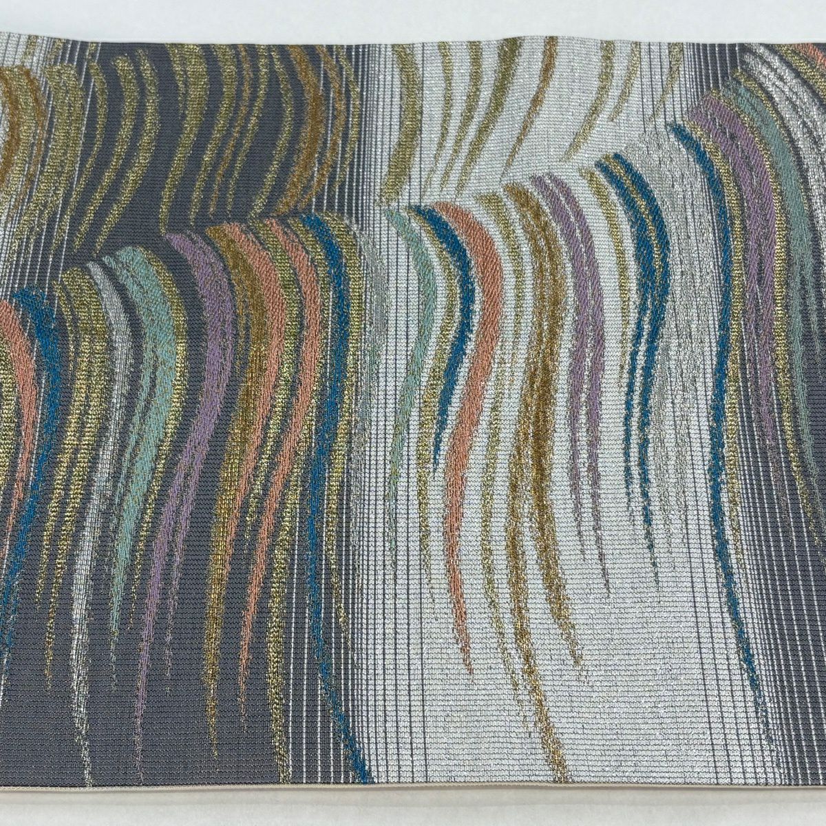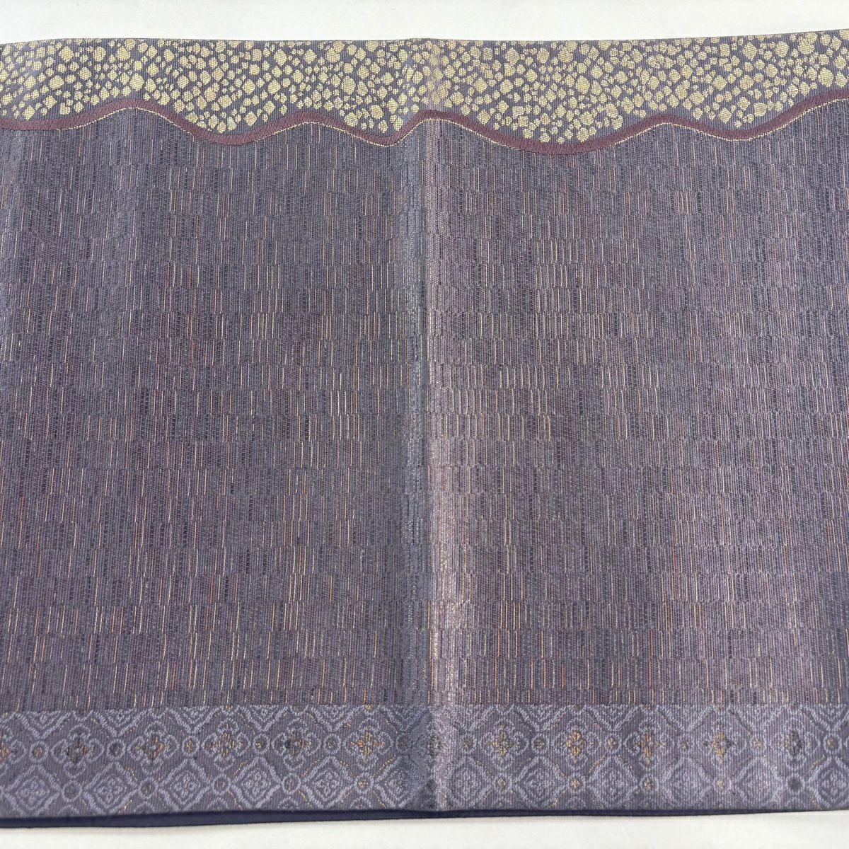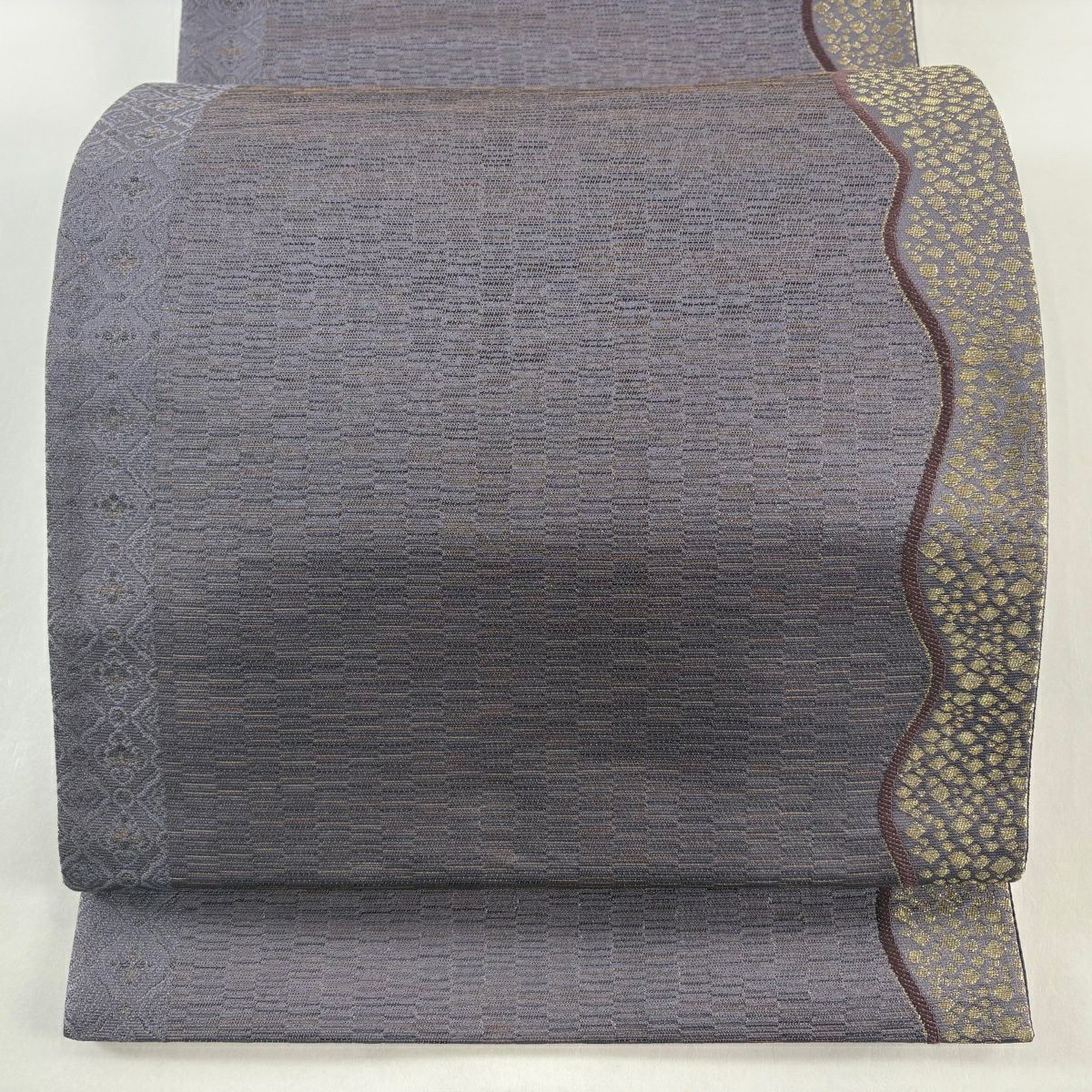 【美品】 袋帯 秀品 縞 幾何学 金銀糸 箔 灰紫 六通 正絹