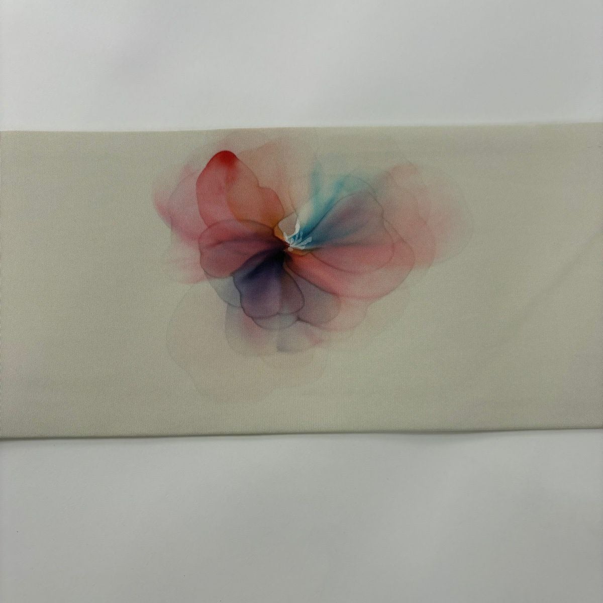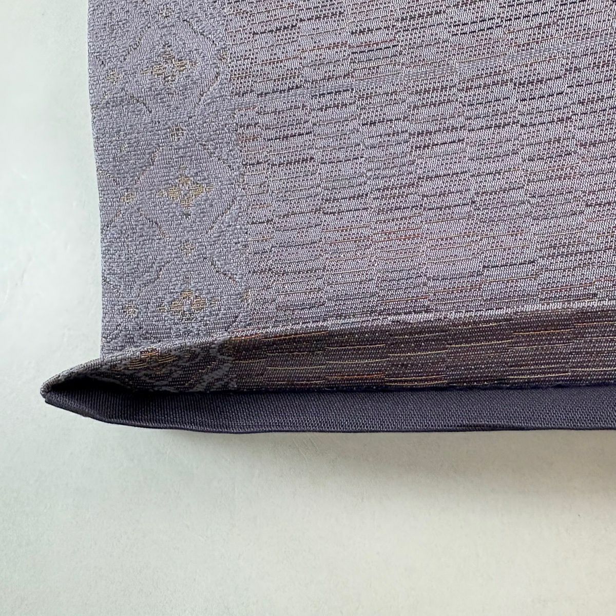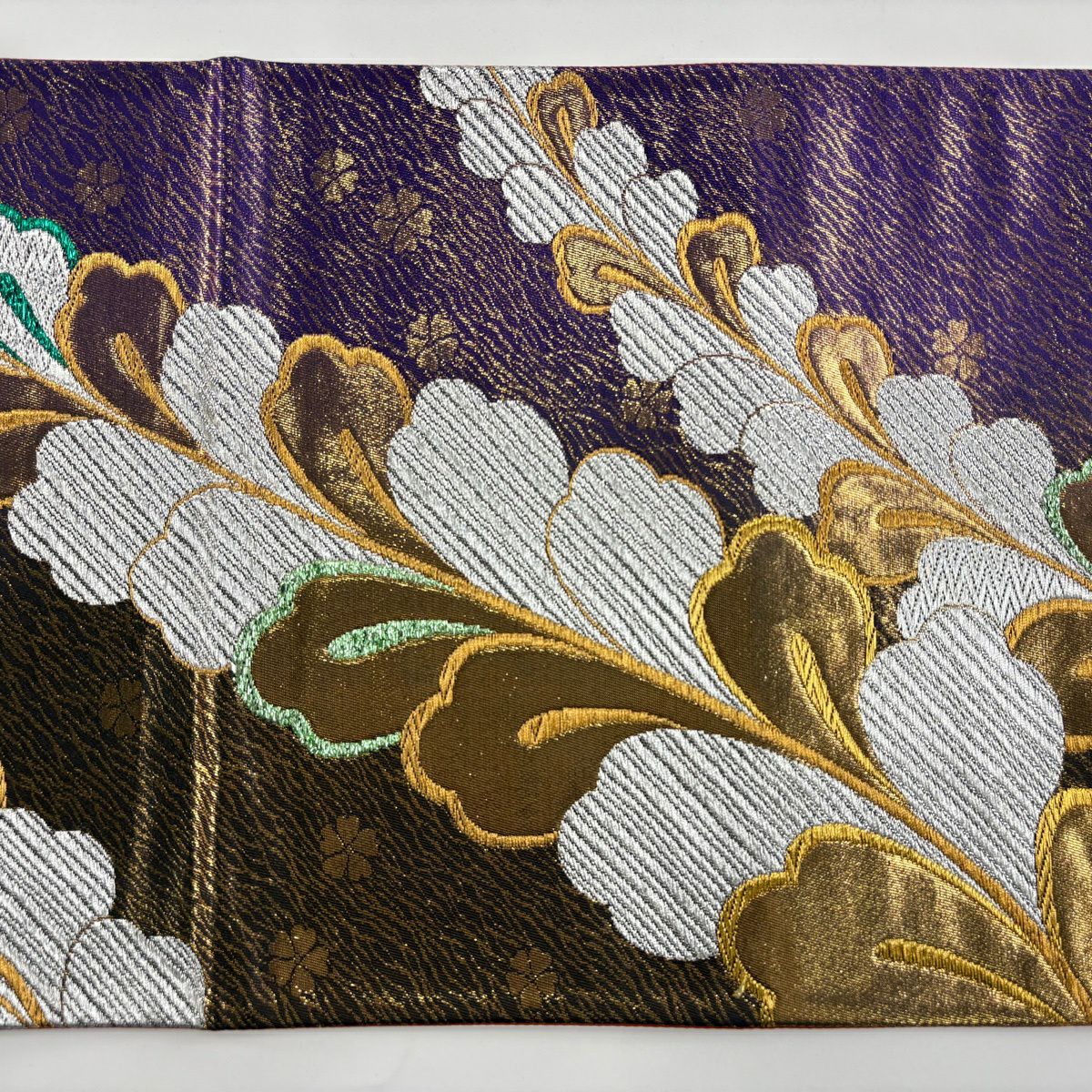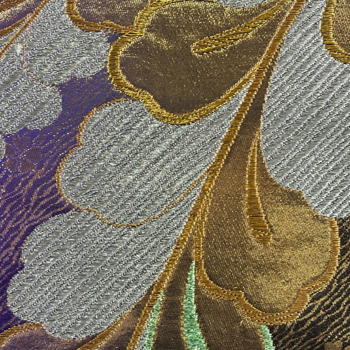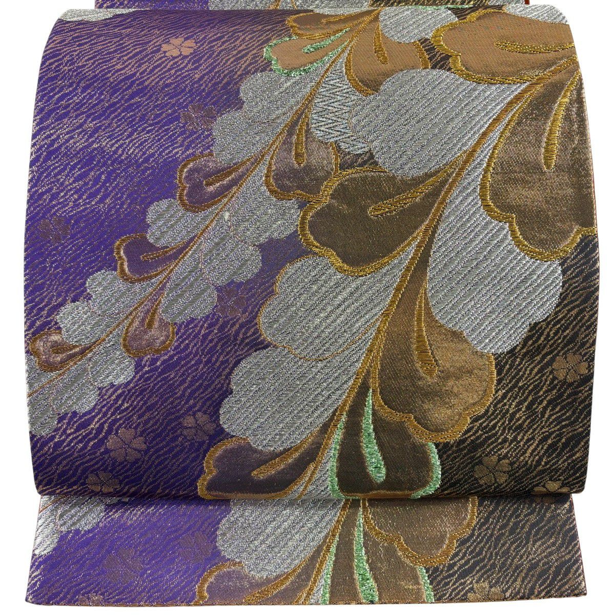 【美品】 名古屋帯 秀品 花香織 草花 霞 銀彩 箔 紫 正絹