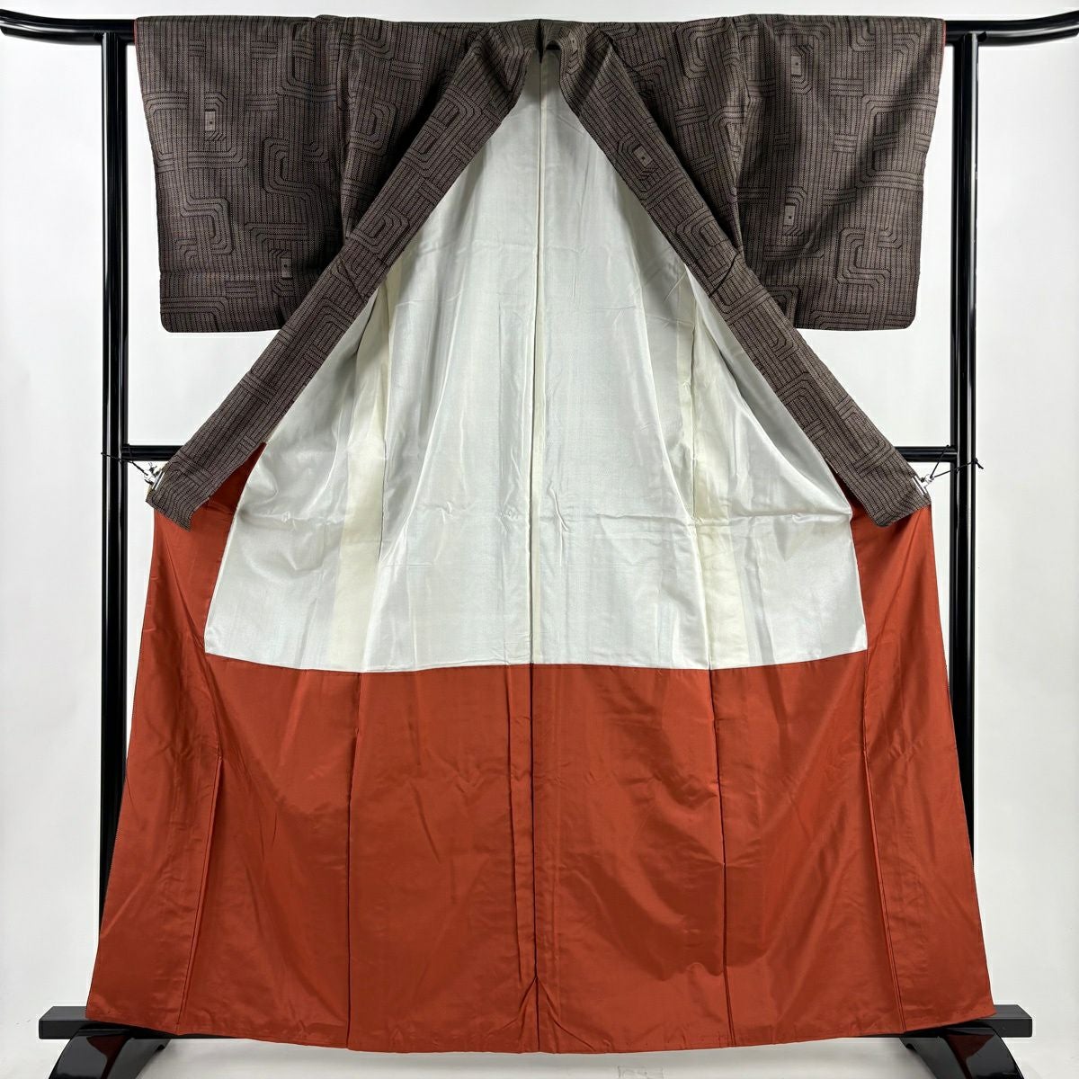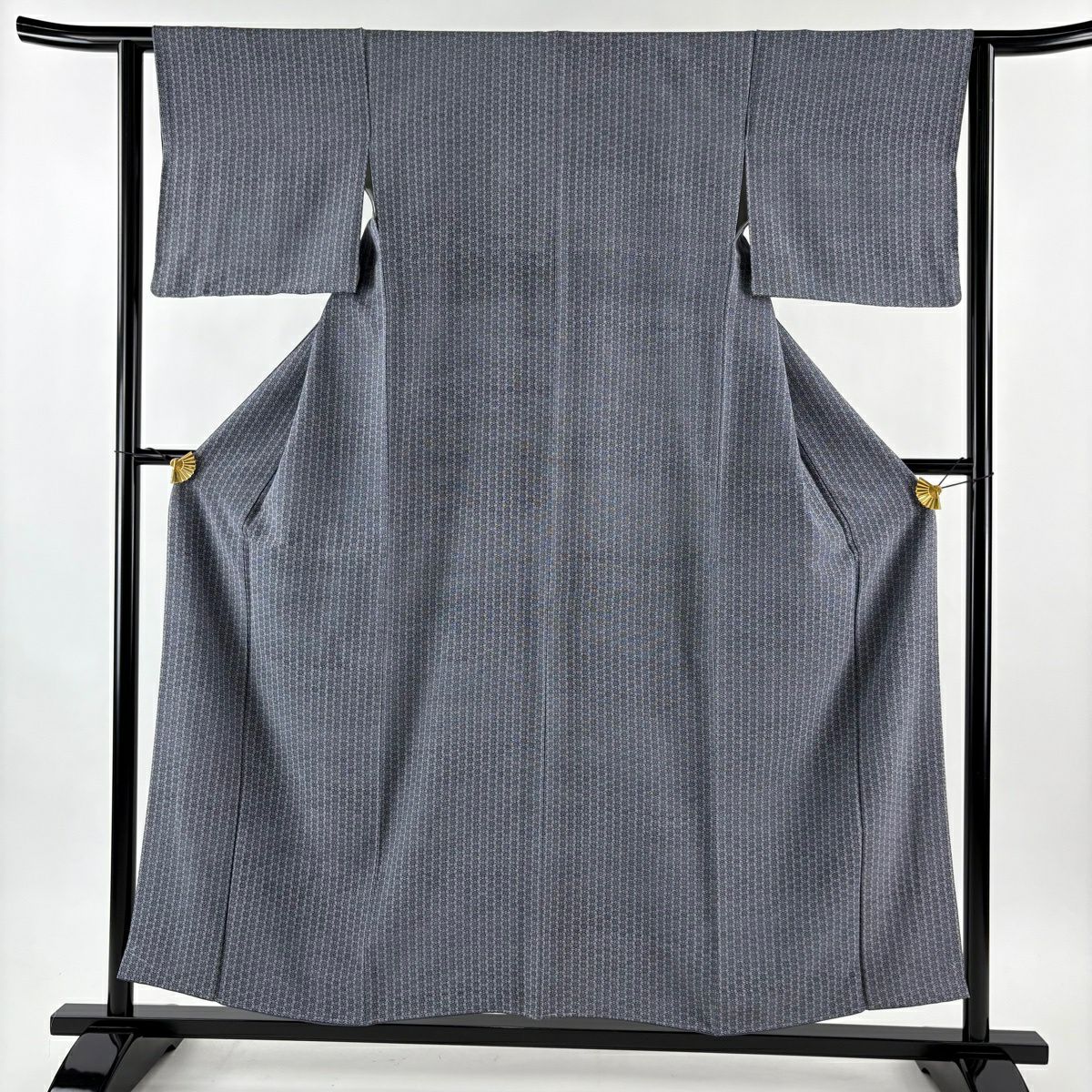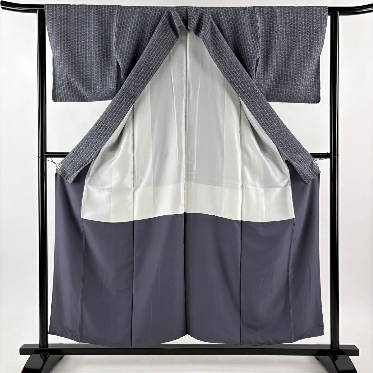 小紋 身丈156cm 裄丈62cm S 袷 花 灰紫 正絹 秀品