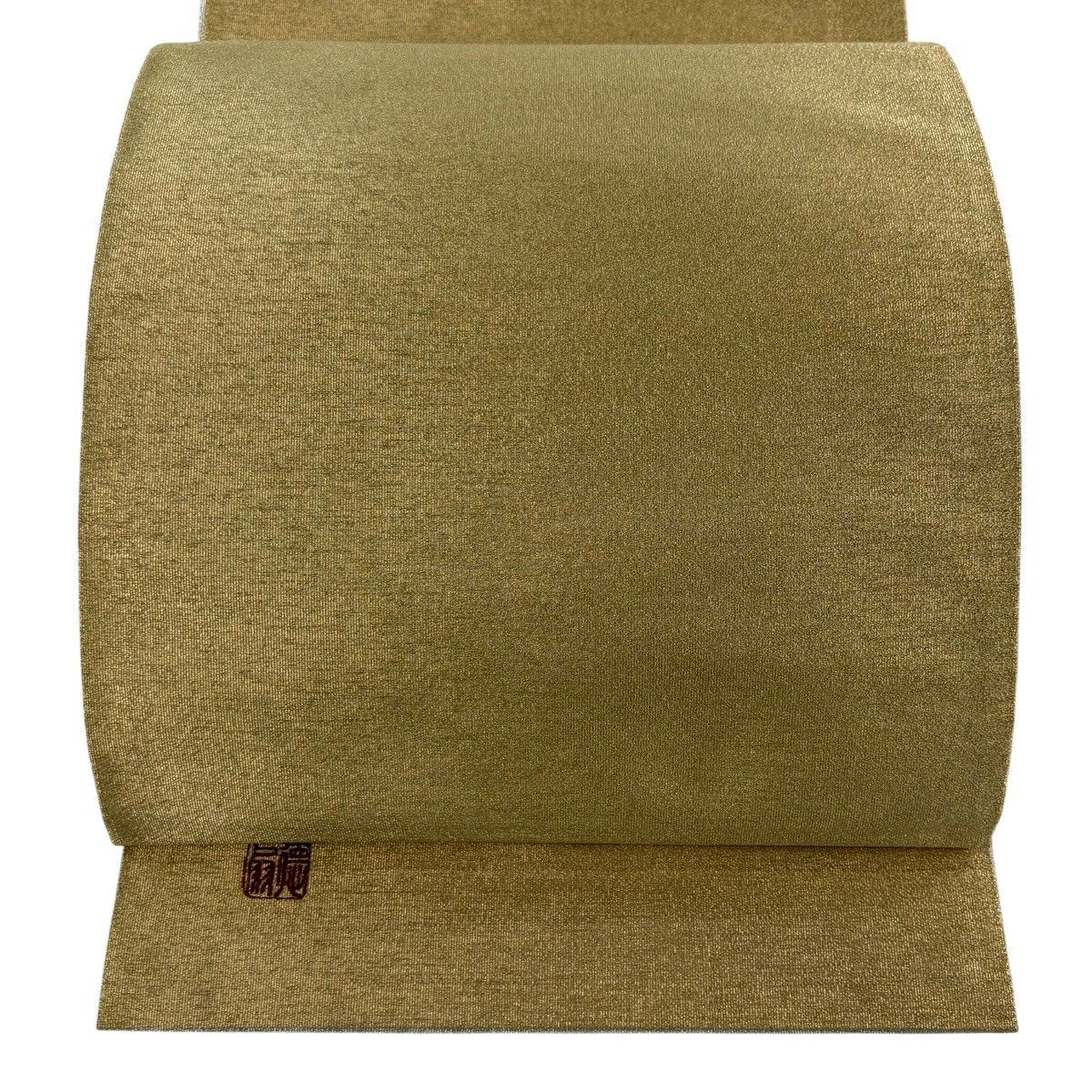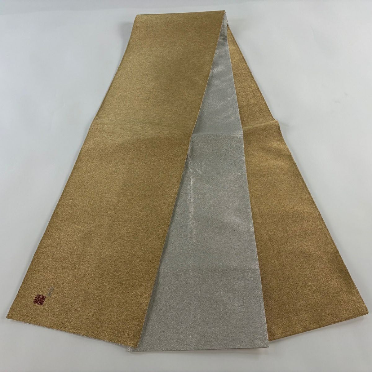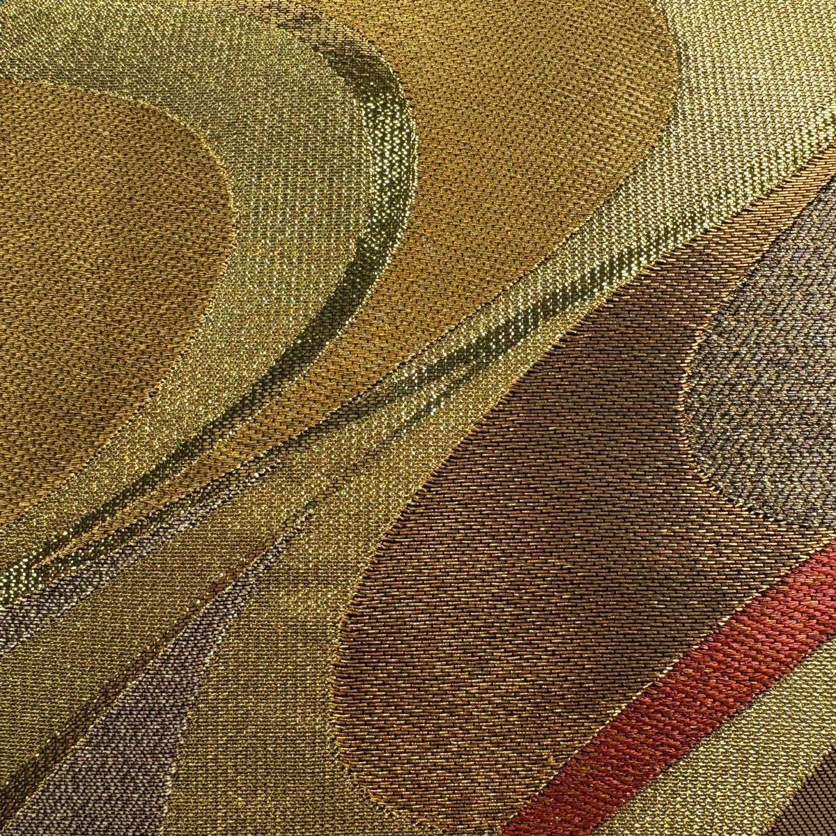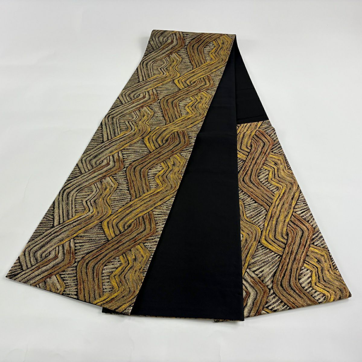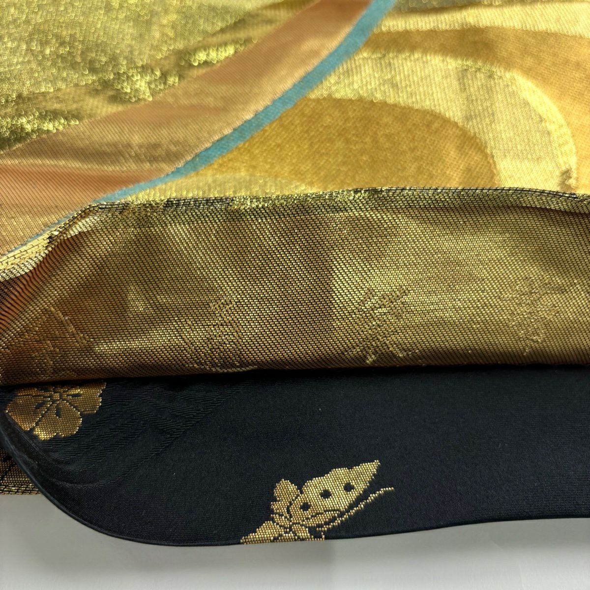 【美品】 袋帯 秀品 華文 幾何学模様 箔 黄土色 六通 正絹