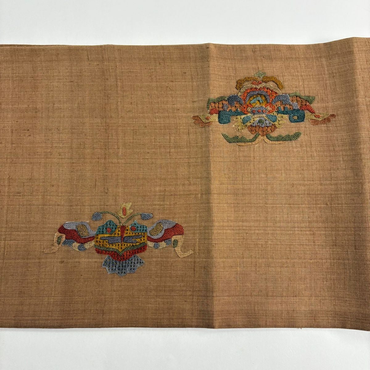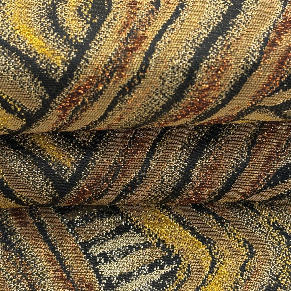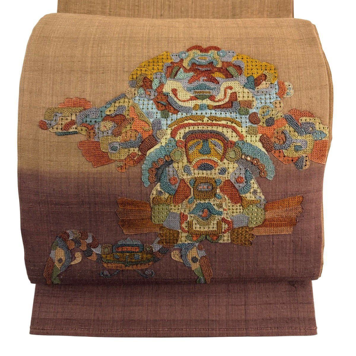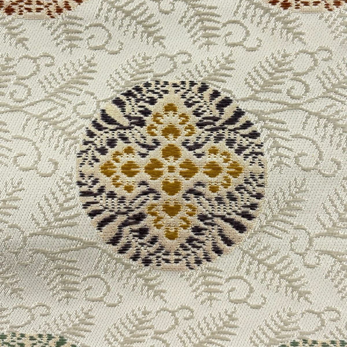 【美品】 袋帯 秀品 華文 幾何学模様 箔 黄土色 六通 正絹