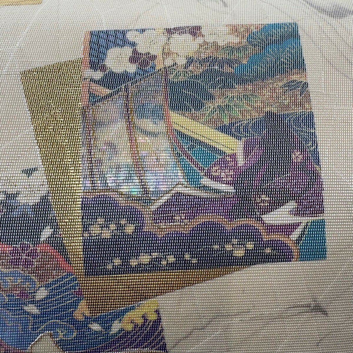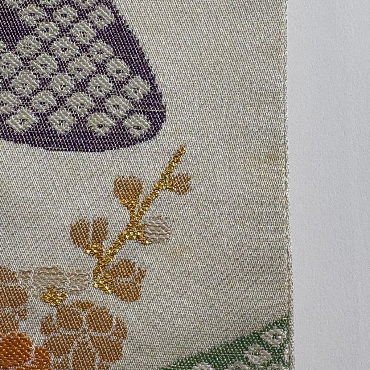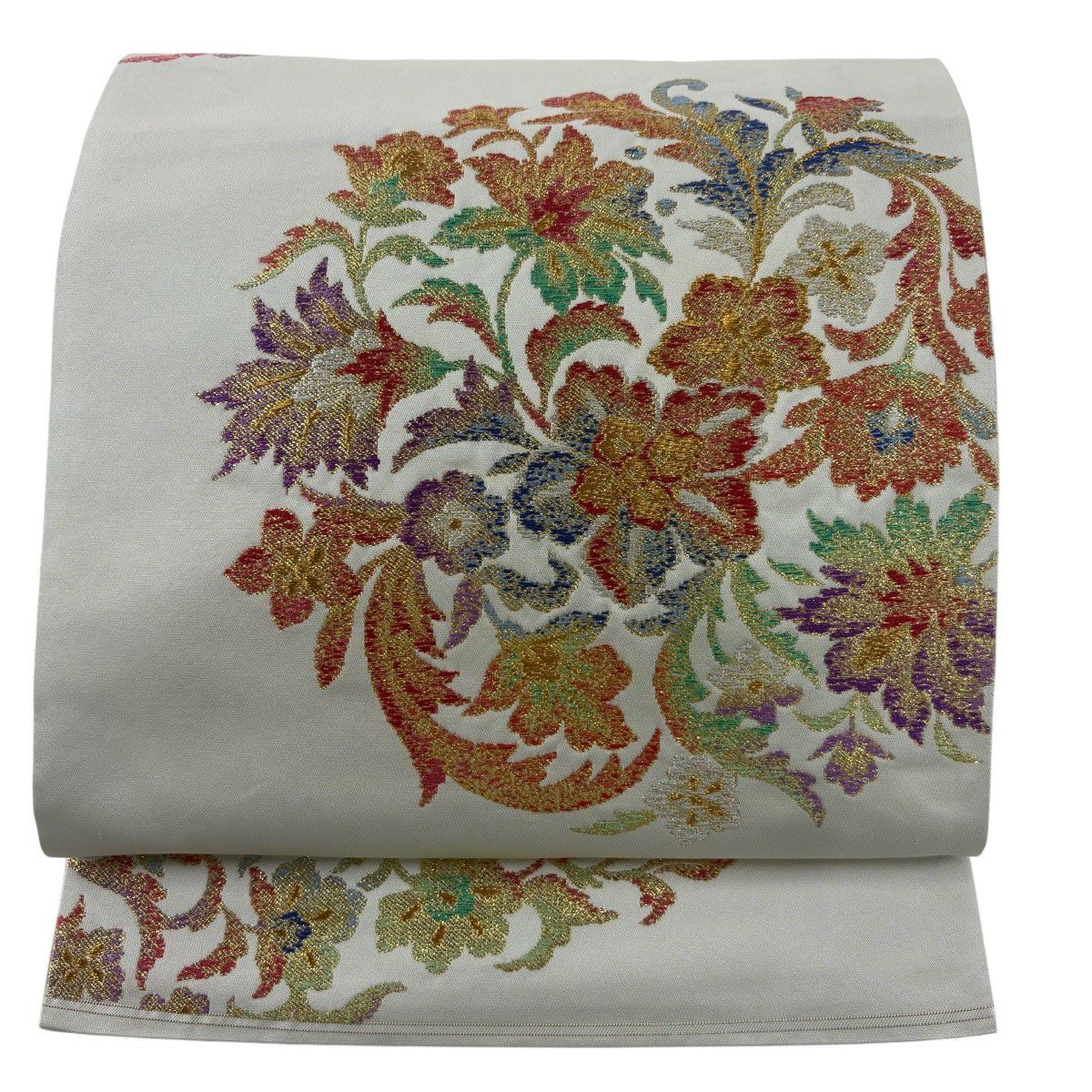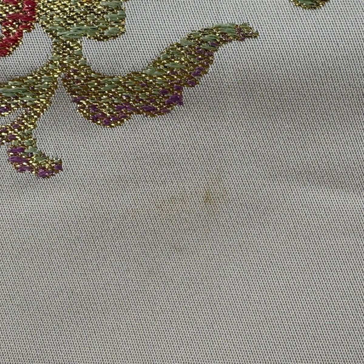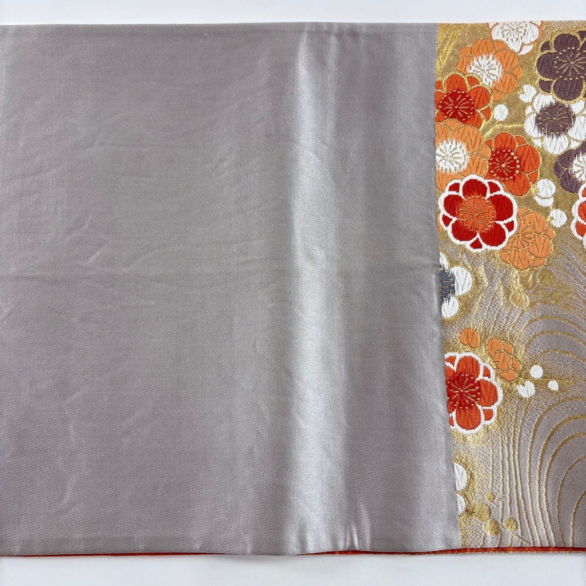 【美品】 袋帯 秀品 草花 波頭 金銀糸 箔 灰白 六通 正絹